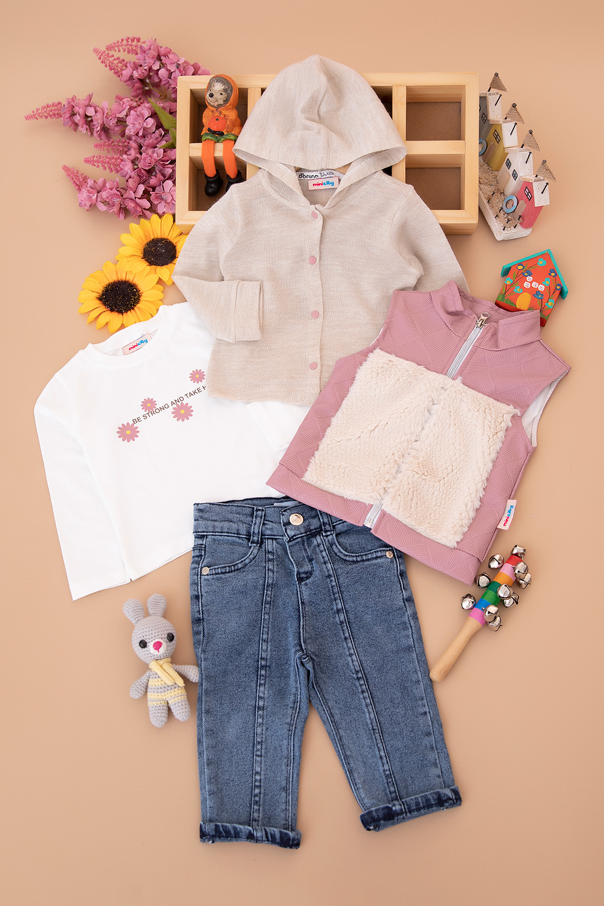 Kız Bebek Deri Peluş Yelekli Takım - 50671 (6-24 Ay)