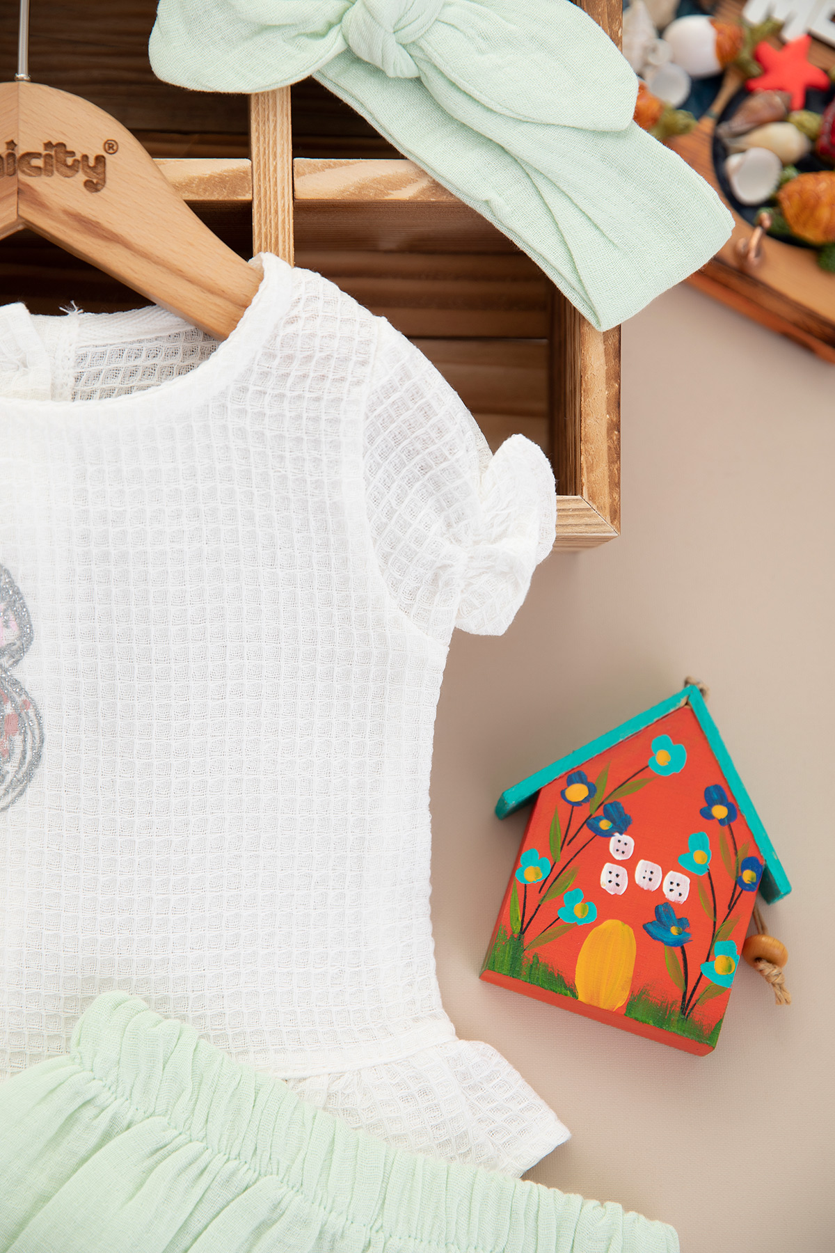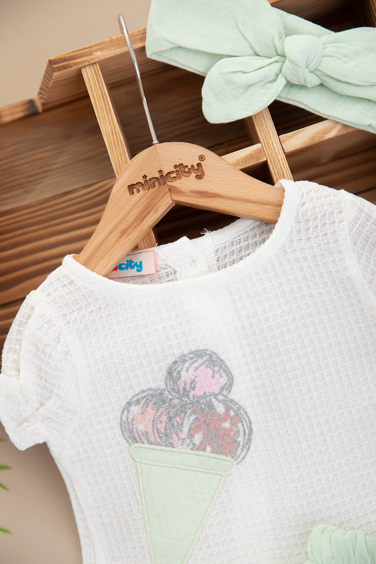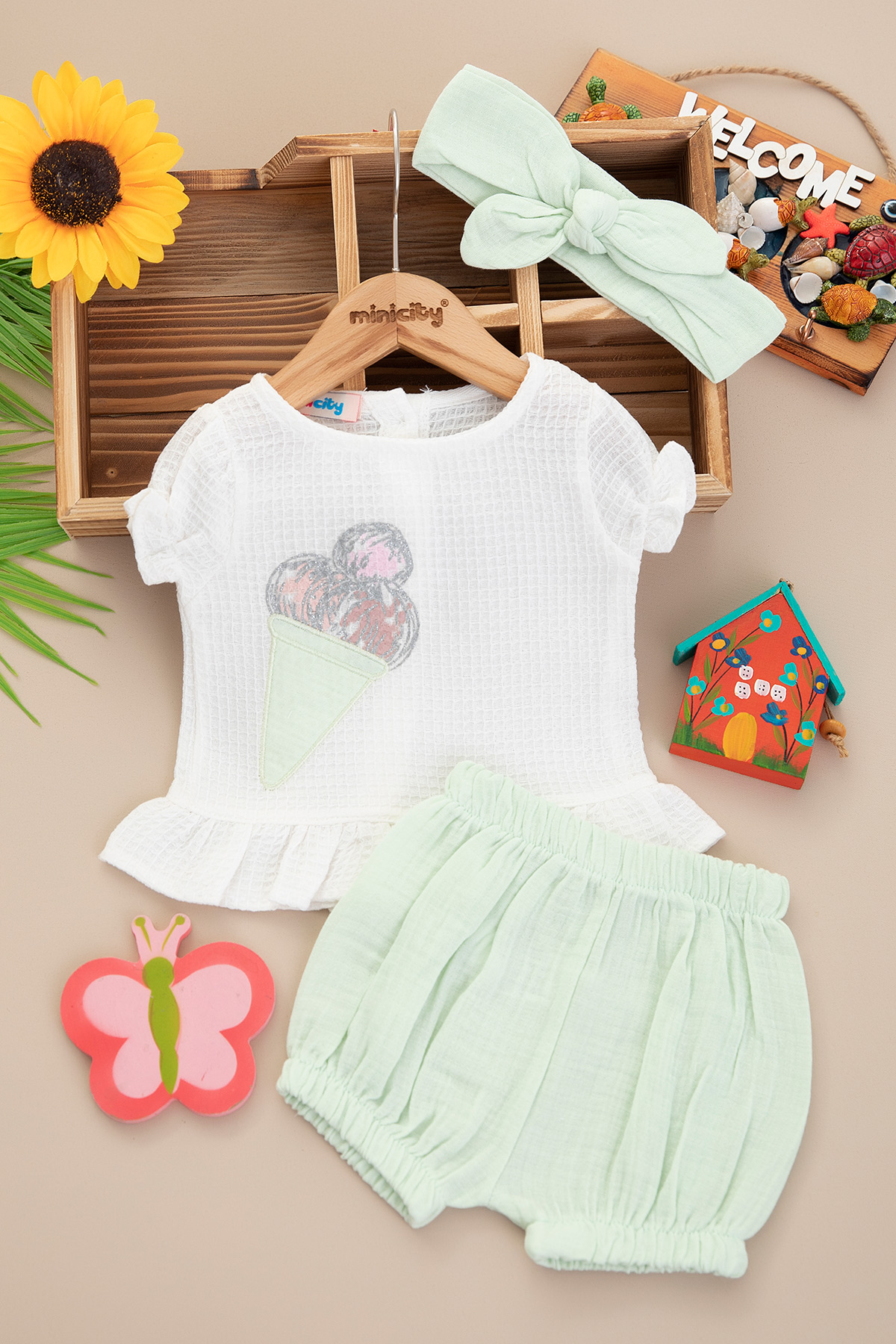 Kız Bebek Dondurma Nakışlı Şortlu Takım - 0515 (6-18 Ay)