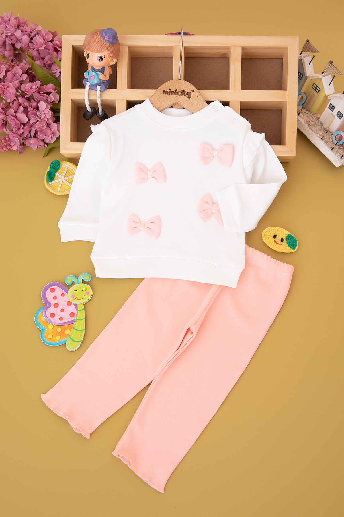 Kız Bebek Dört Fiyonklu Penye Takım (6-18 Ay)