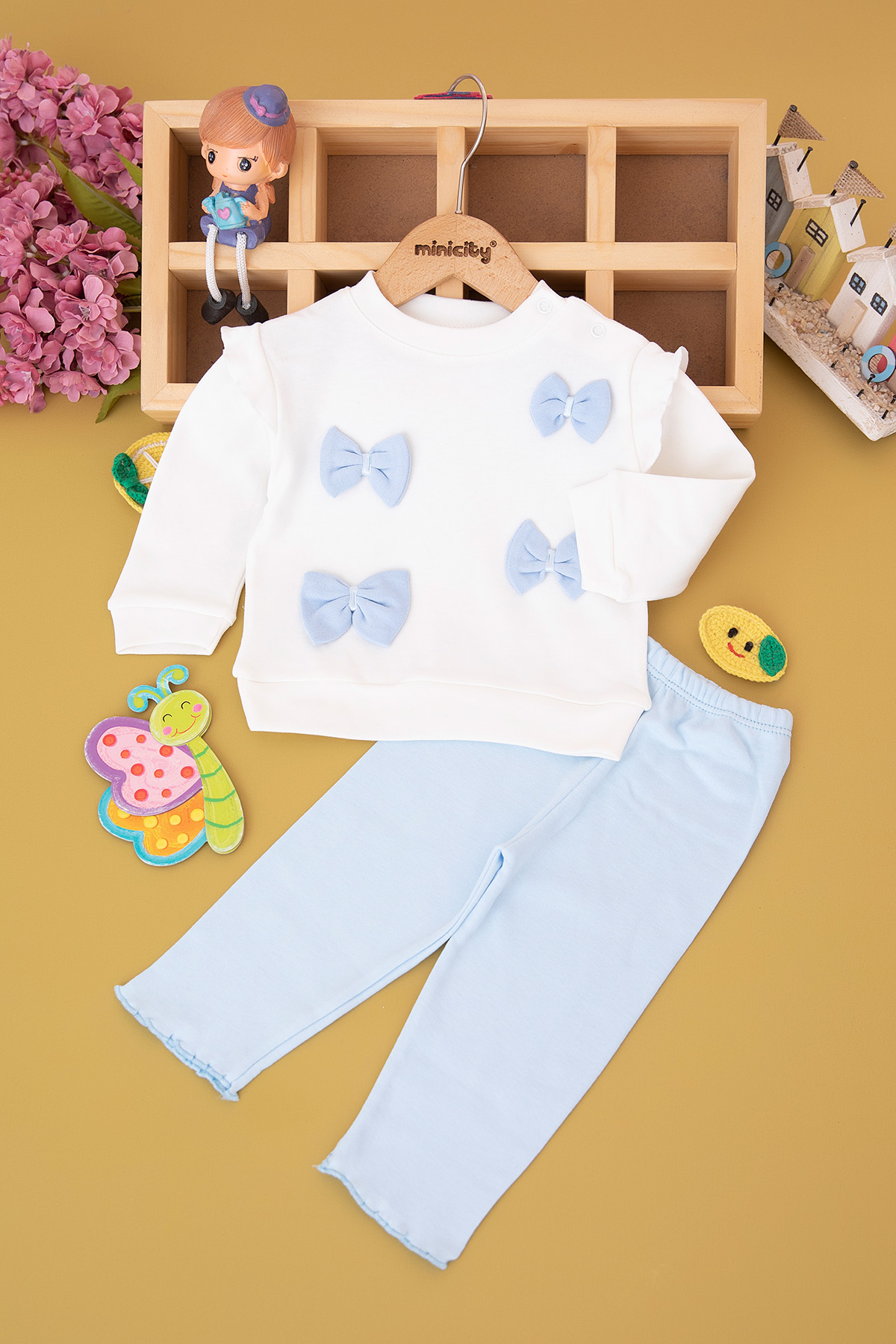 Kız Bebek Dört Fiyonklu Penye Takım (6-18 Ay)