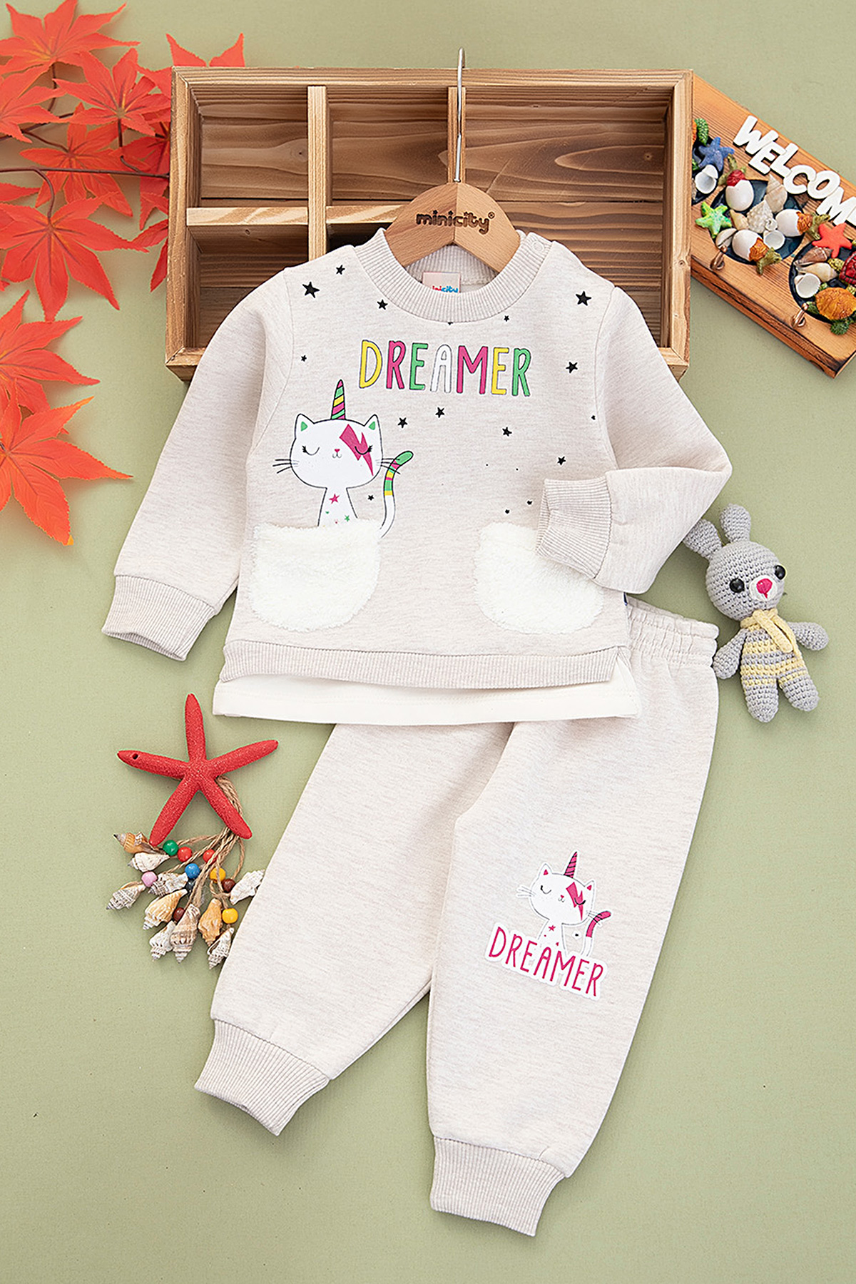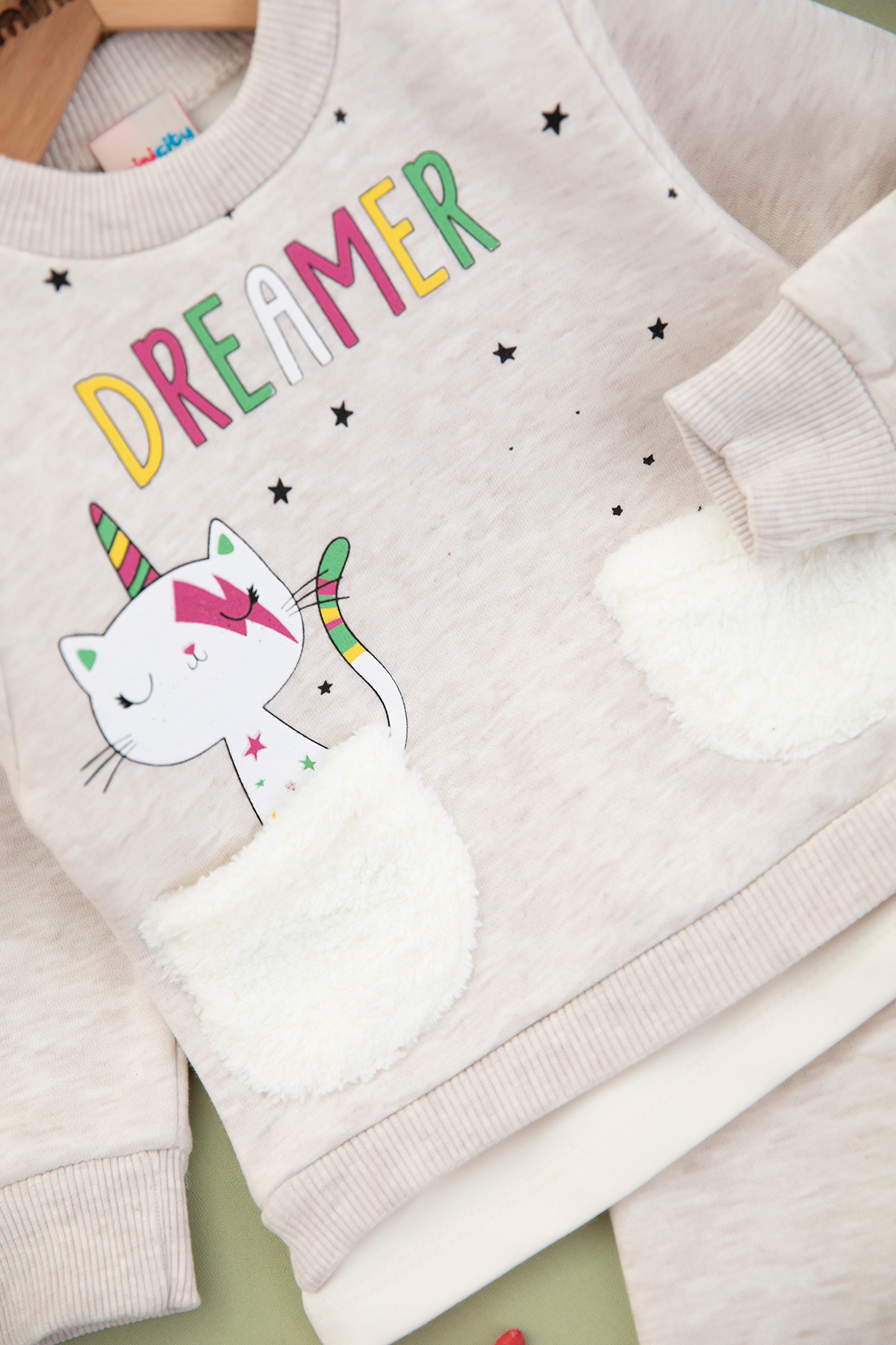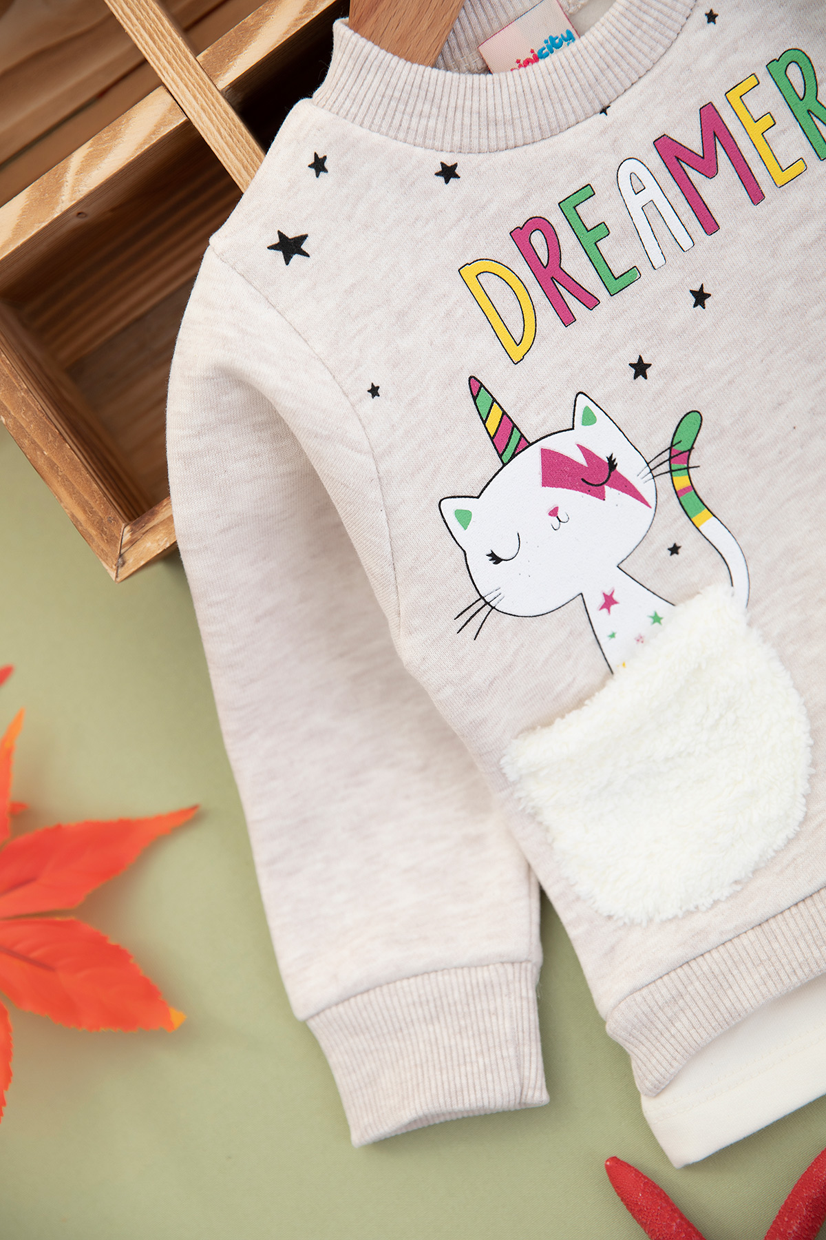 Kız Bebek Dreamer Kedi Baskılı Üç İp Takm - 24805 (9-24 Ay)