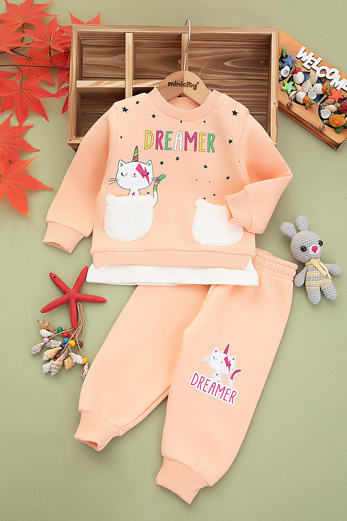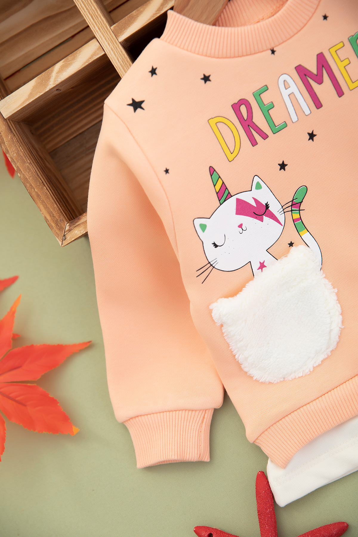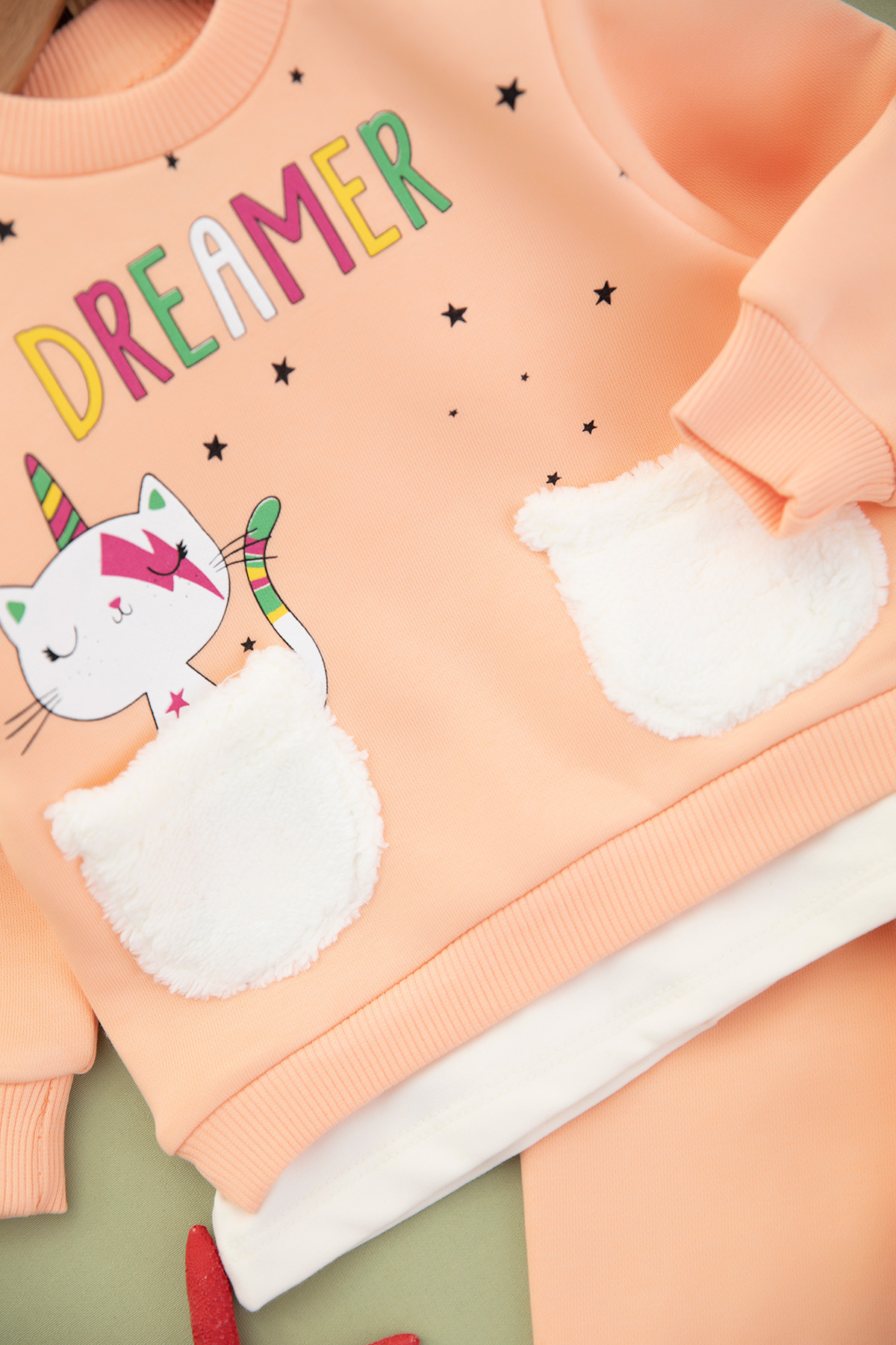 Kız Bebek Dreamer Kedi Baskılı Üç İp Takm - 24805 (9-24 Ay)