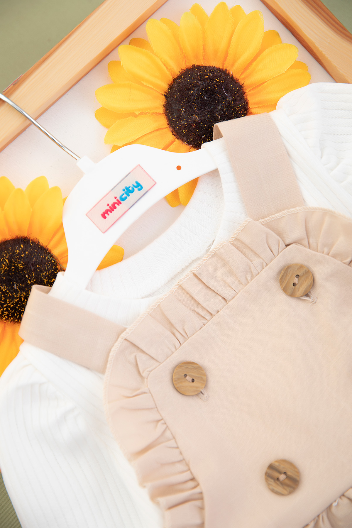 Kız Bebek Düğmeli Keten Badi Salopet Takım - 3120 (9-24 Ay)