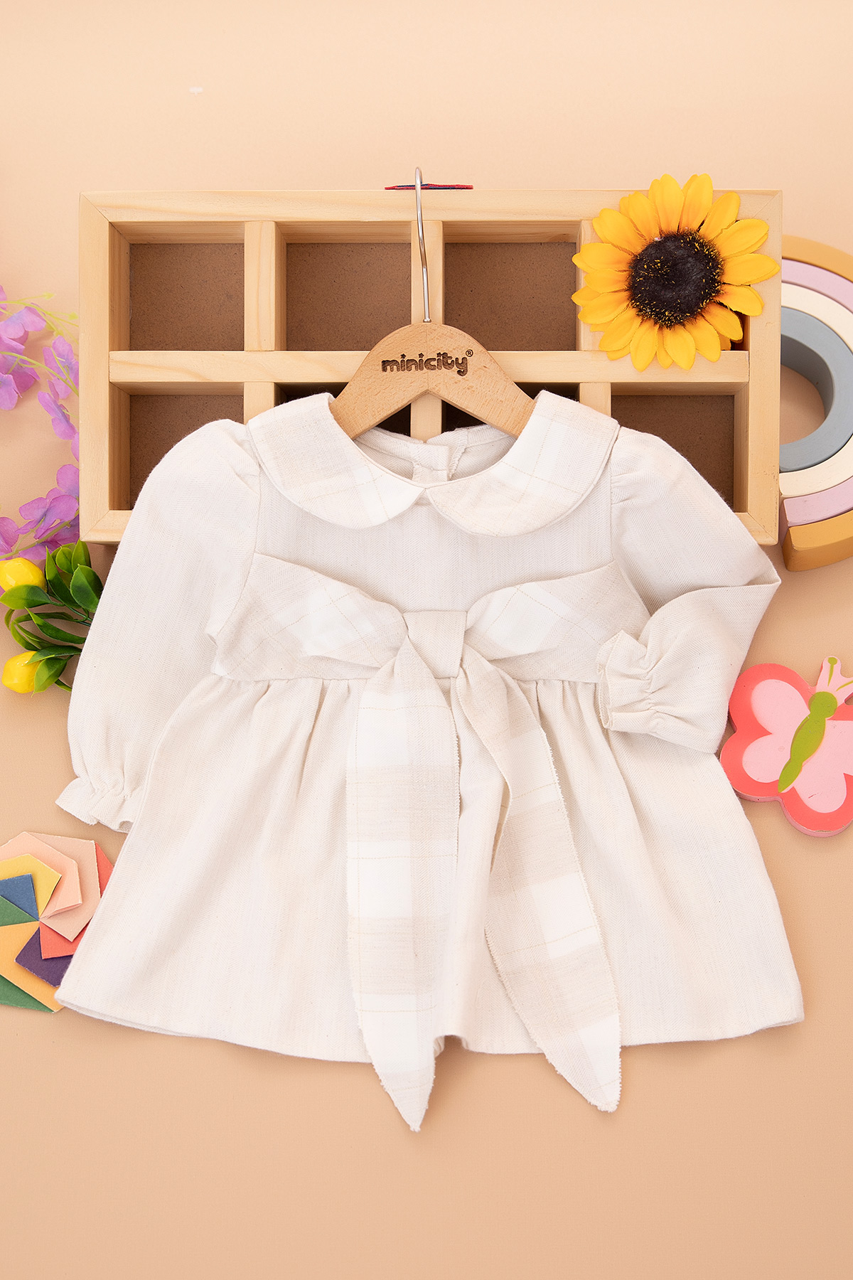 Kız Bebek Ekose Fiyonk Detaylı Elbise - 3141 (9-24 Ay)