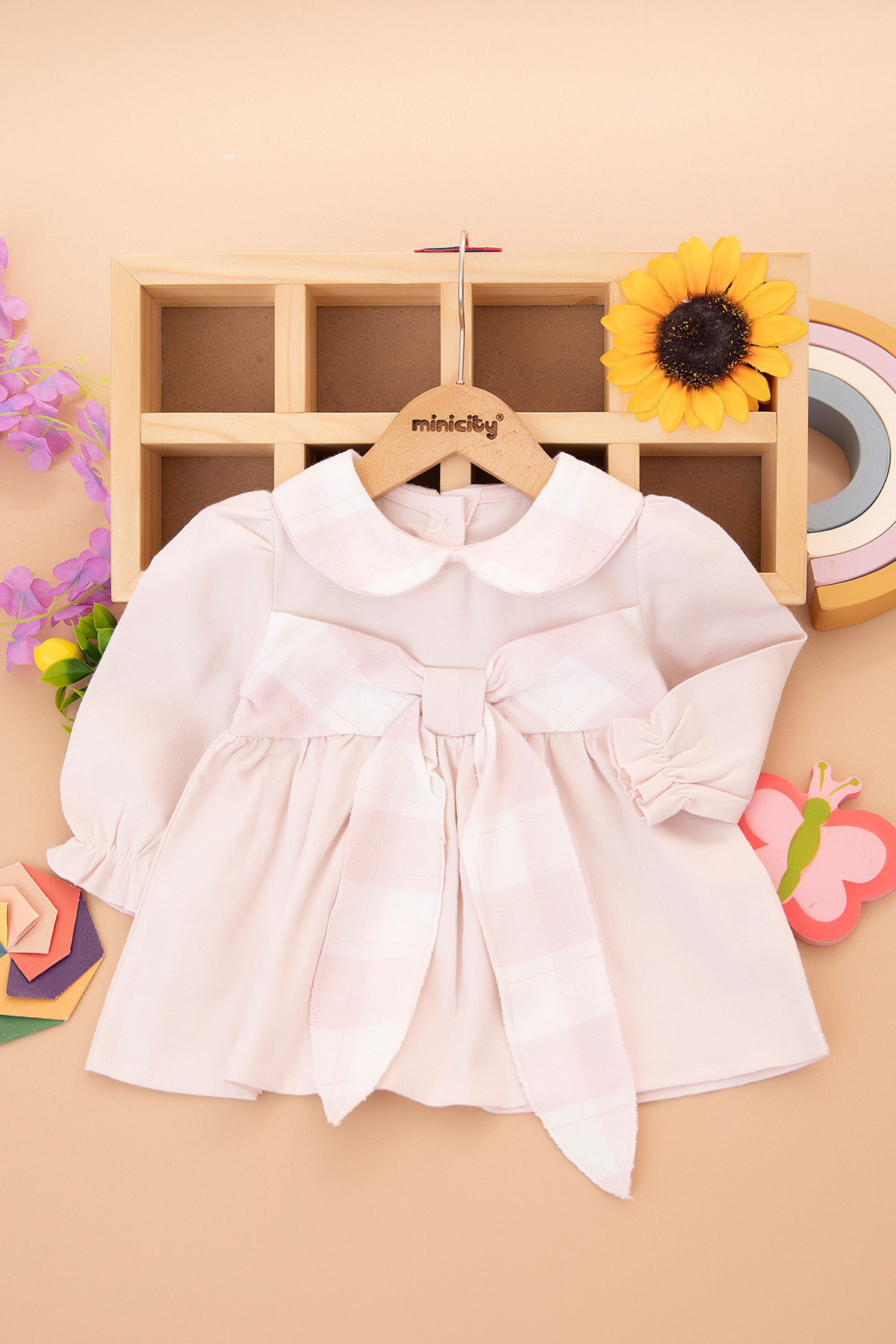 Kız Bebek Ekose Fiyonk Detaylı Elbise - 3141 (9-24 Ay)