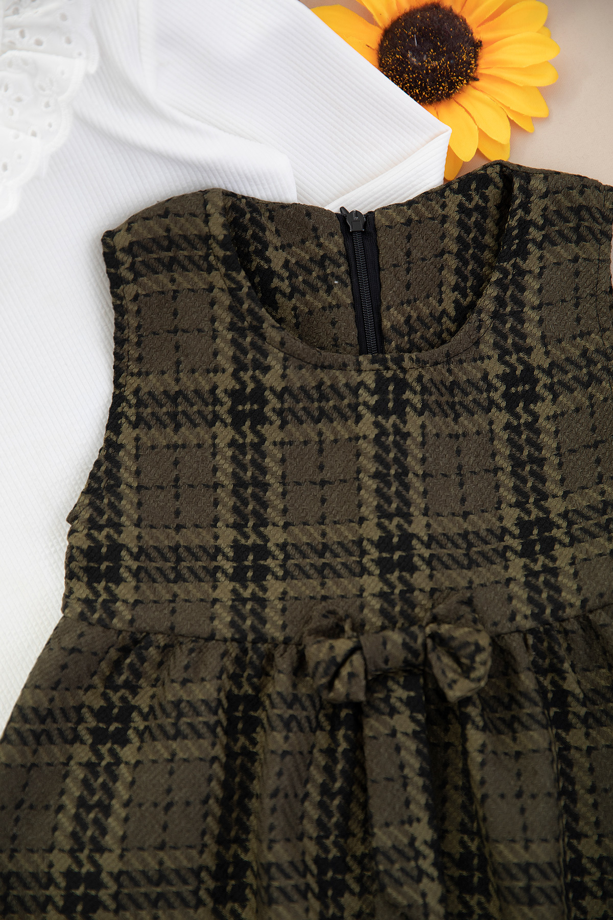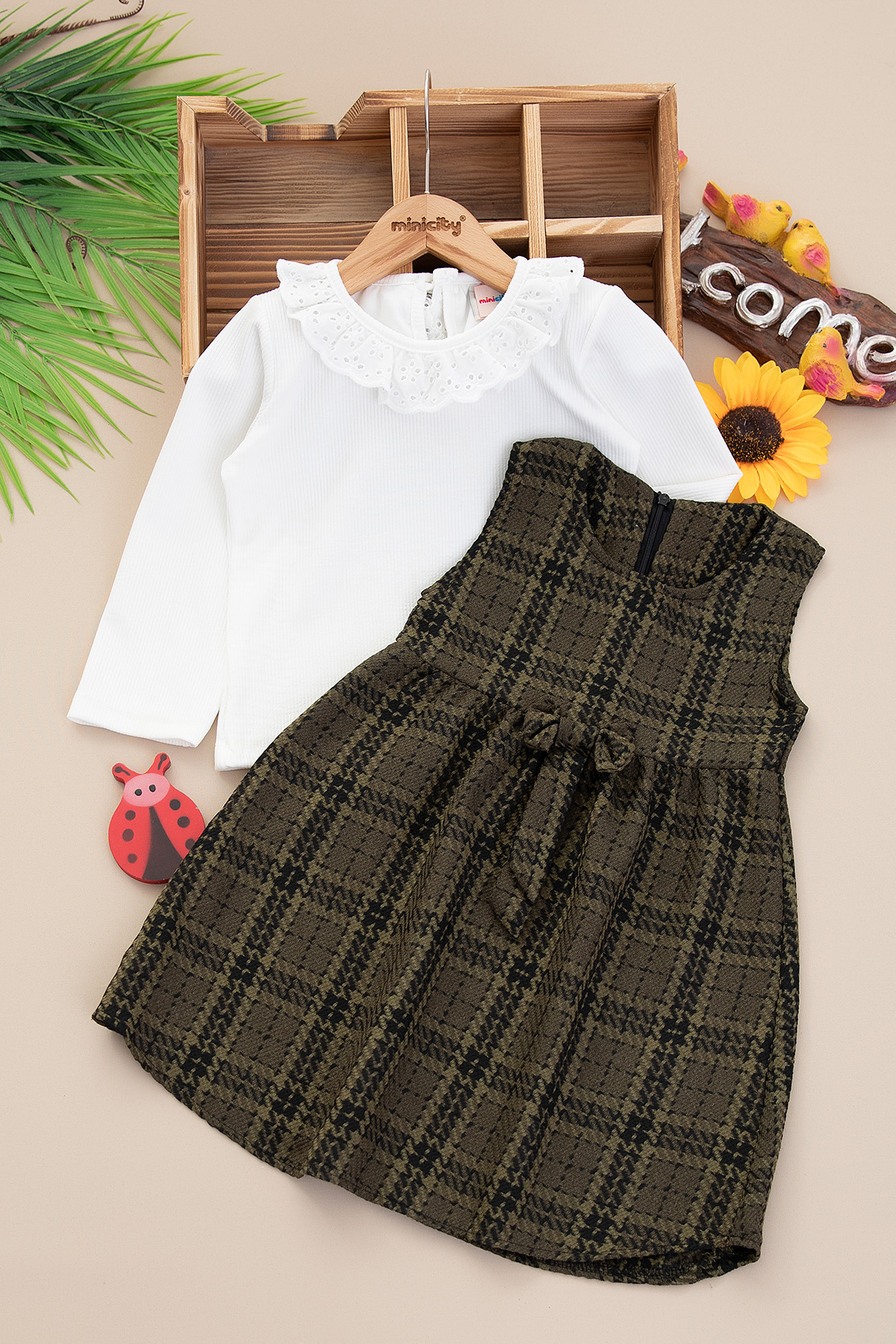 Kız Bebek Ekose Kareli Fiyonklu Badili Jile - 0724 (3-7 Yaş)