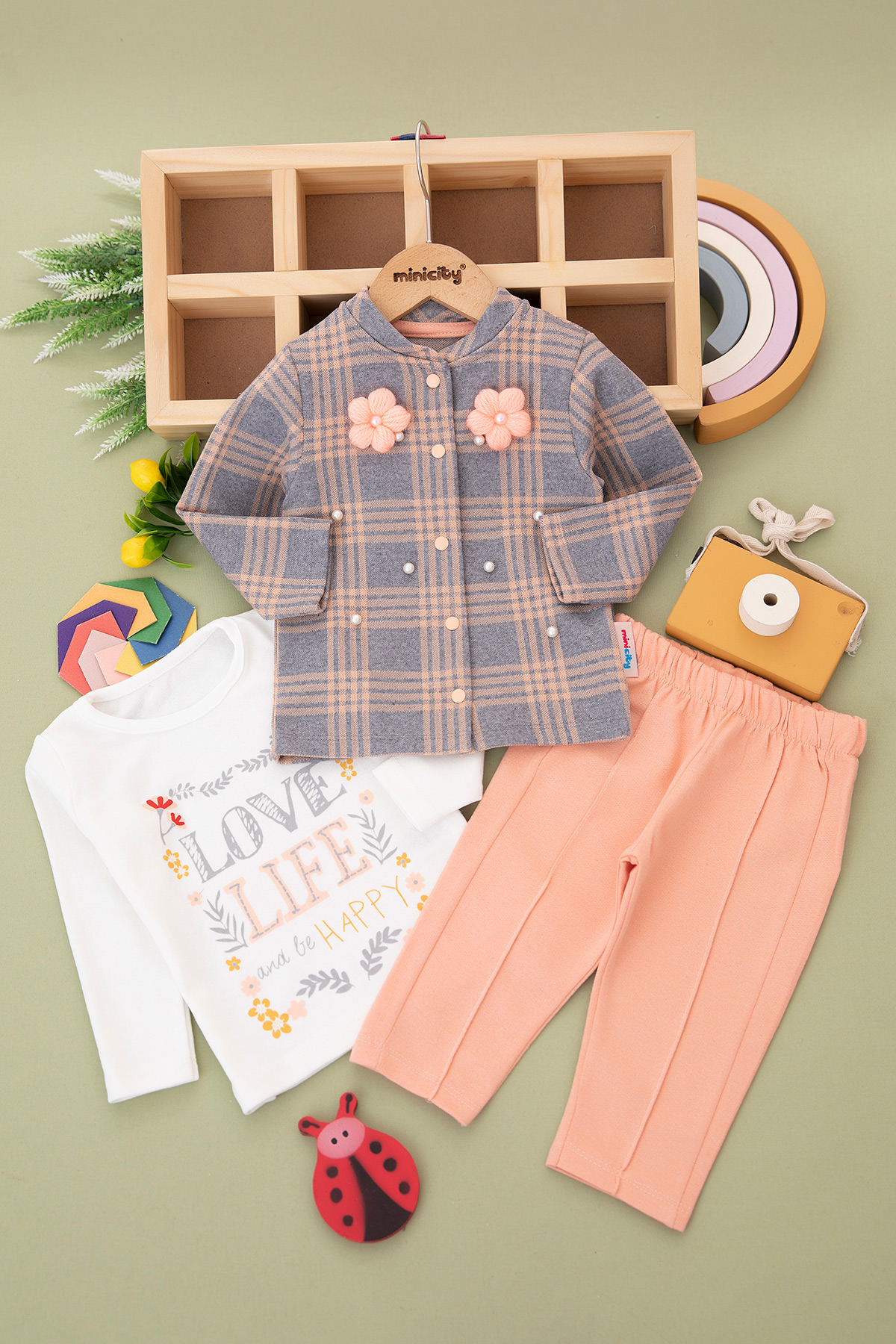 Kız Bebek Ekose Love Hırkalı Takım - 90003 (9-24 Ay)