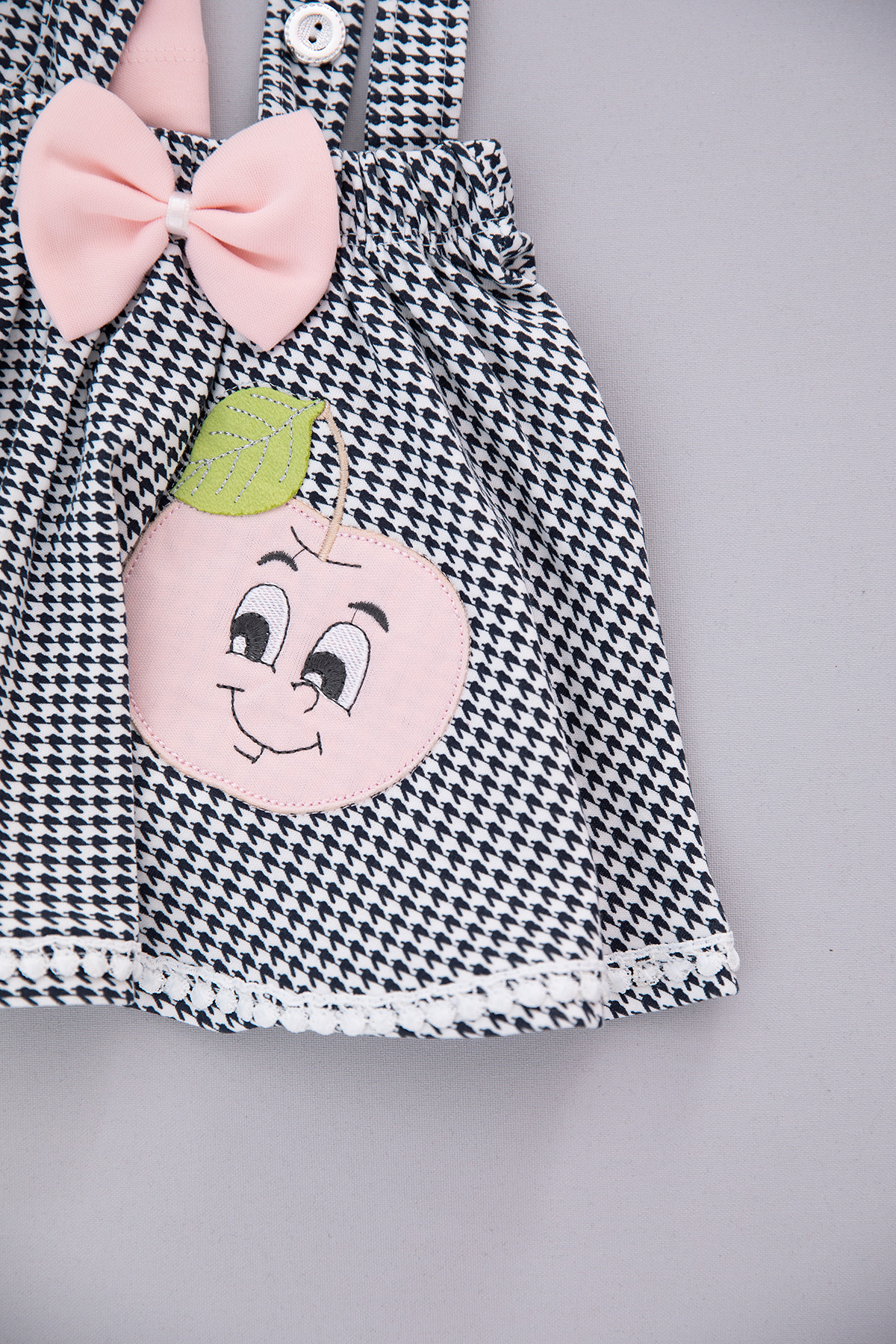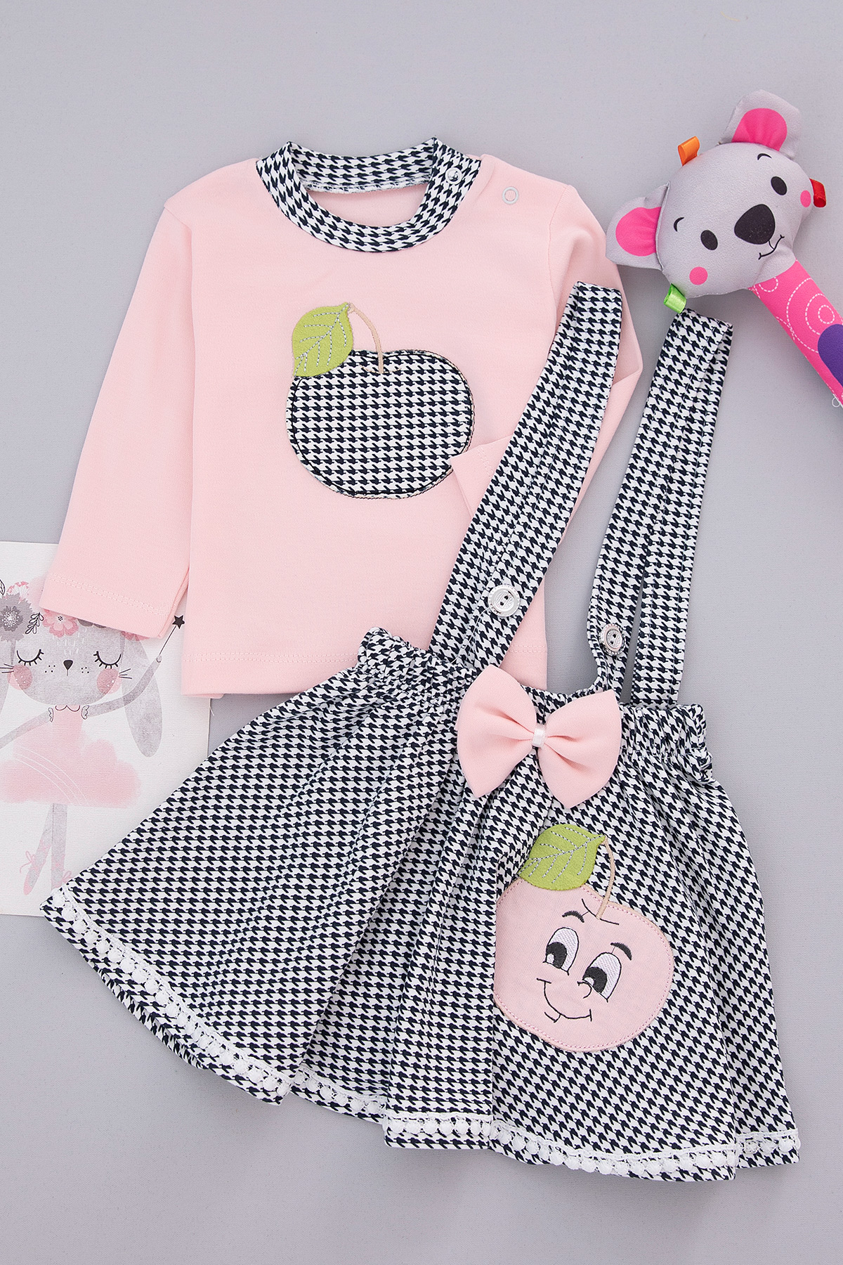 Kız Bebek Elma Nakışlı Etekli Takım - 1078 (9-24 Ay)