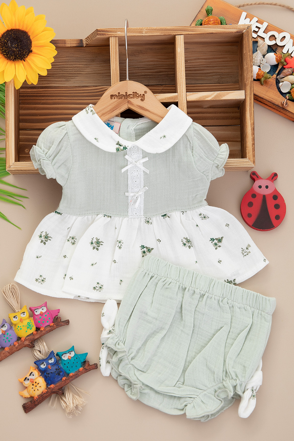 Kız Bebek Eteği Çiçekli Şortlu Takım - 0508 (6-18 Ay)