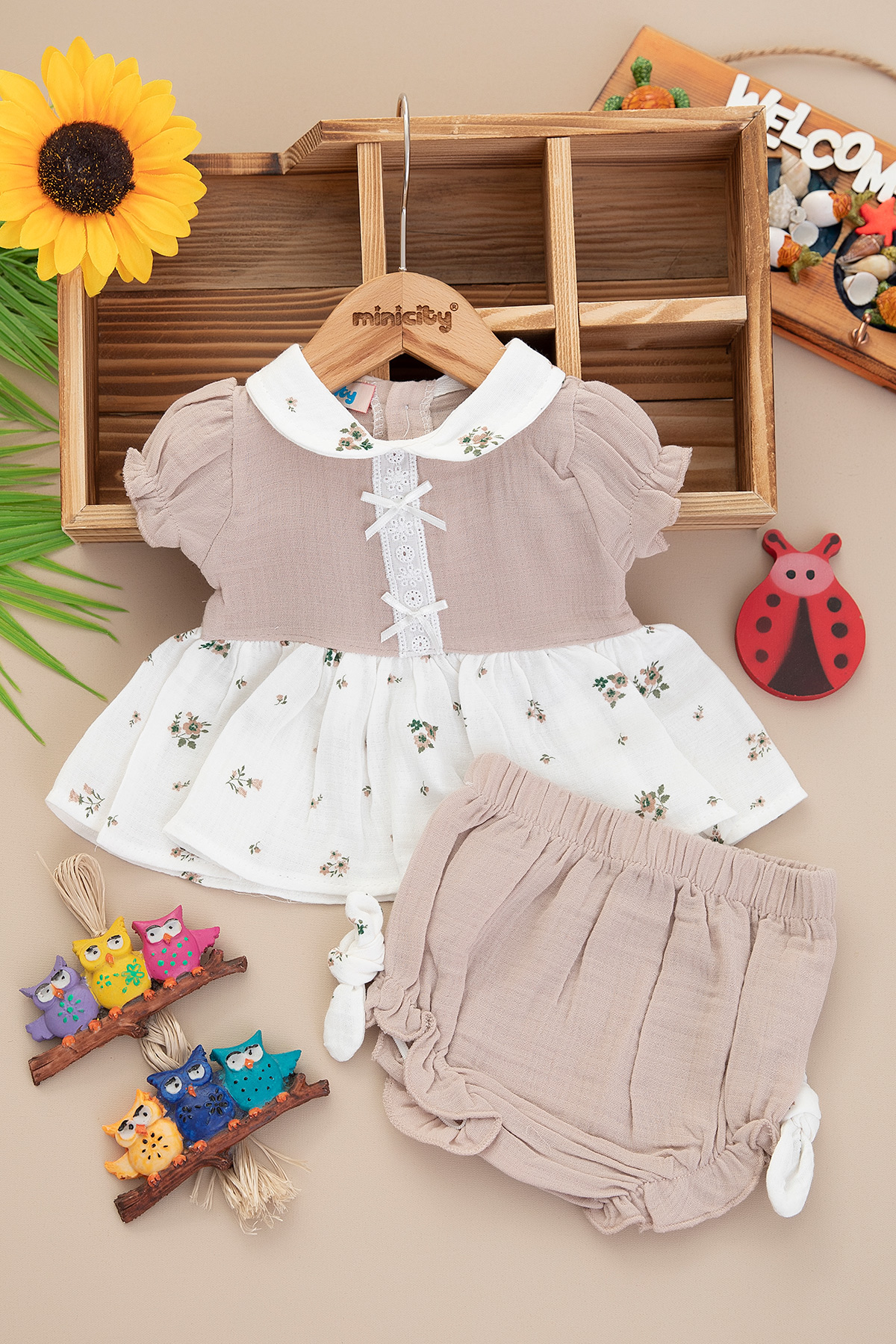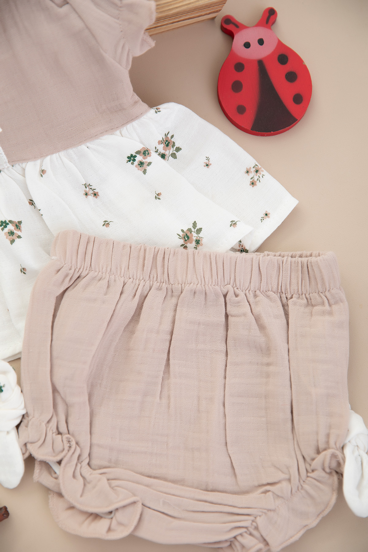 Kız Bebek Eteği Çiçekli Şortlu Takım - 0508 (6-18 Ay)