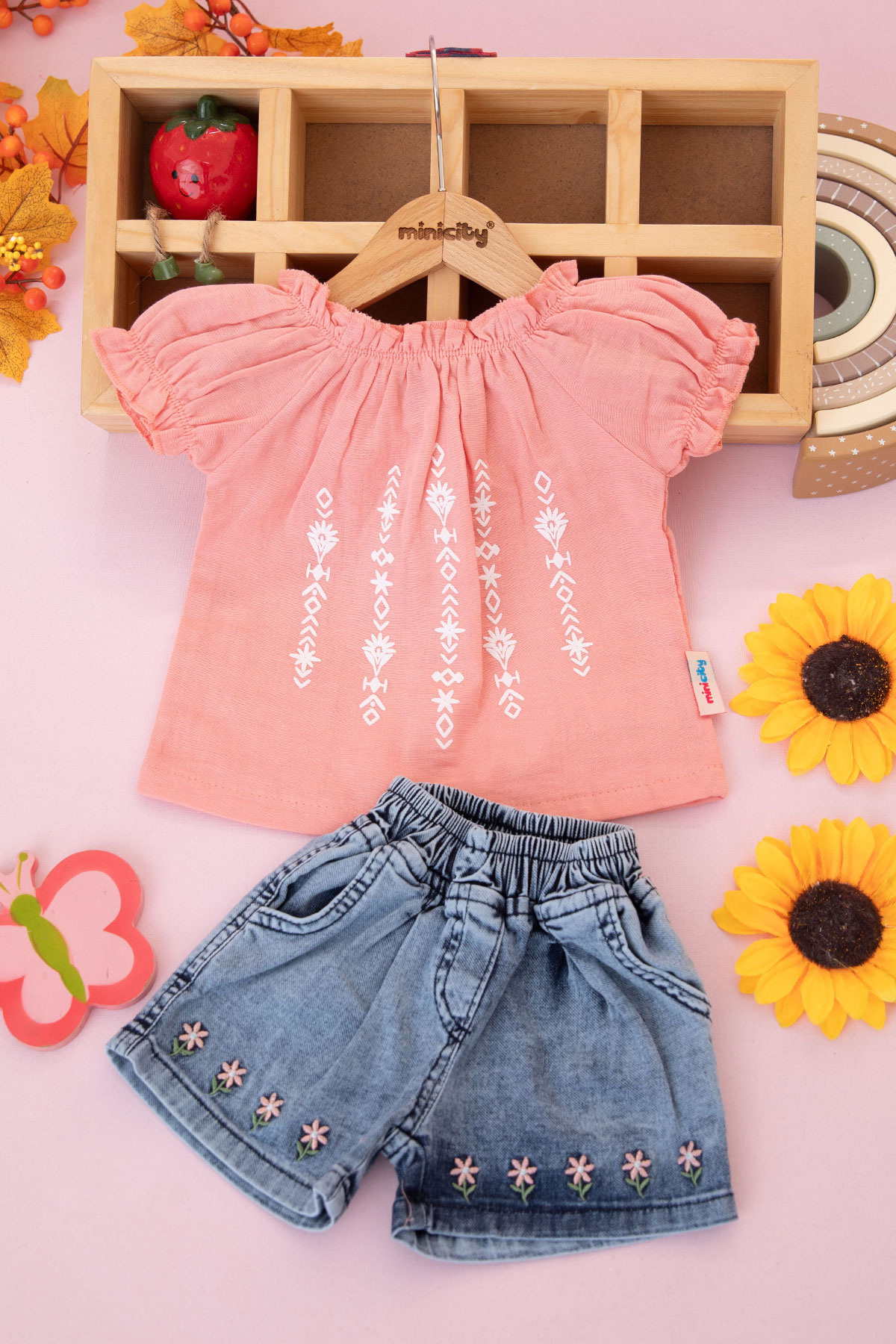 Kız Bebek Etnik Desenli Şortlu Takım - 26494 (9-24 Ay)