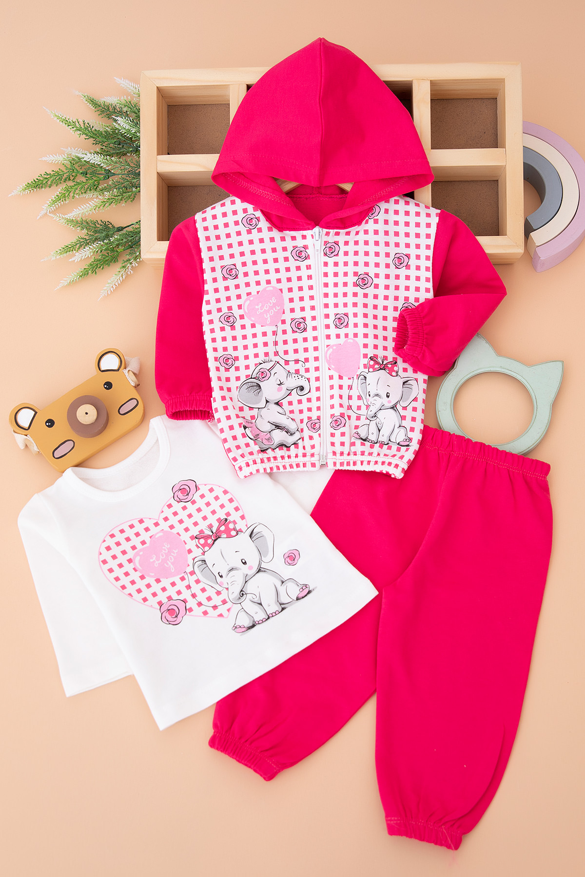 Kız Bebek Fermuarlı 3`lü Takım - 3116 (6-12 Ay)