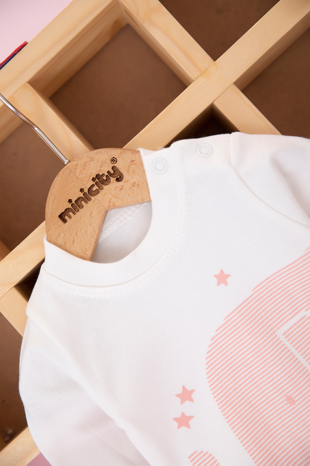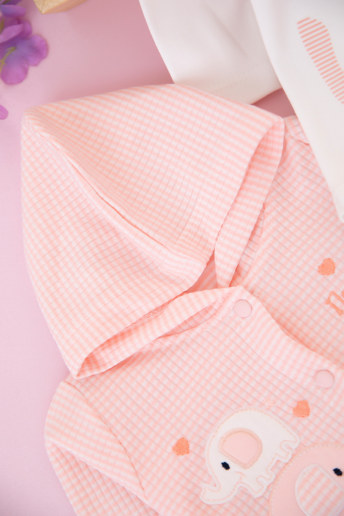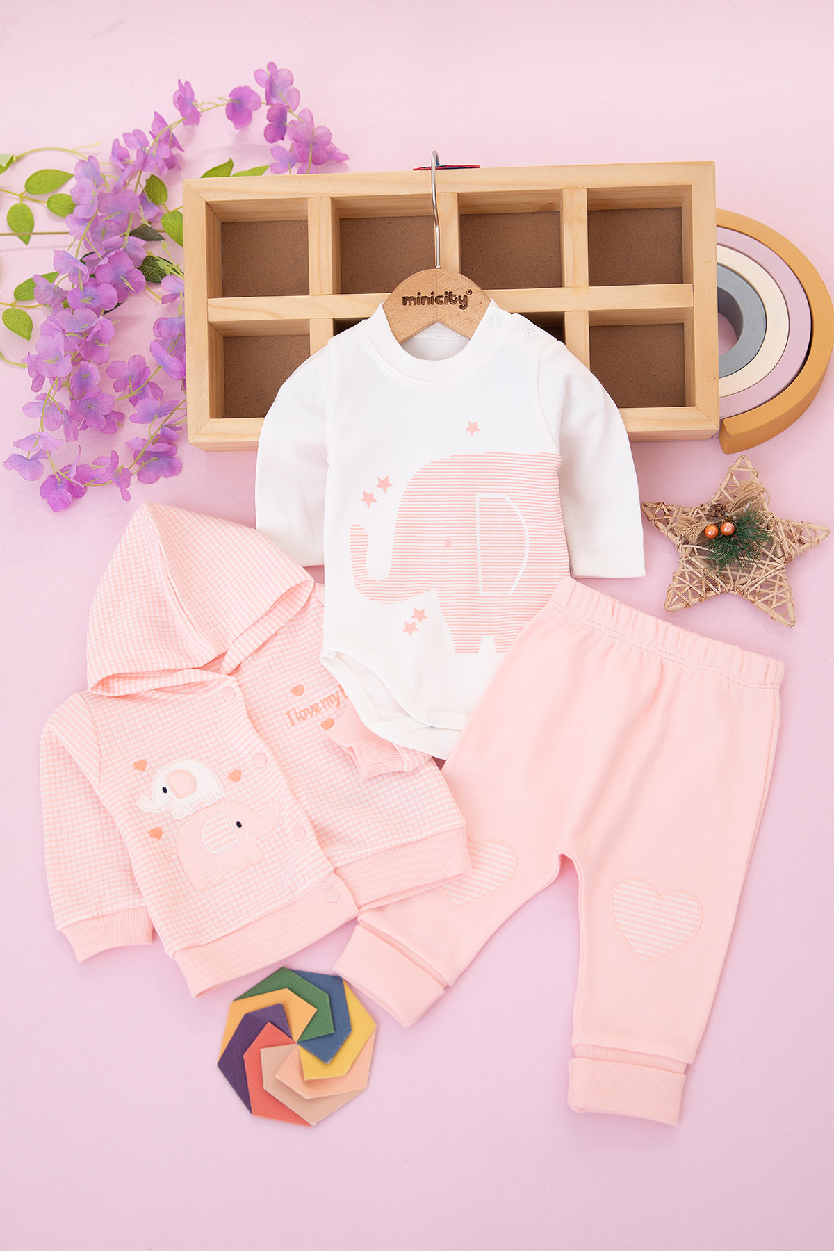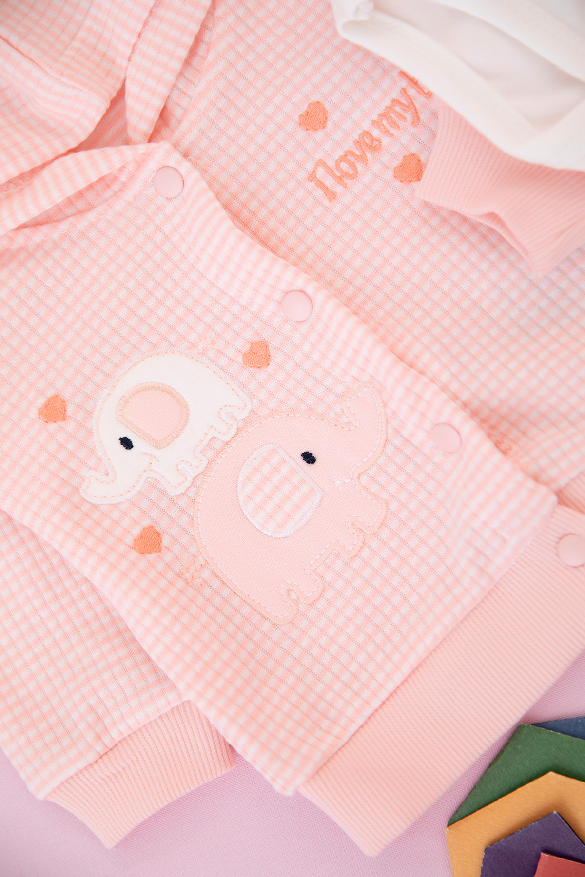 Kız Bebek Fil Nakışlı Çizgili Üçlü Takım - 6930 (0-9 Ay)