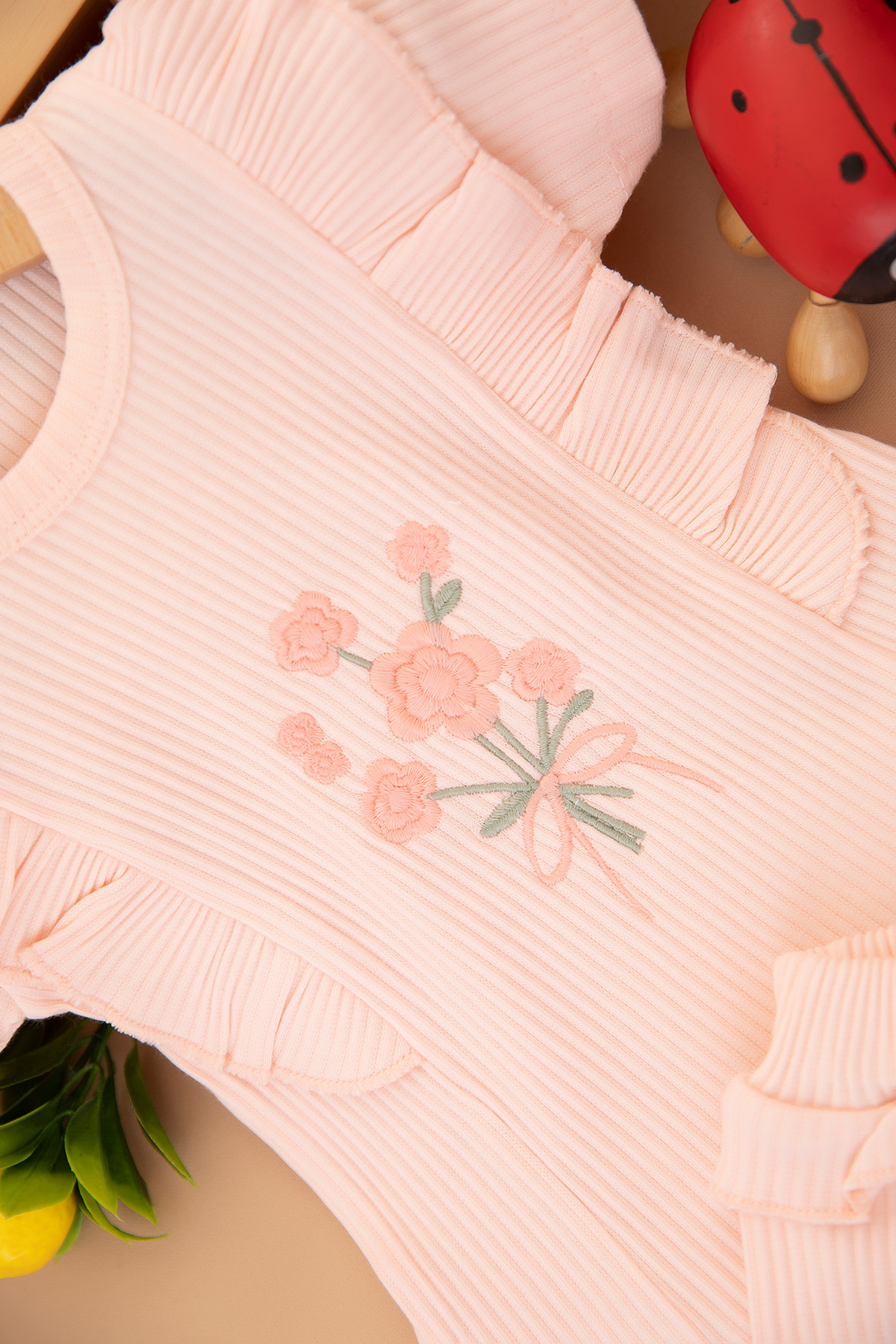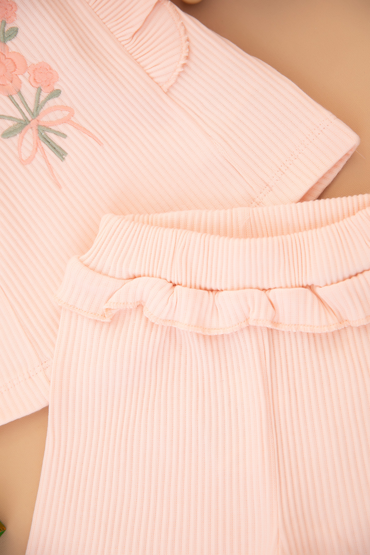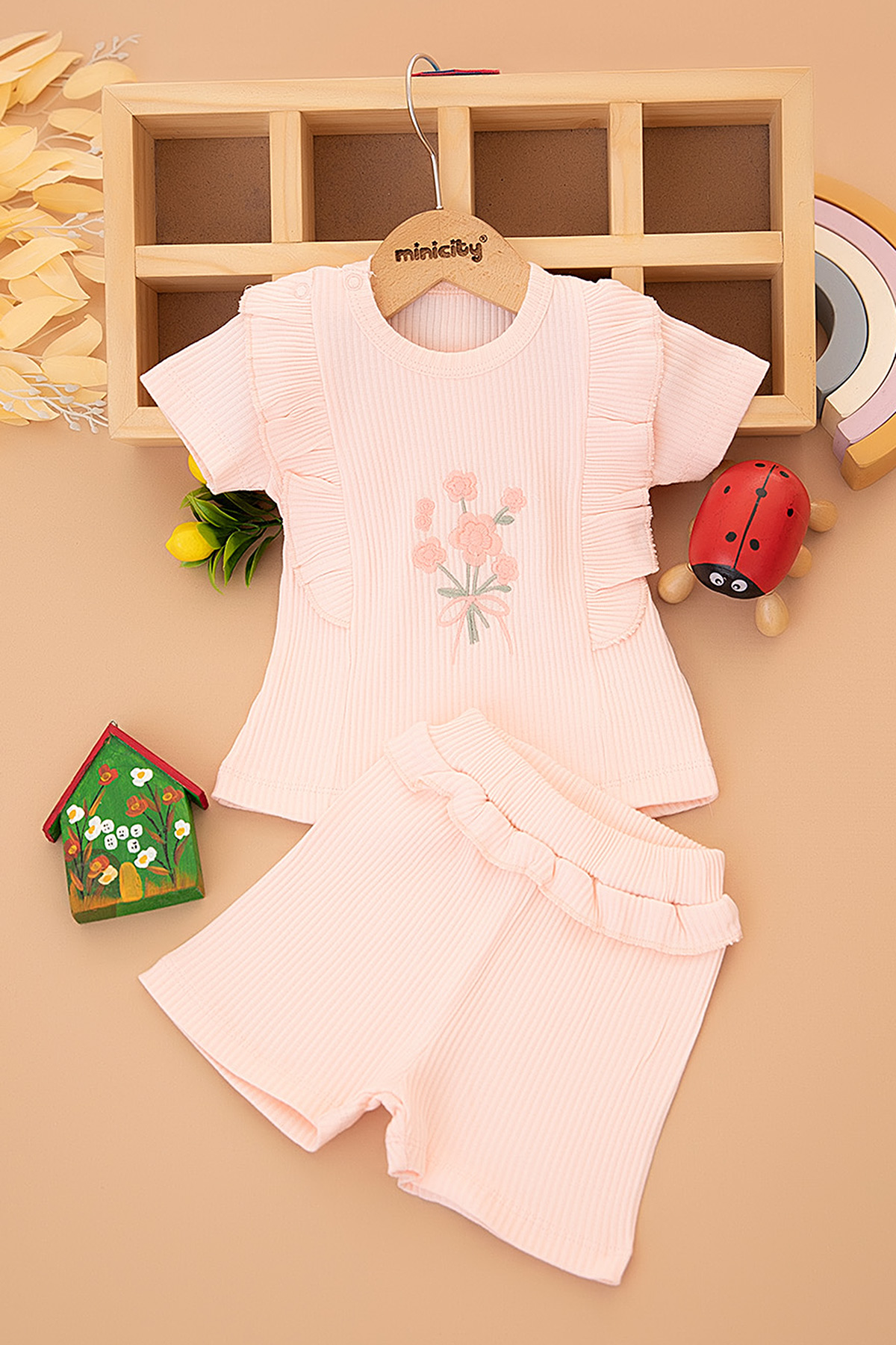 Kız Bebek Fırfırlı Çiçek Nakışlı Şortlu Takım - 2607 (6-24 Ay)