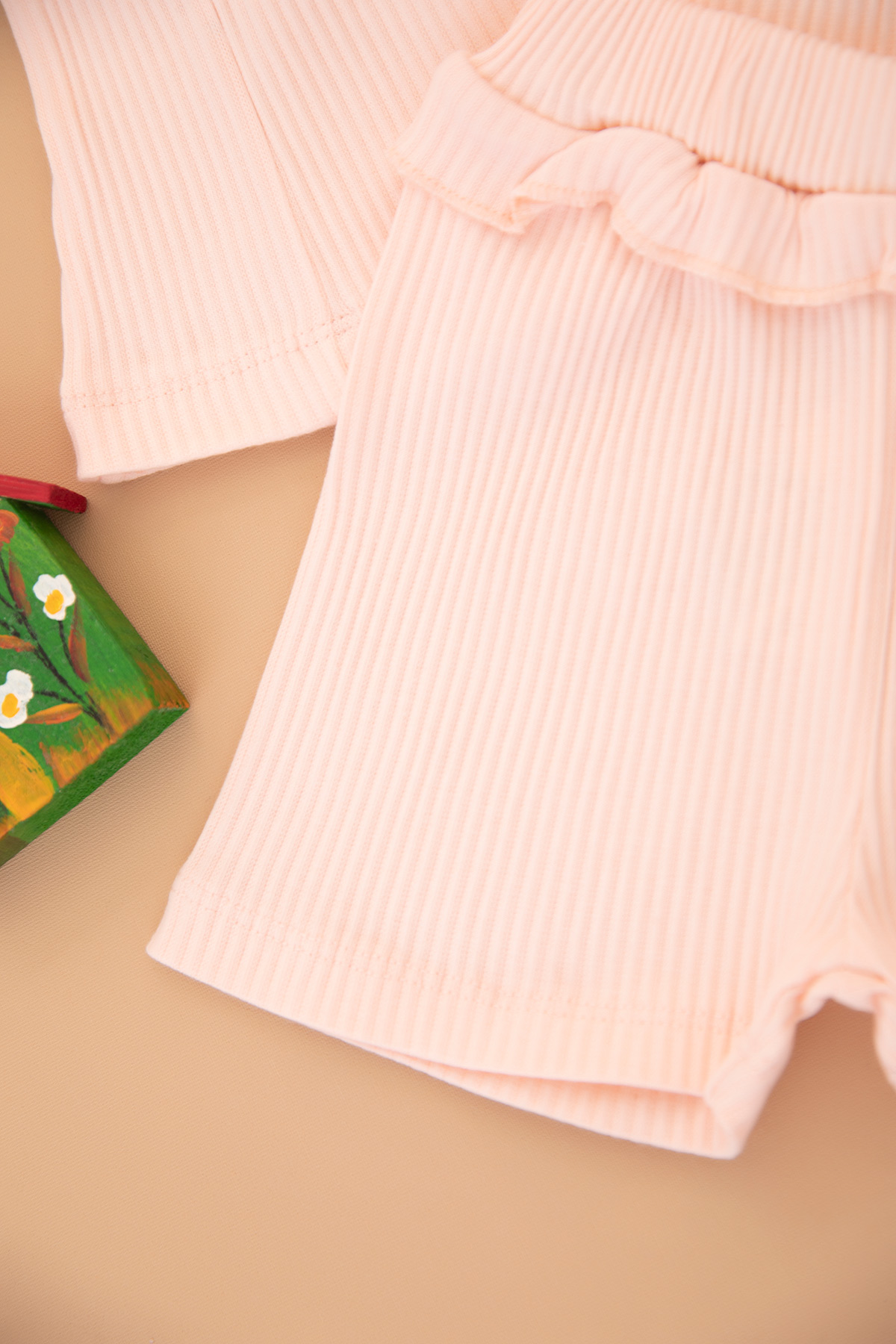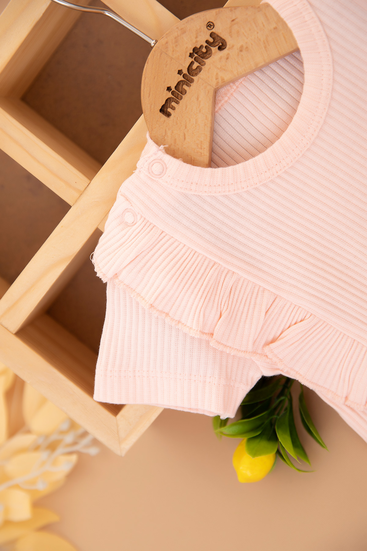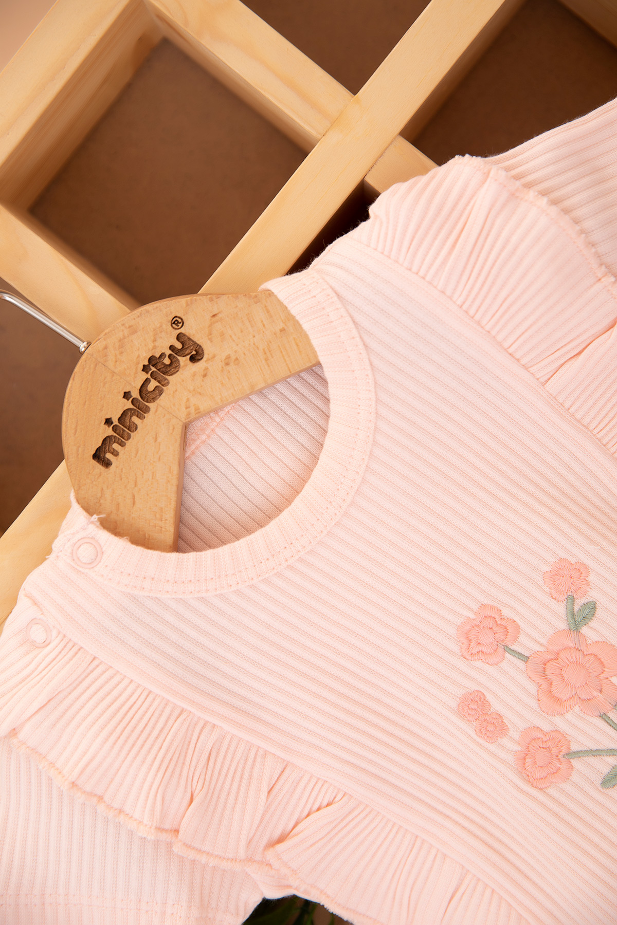 Kız Bebek Fırfırlı Çiçek Nakışlı Şortlu Takım - 2607 (6-24 Ay)