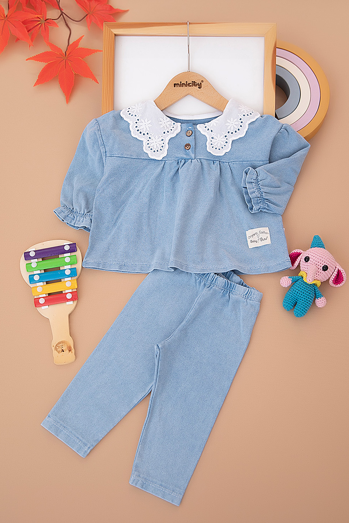 Kız Bebek Fisto Yakalı Kot Takım - 0236 (6-18 Ay)
