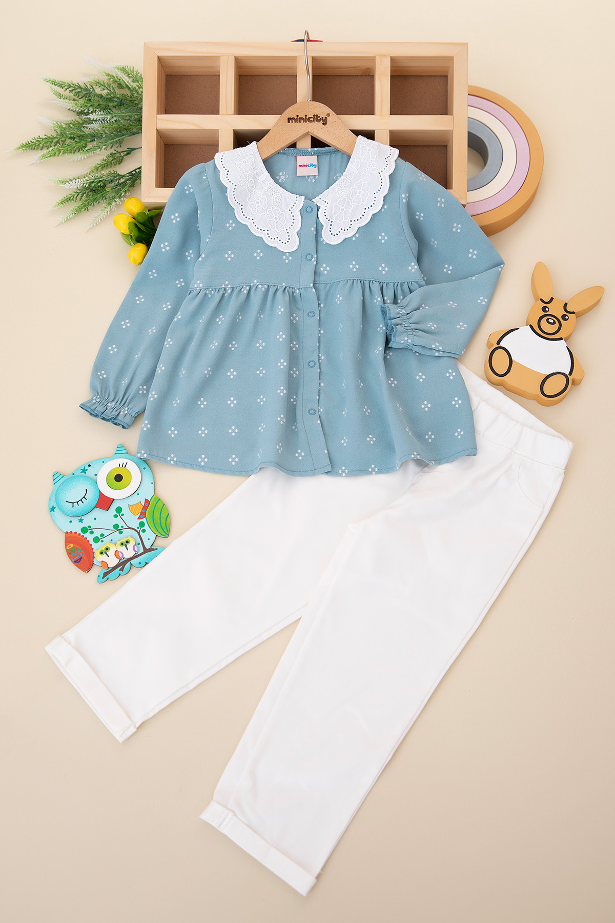 Kız Bebek Fisto Yakalı Pantolonlu Takım - 24092 (9-24 Ay)