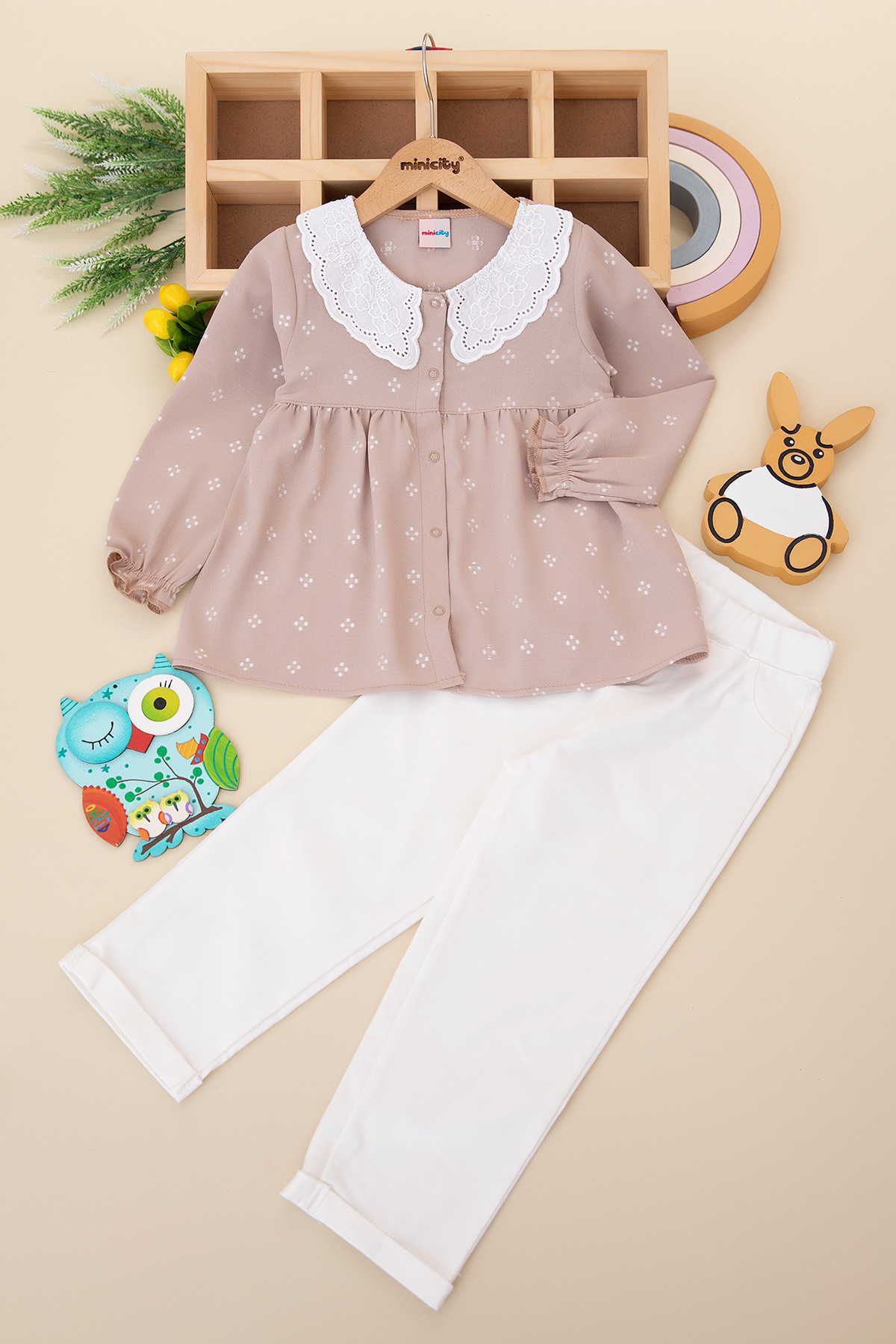 Kız Bebek Fisto Yakalı Pantolonlu Takım - 24092 (9-24 Ay)