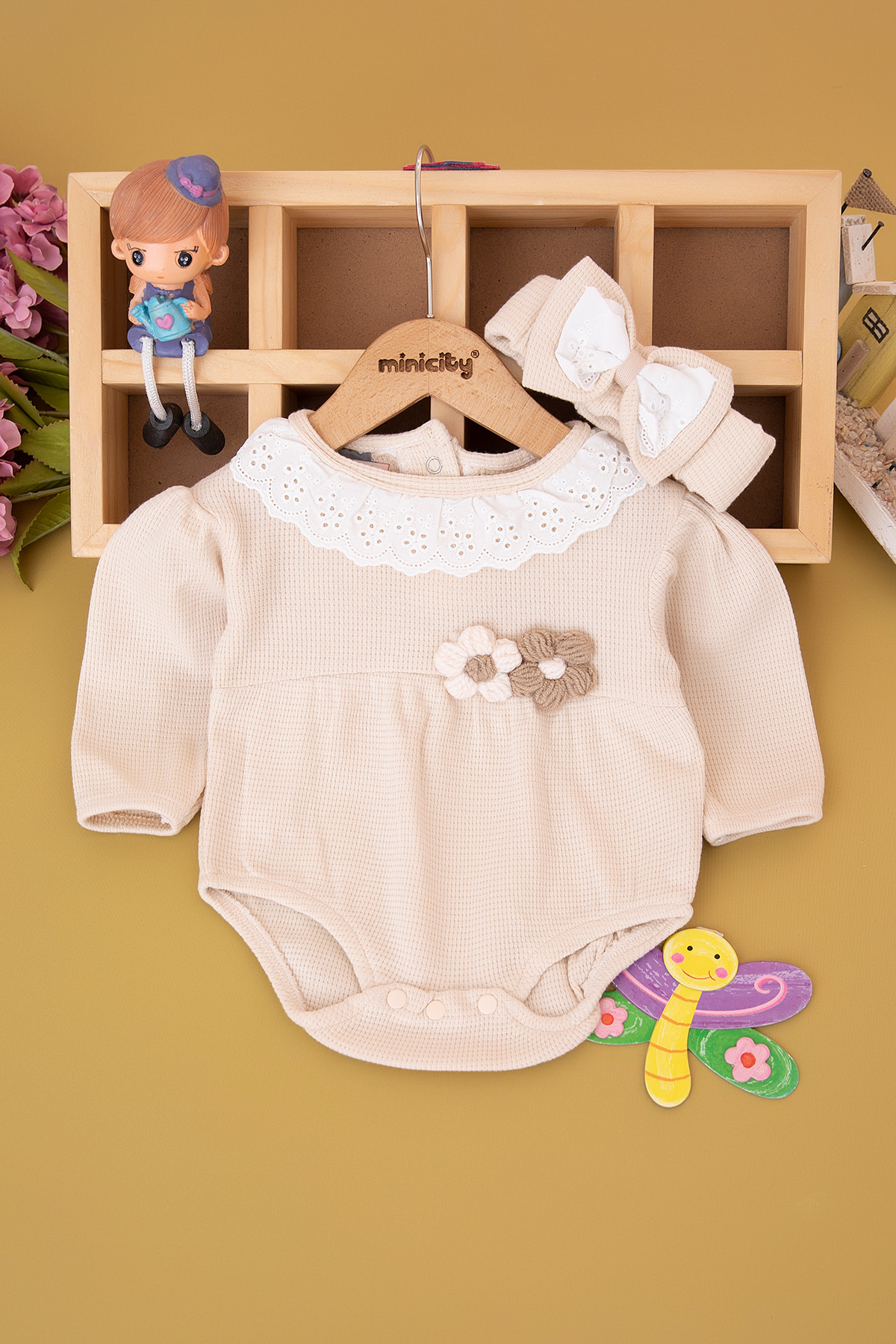 Kız Bebek Fisto Yaklı Waffle Tulum - 14113 (0-12 Ay)