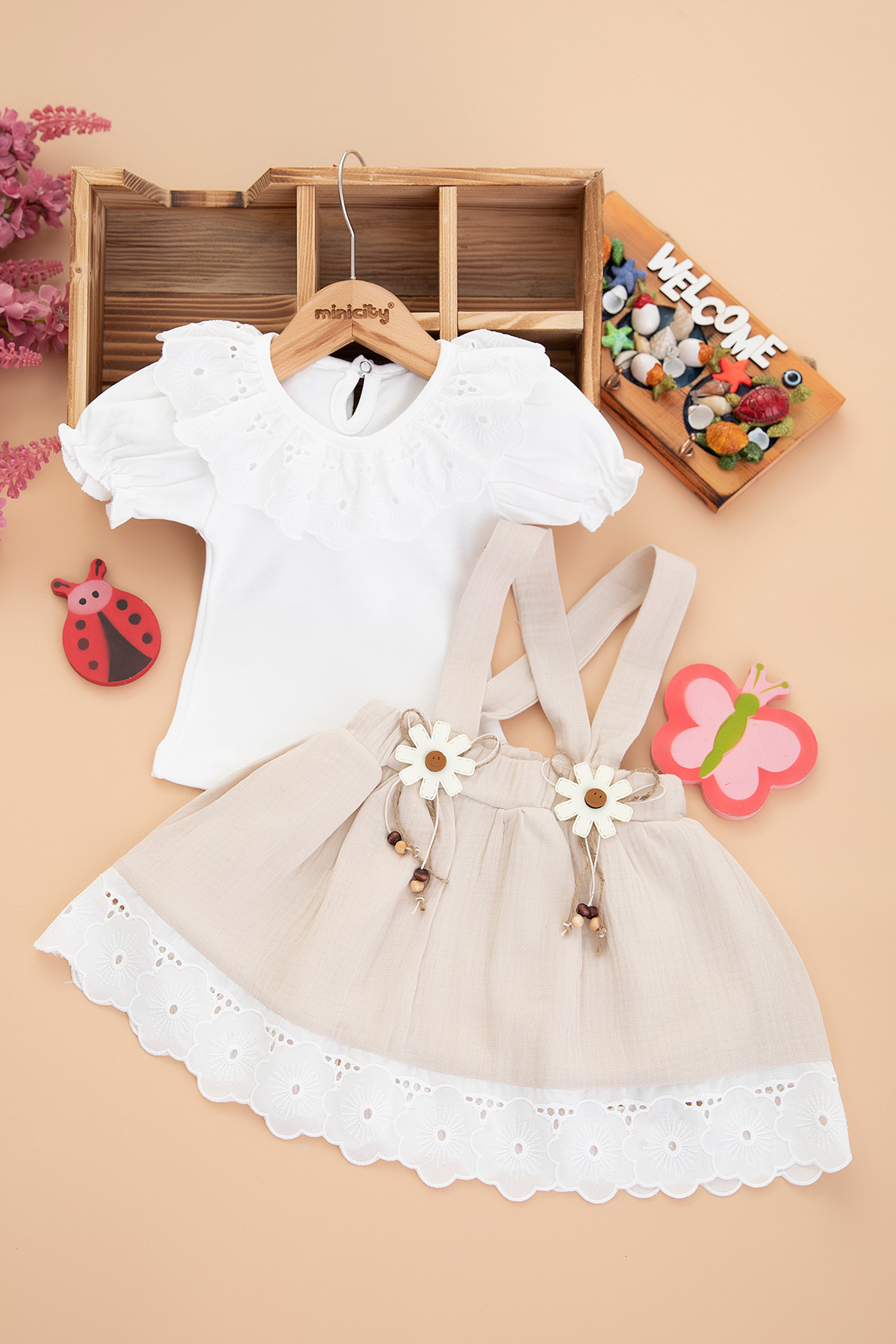 Kız Bebek Fistolu Badi Askılı Etek Takım - 0542 (6-12 Ay)