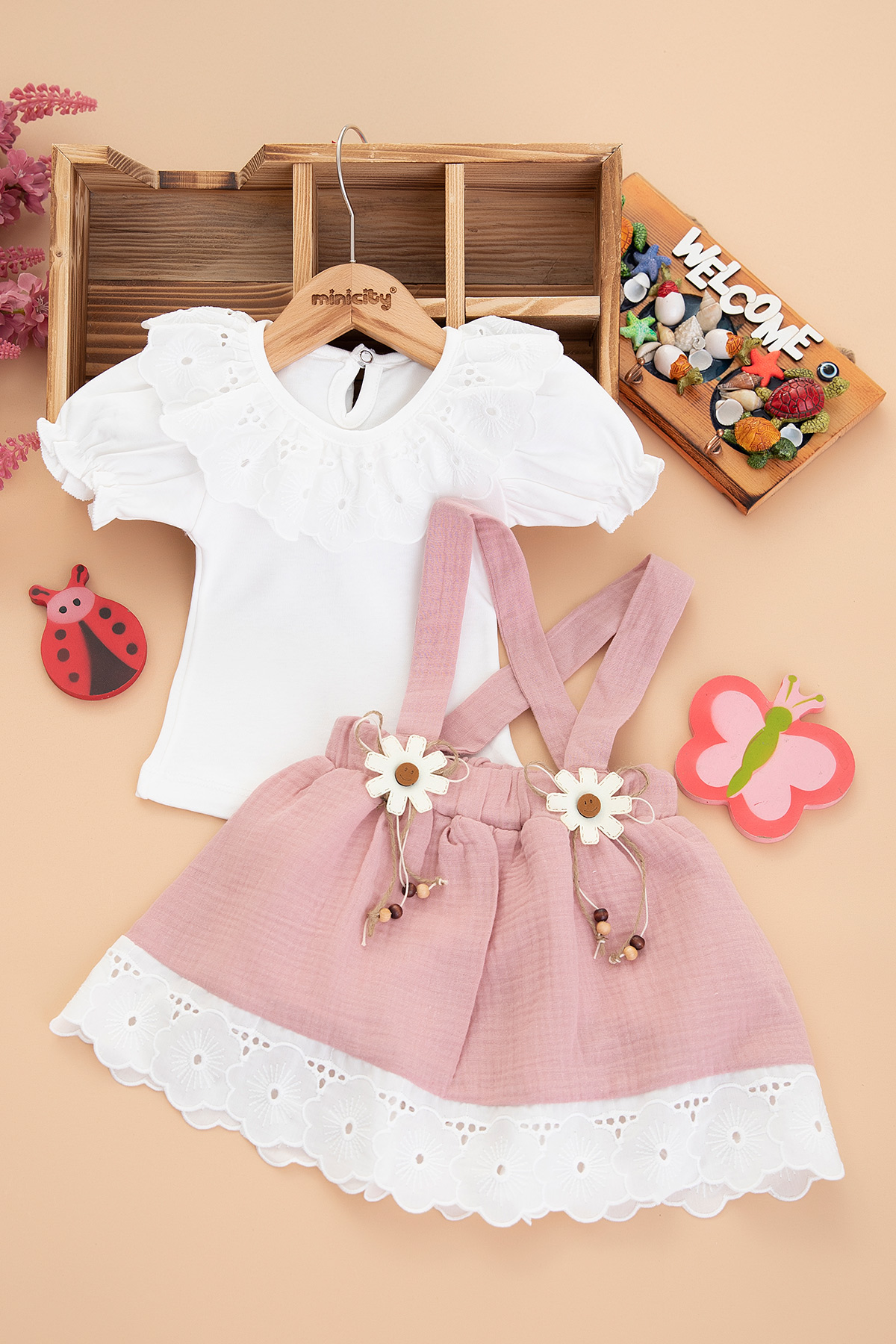 Kız Bebek Fistolu Badi Askılı Etek Takım - 0542 (6-12 Ay)