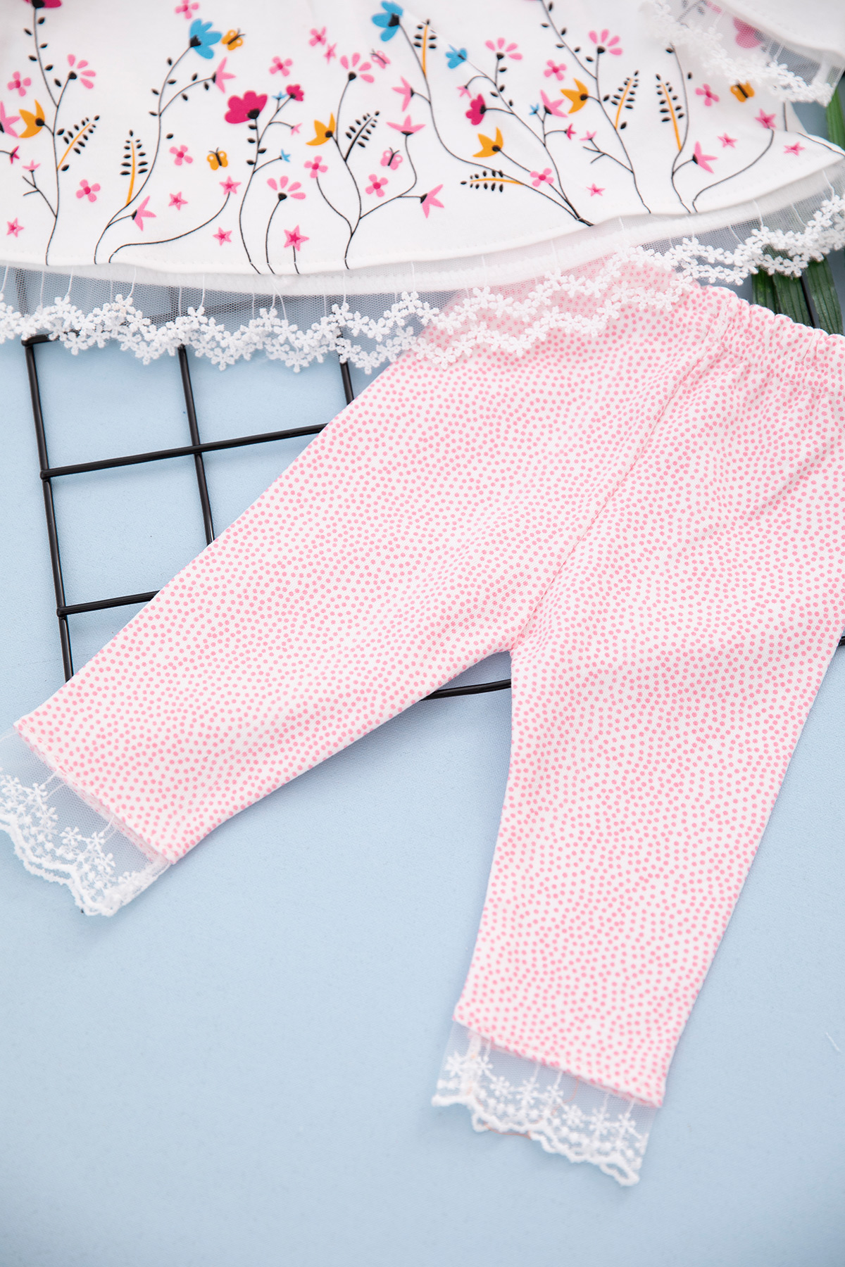 Kız Bebek Fistolu Çiçek Baskılı Takım - (9-18 Ay)