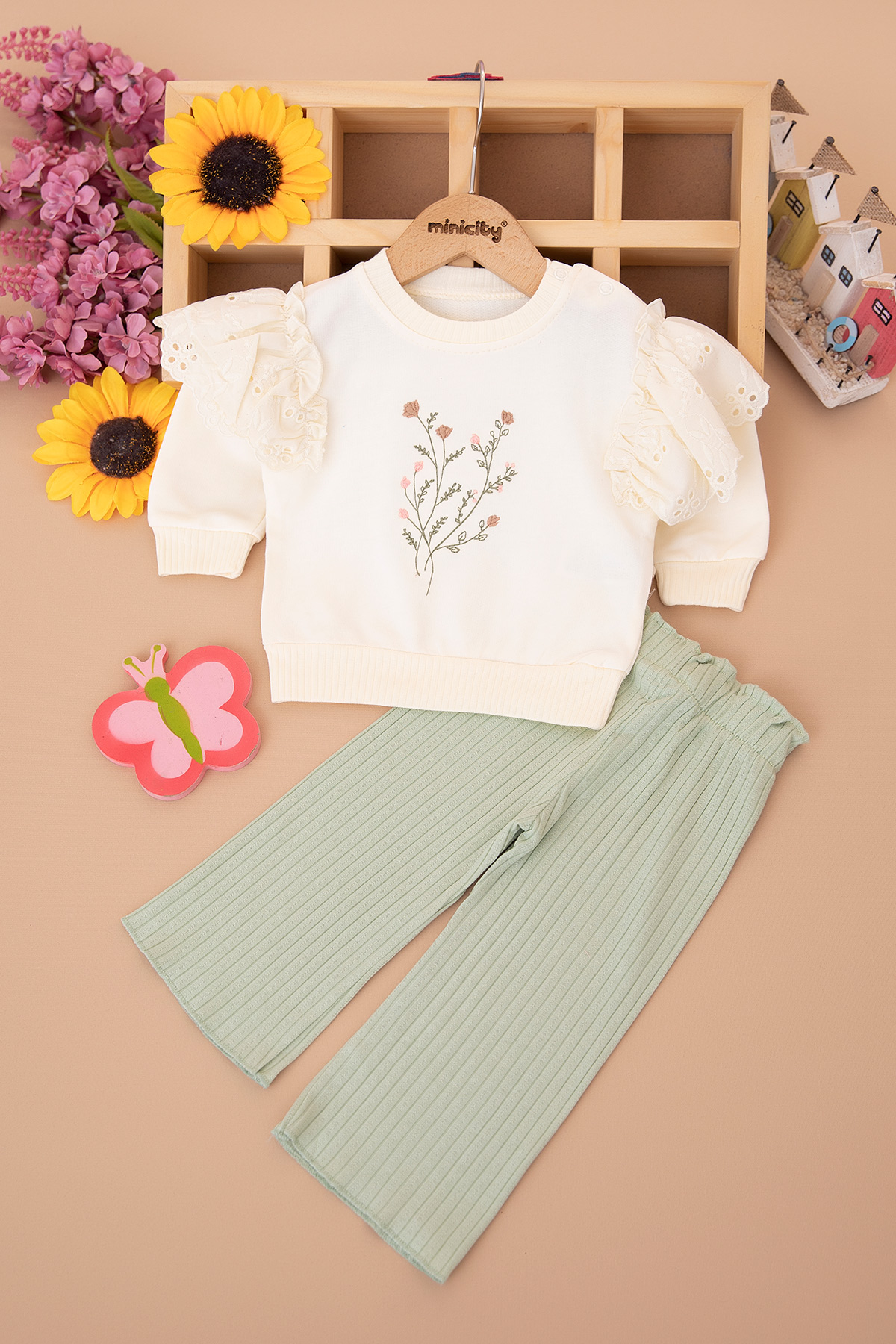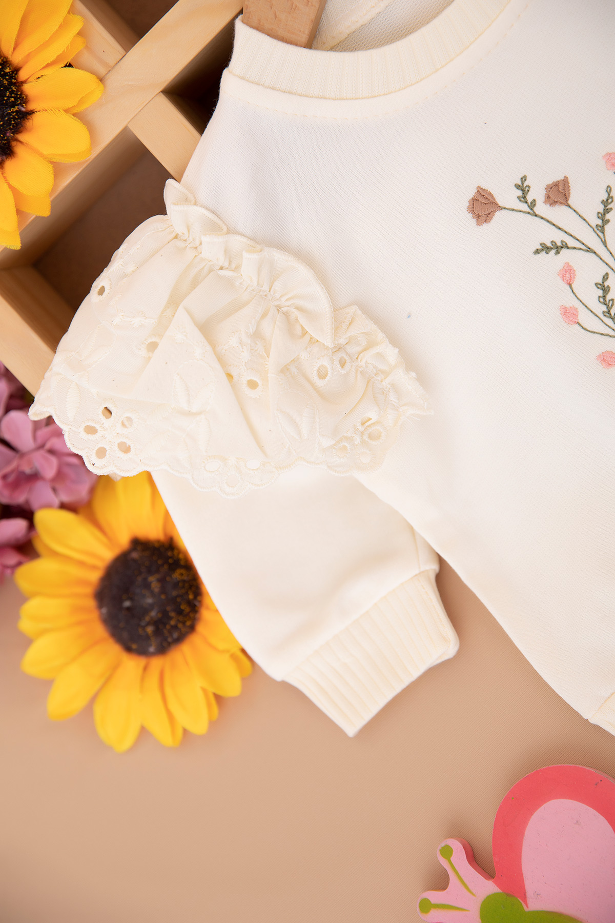 Kız Bebek Fistolu Çiçek Nakışlı Takım - 2603 (6-24 Ay)