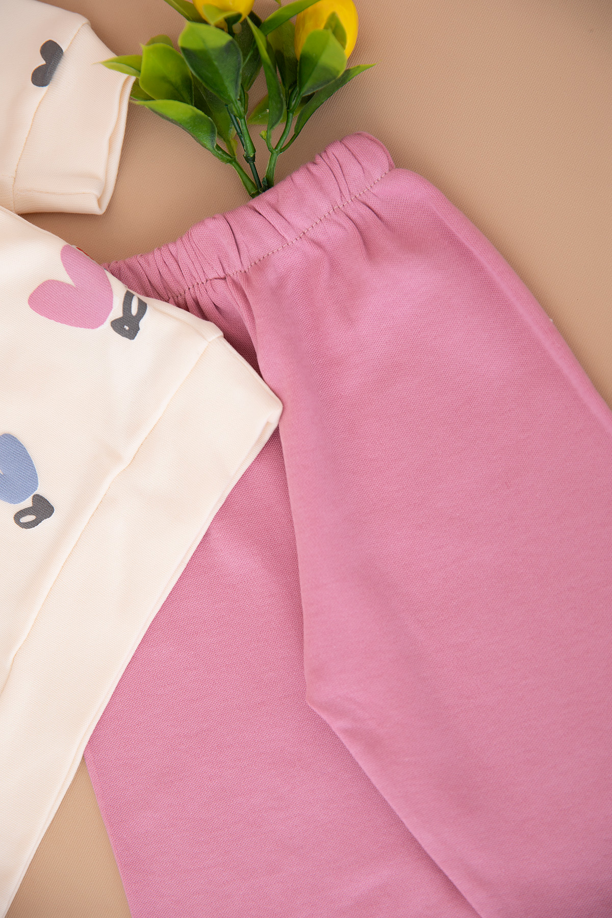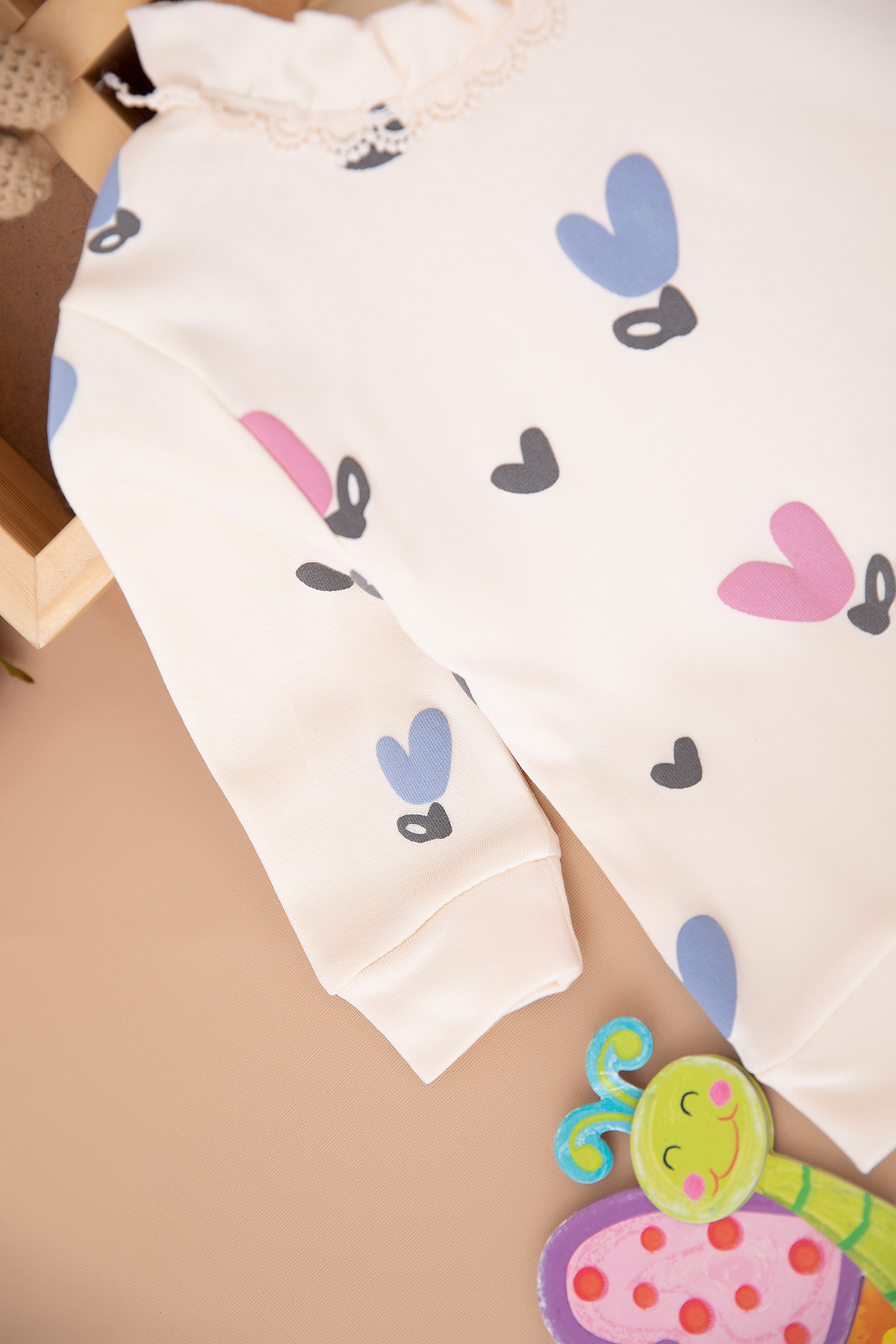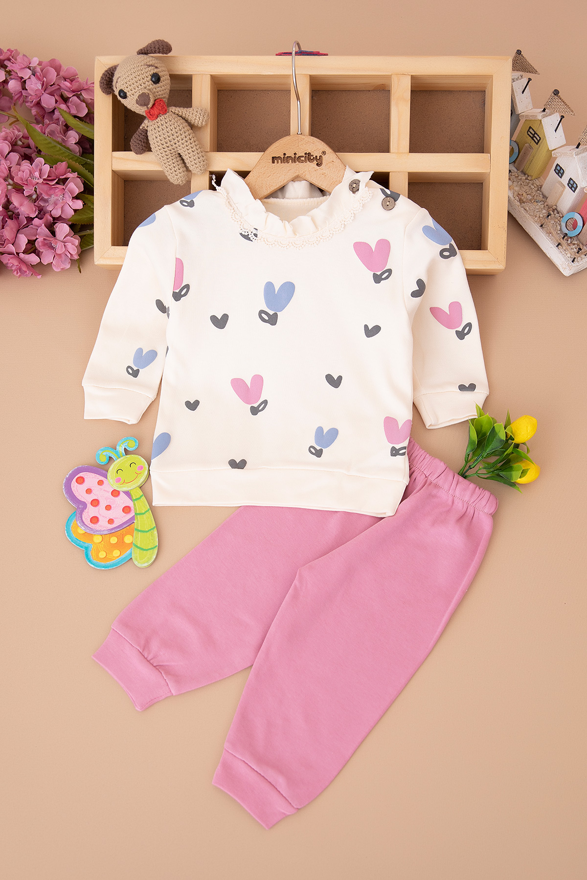 Kız Bebek Fistolu Kalp Baskılı Takım - 1083 (6-18 Ay)