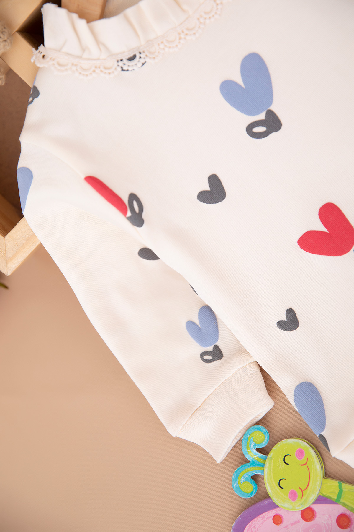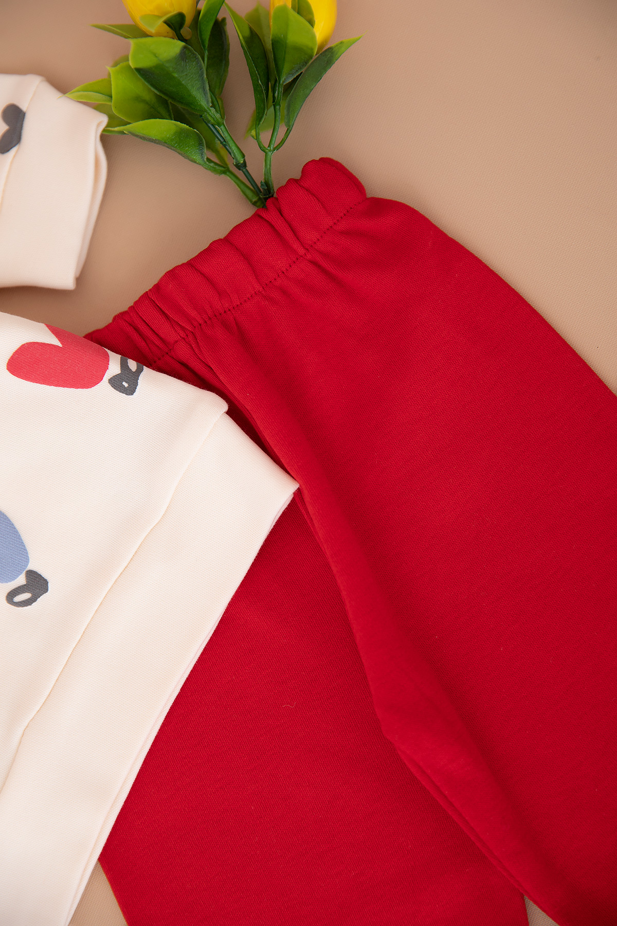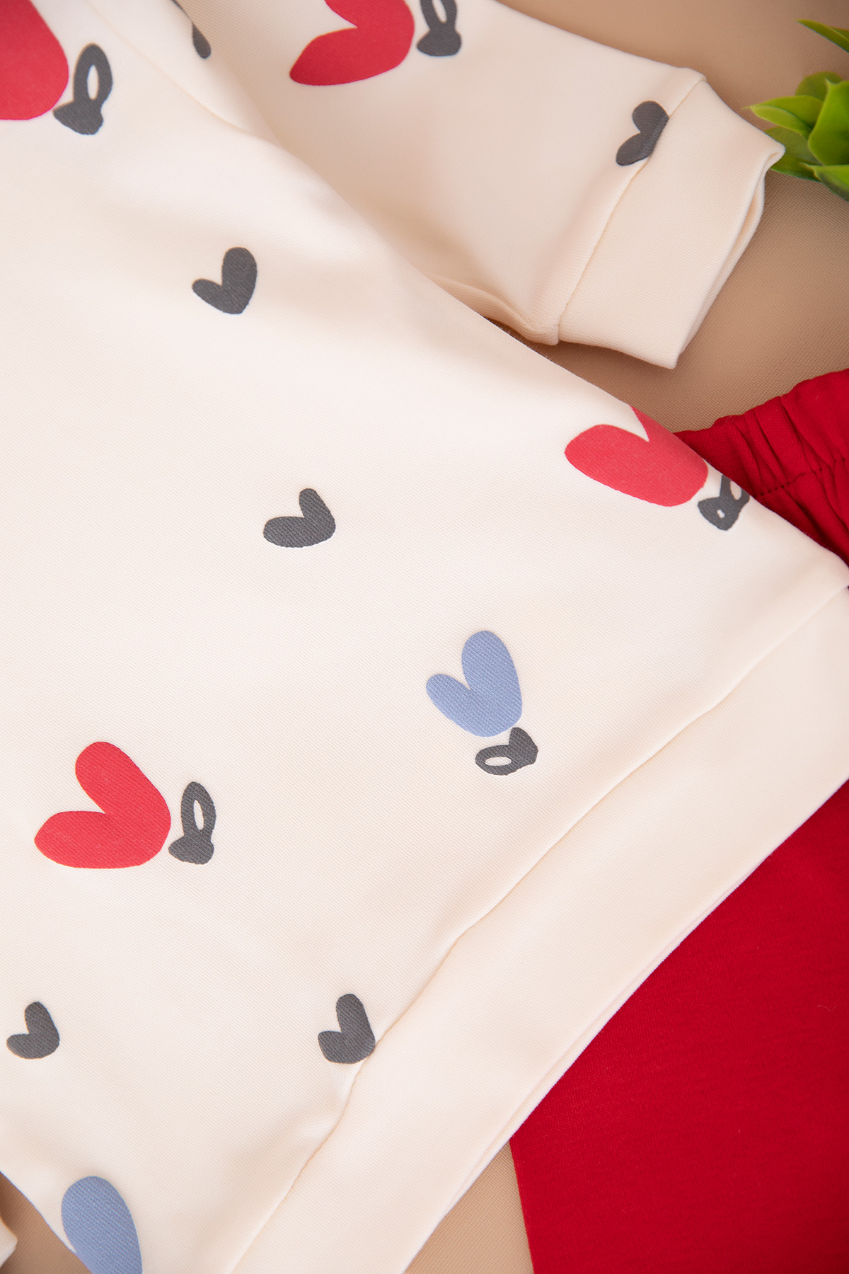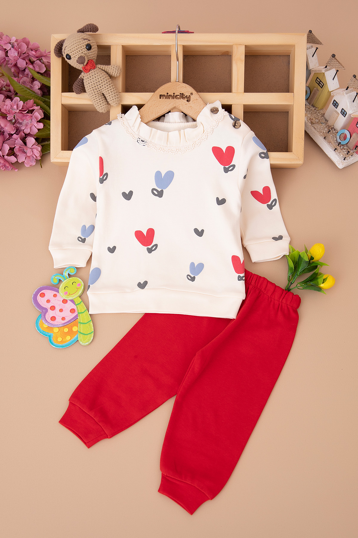 Kız Bebek Fistolu Kalp Baskılı Takım - 1083 (6-18 Ay)