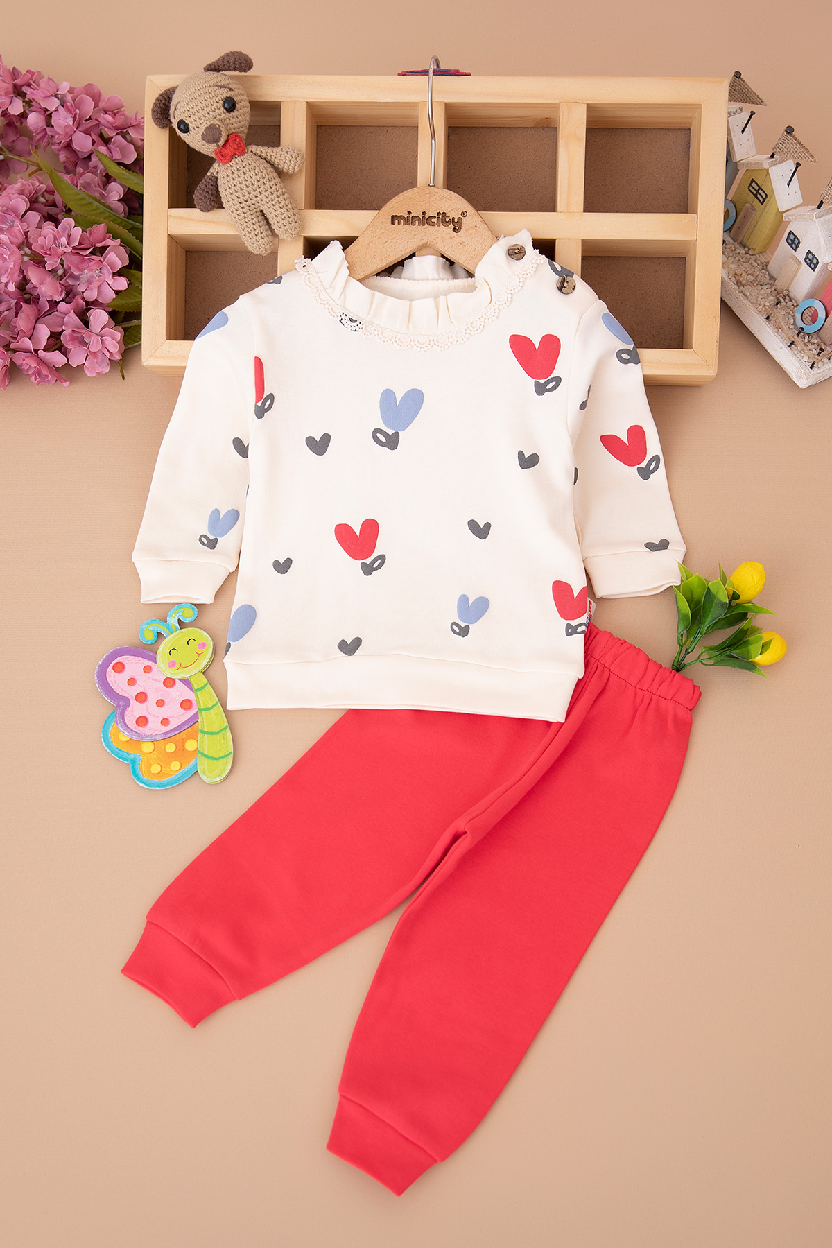 Kız Bebek Fistolu Kalp Baskılı Takım - 1083 (6-18 Ay)