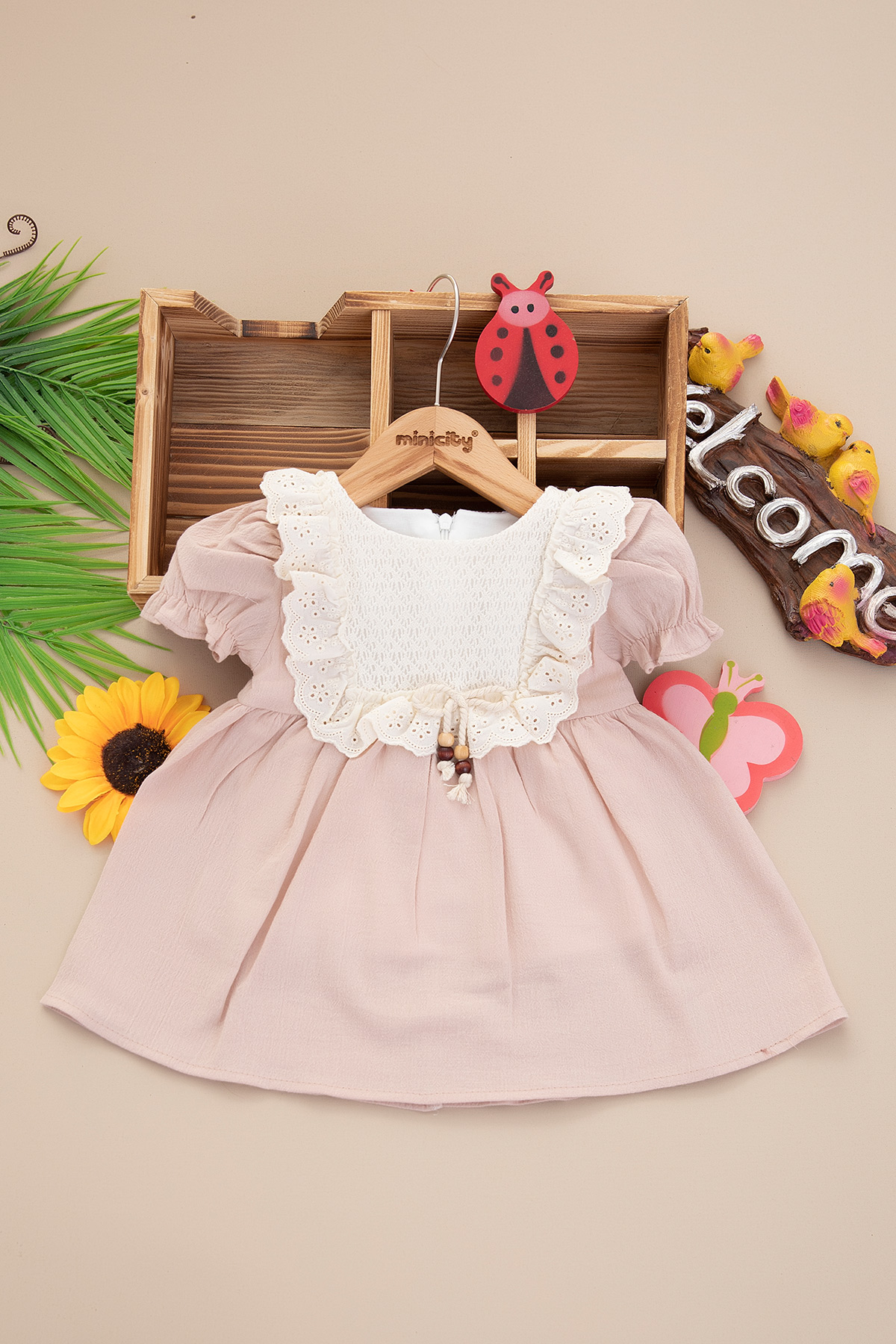 Kız Bebek Fistolu Keten Elbise - 3007 (9-24 Ay)