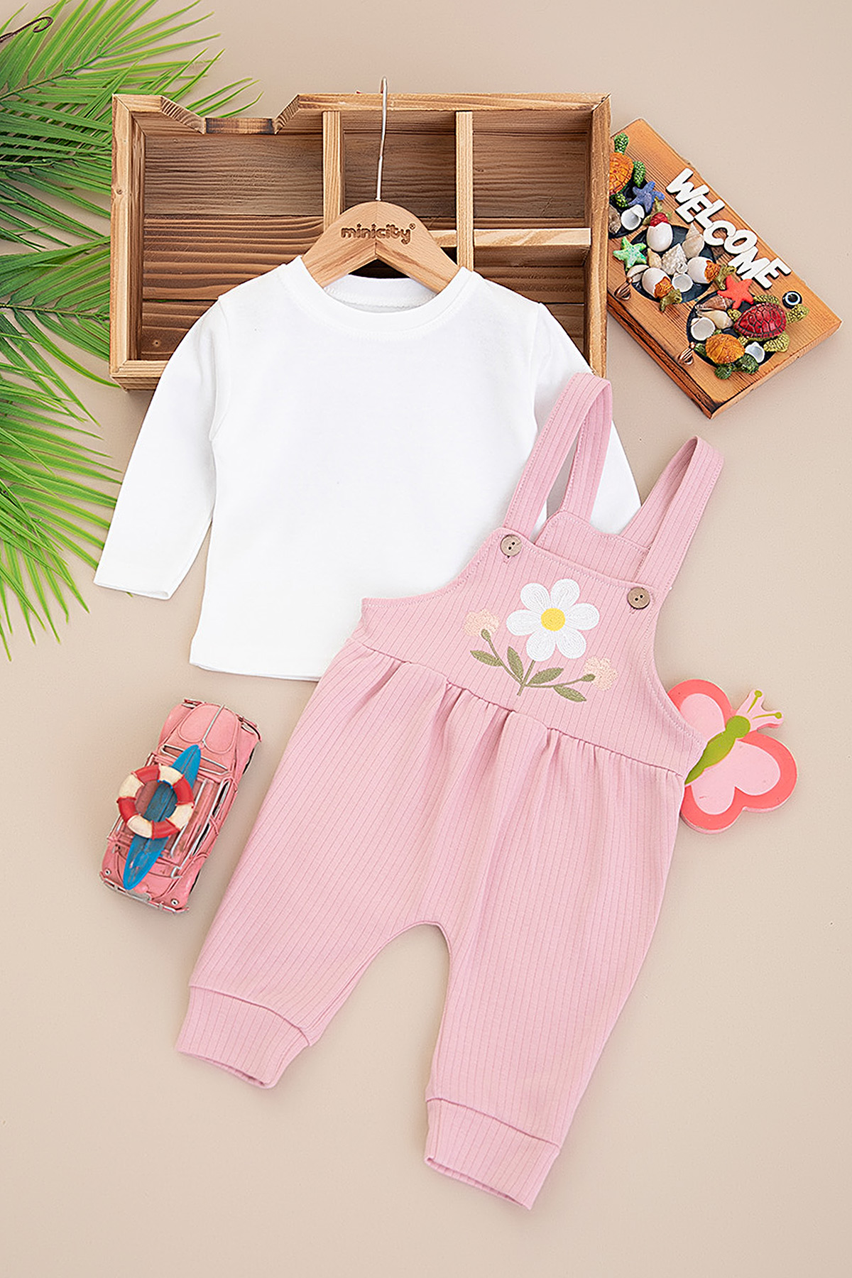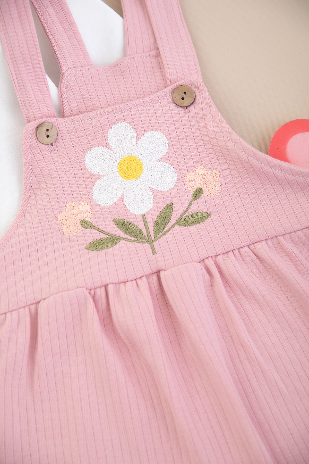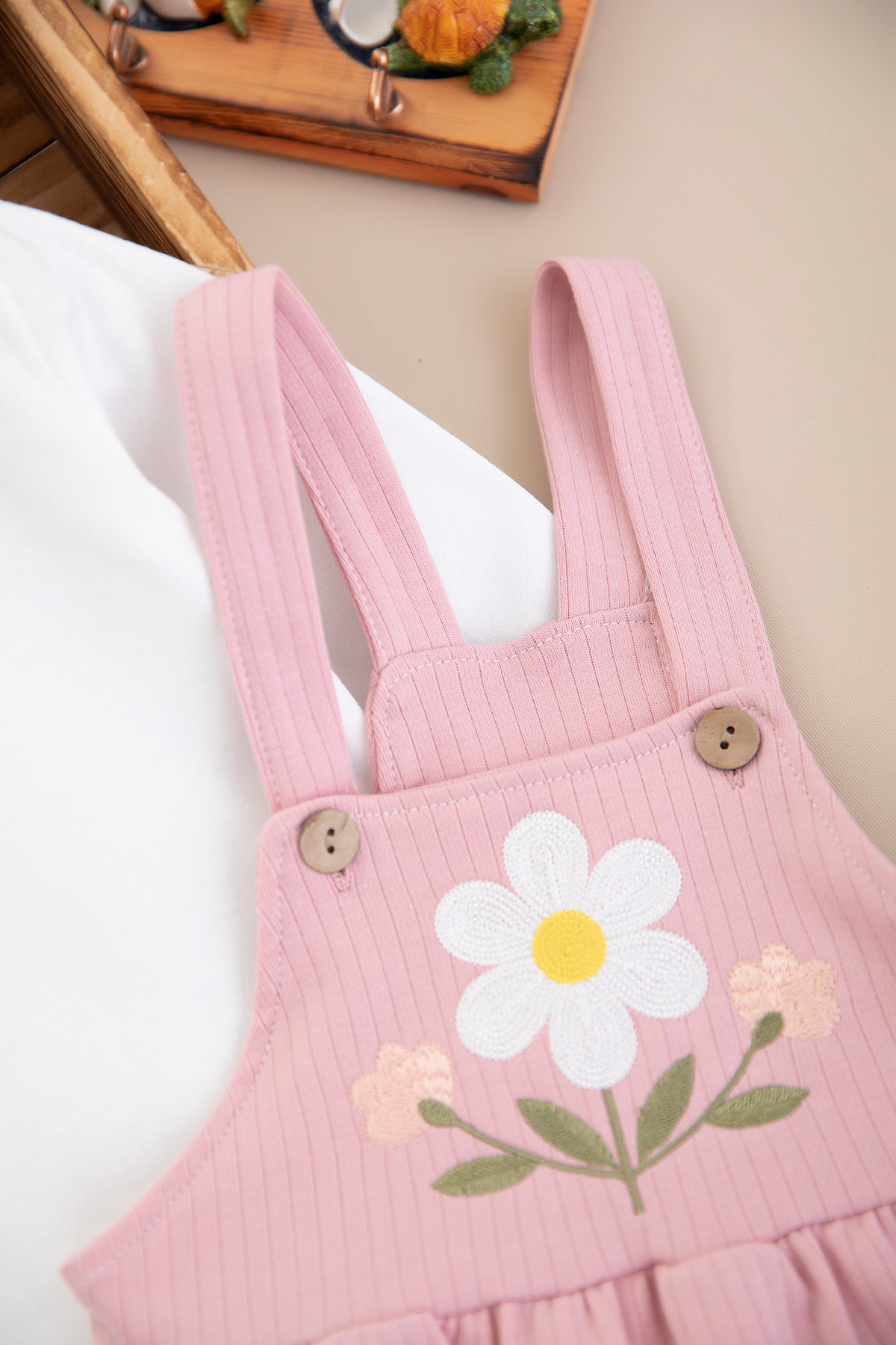 Kız Bebek Fitilli Papatya Nakışlı Badili Tulum (6-24 Ay)