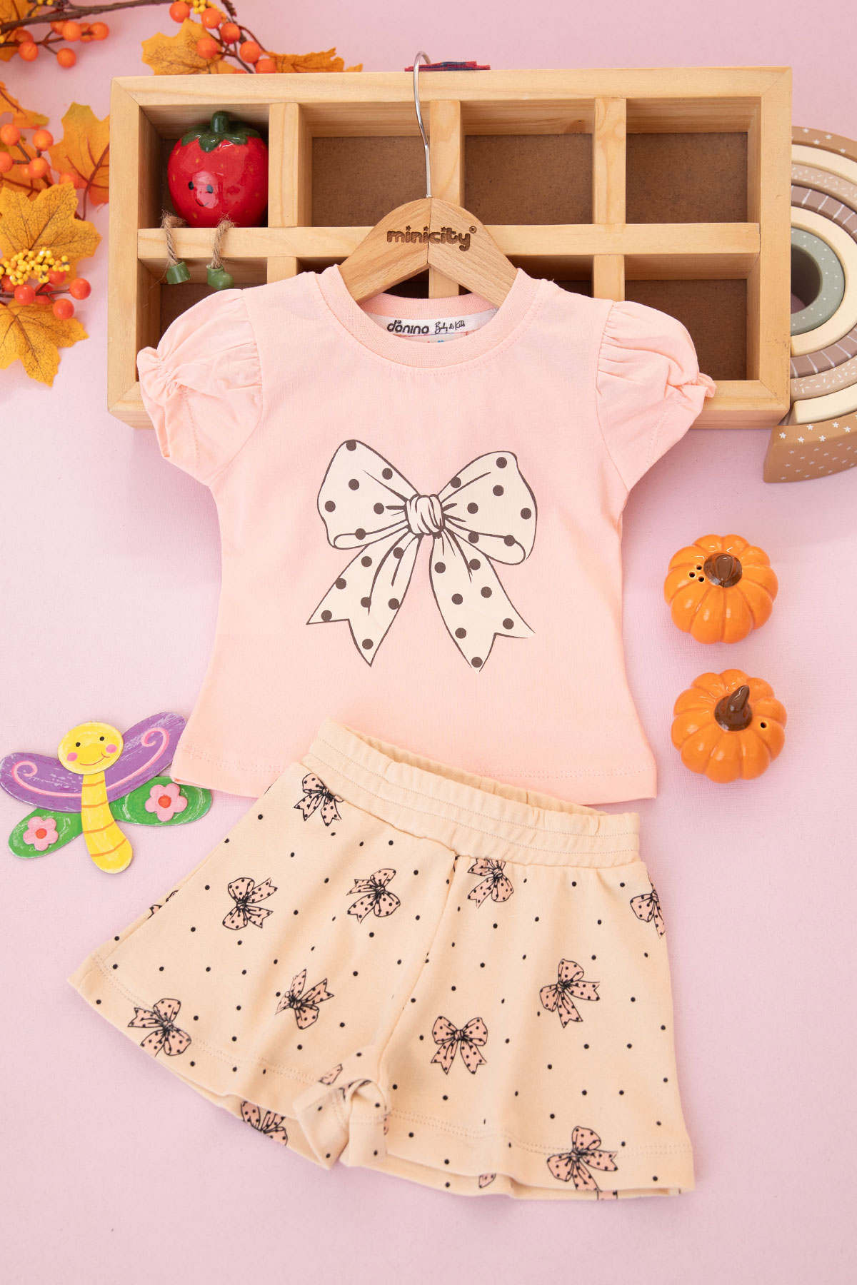 Kız Bebek Fiyonk Baskılı Şortlu Takım - 40910 (6-24 Ay)