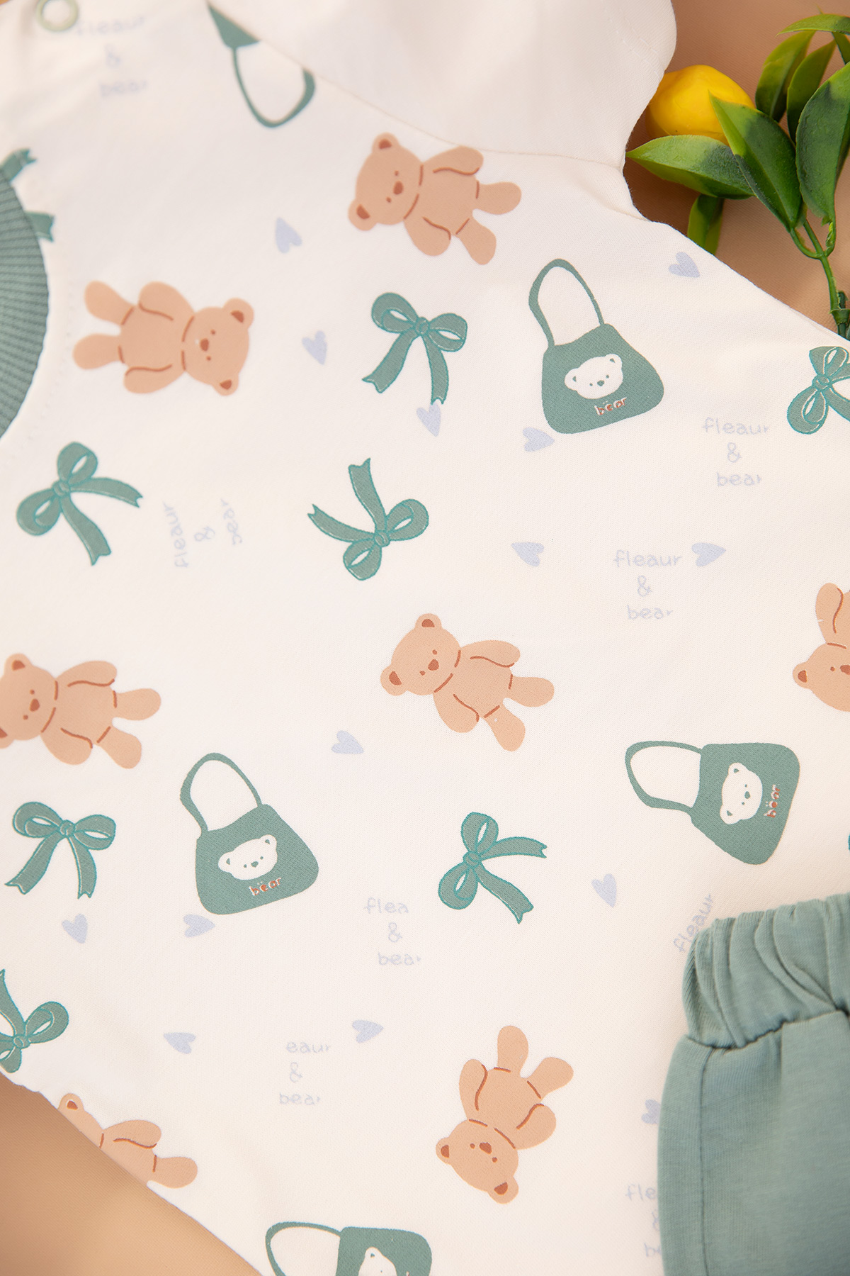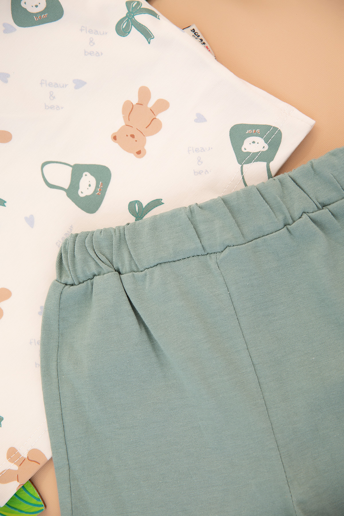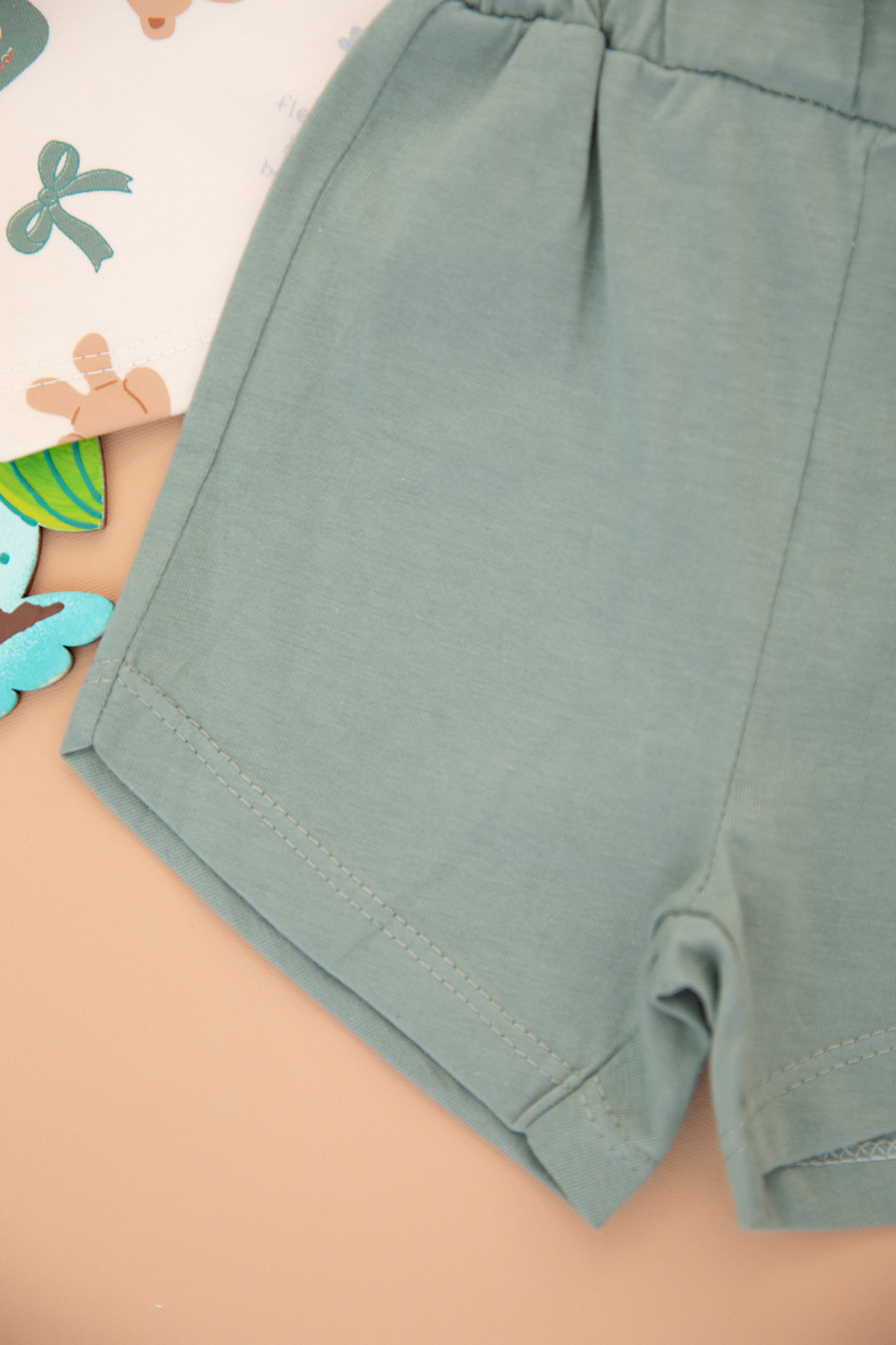 Kız Bebek Fiyonk Baskılı Şortlu Takım - 8021 (6-24 Ay)
