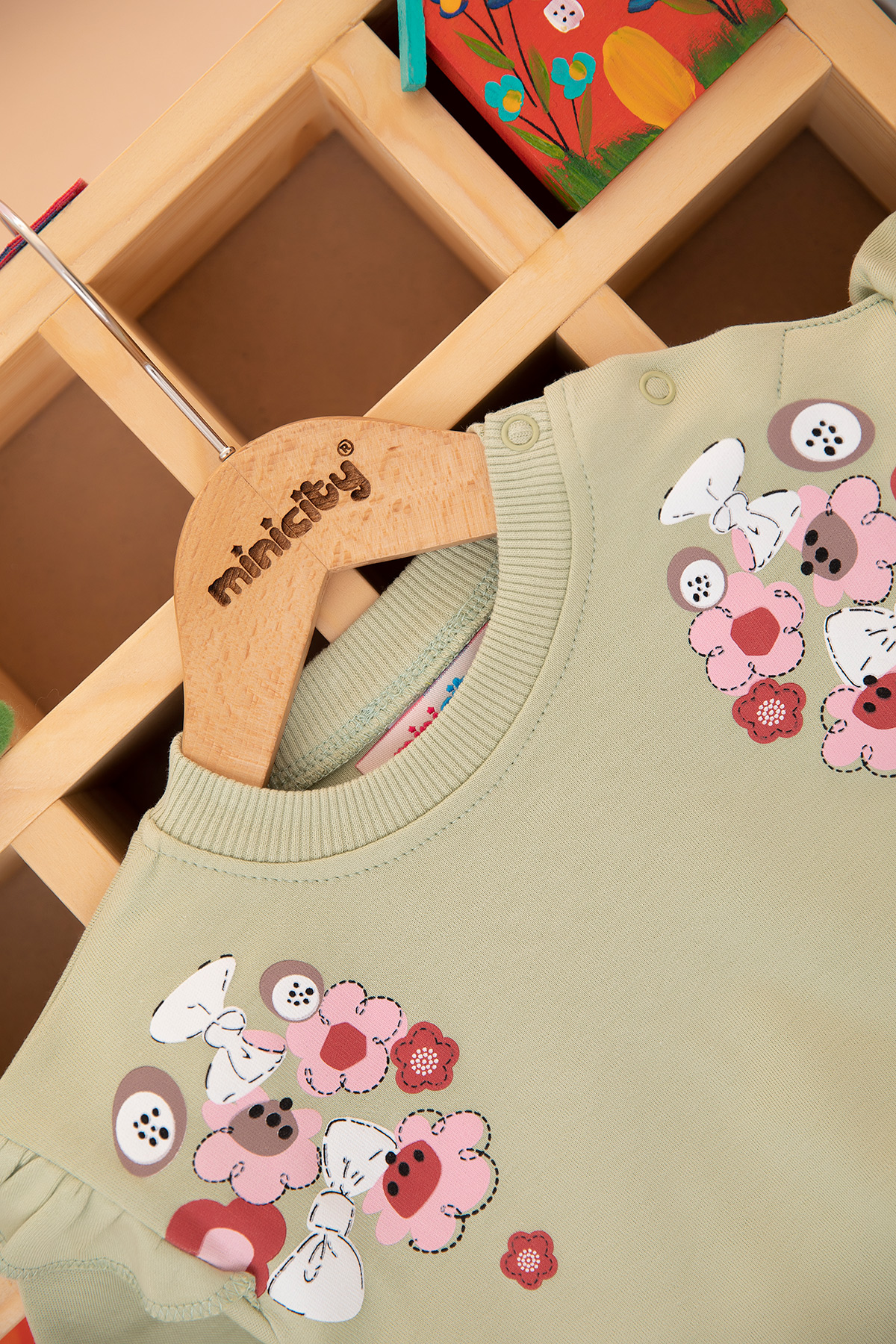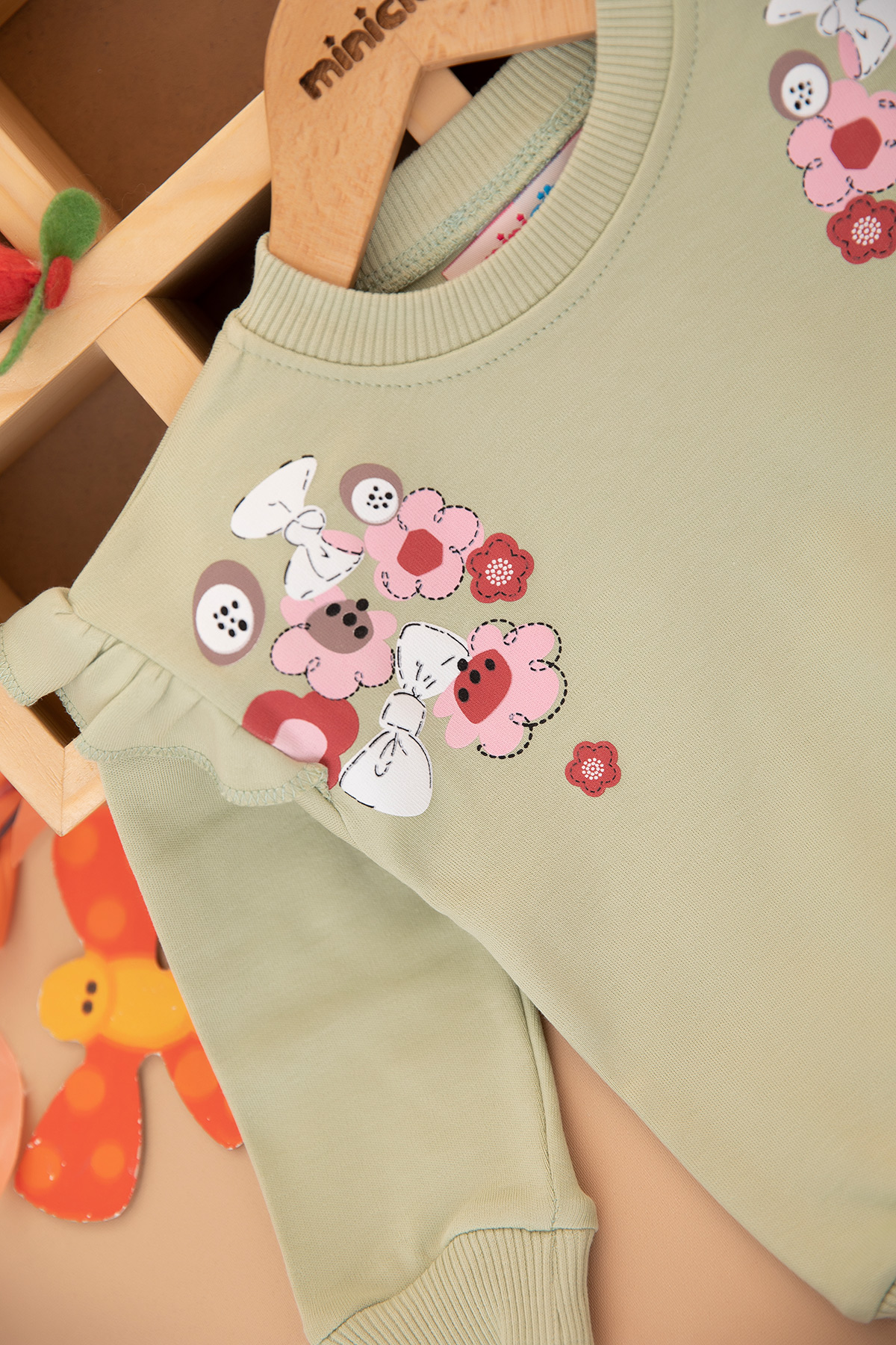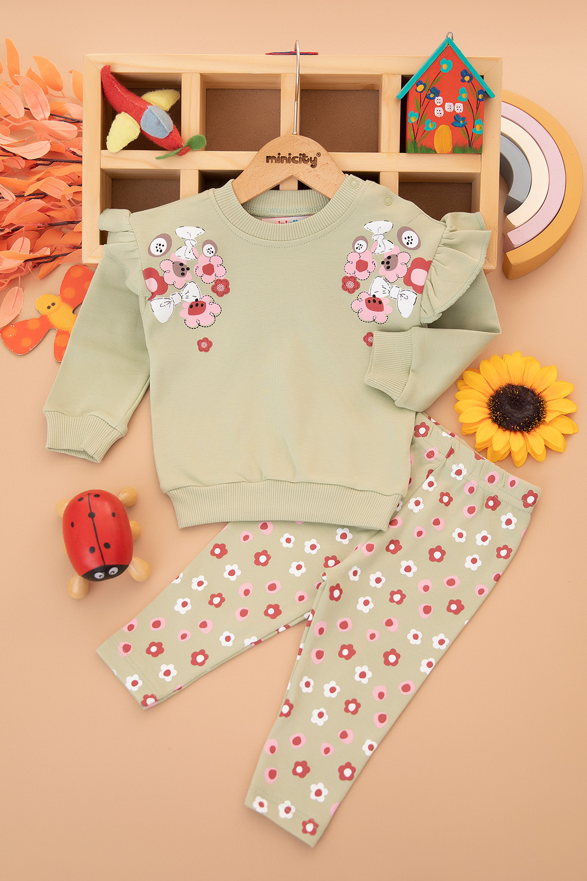 Kız Bebek Fiyonk Çiçek Baskılı Takım - 25714 (9-24 Ay)