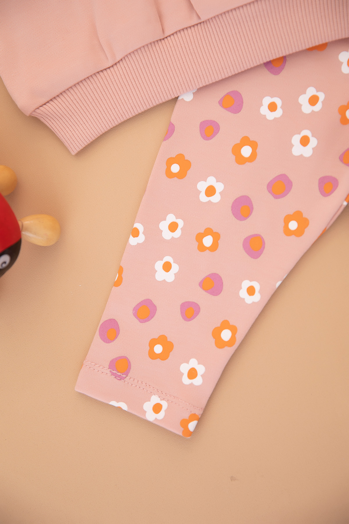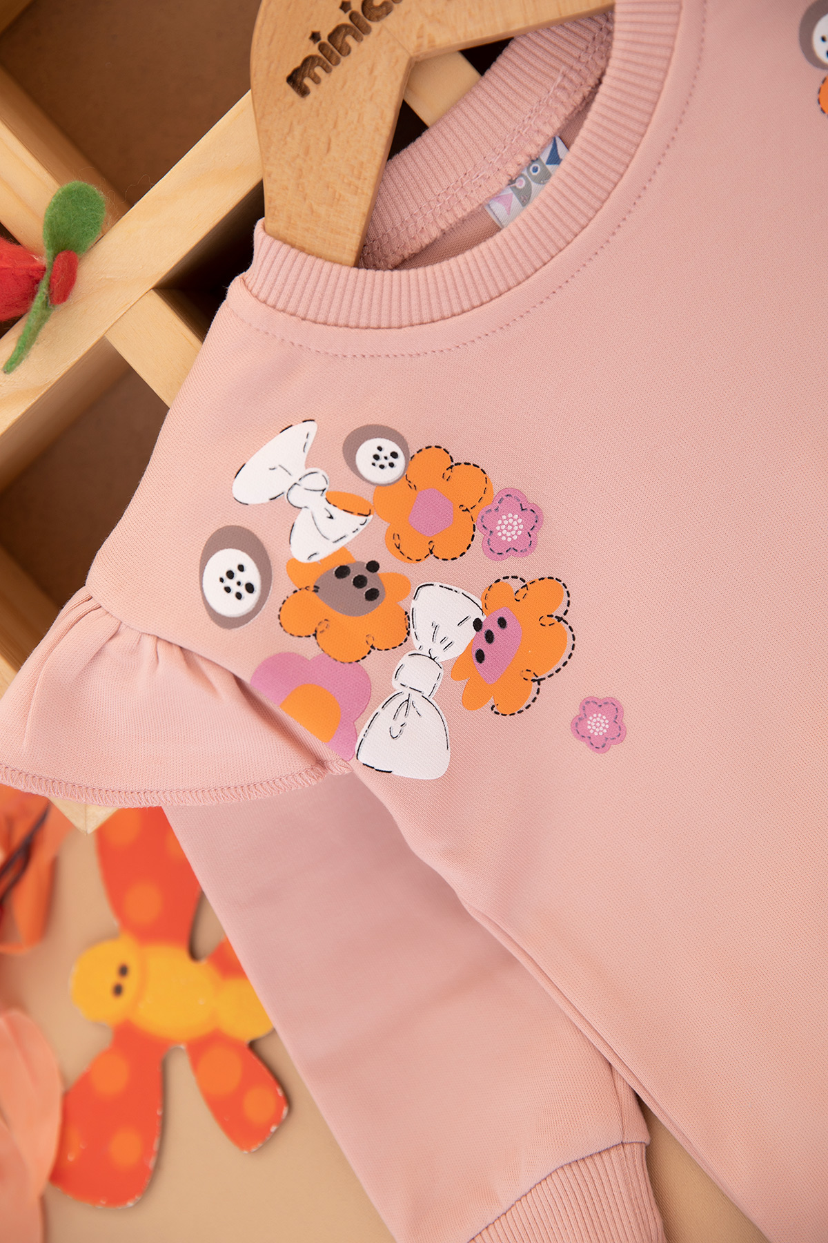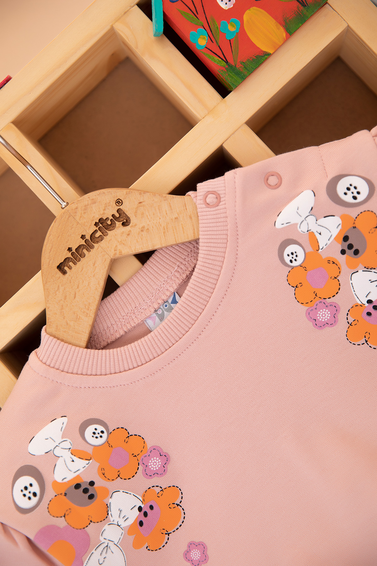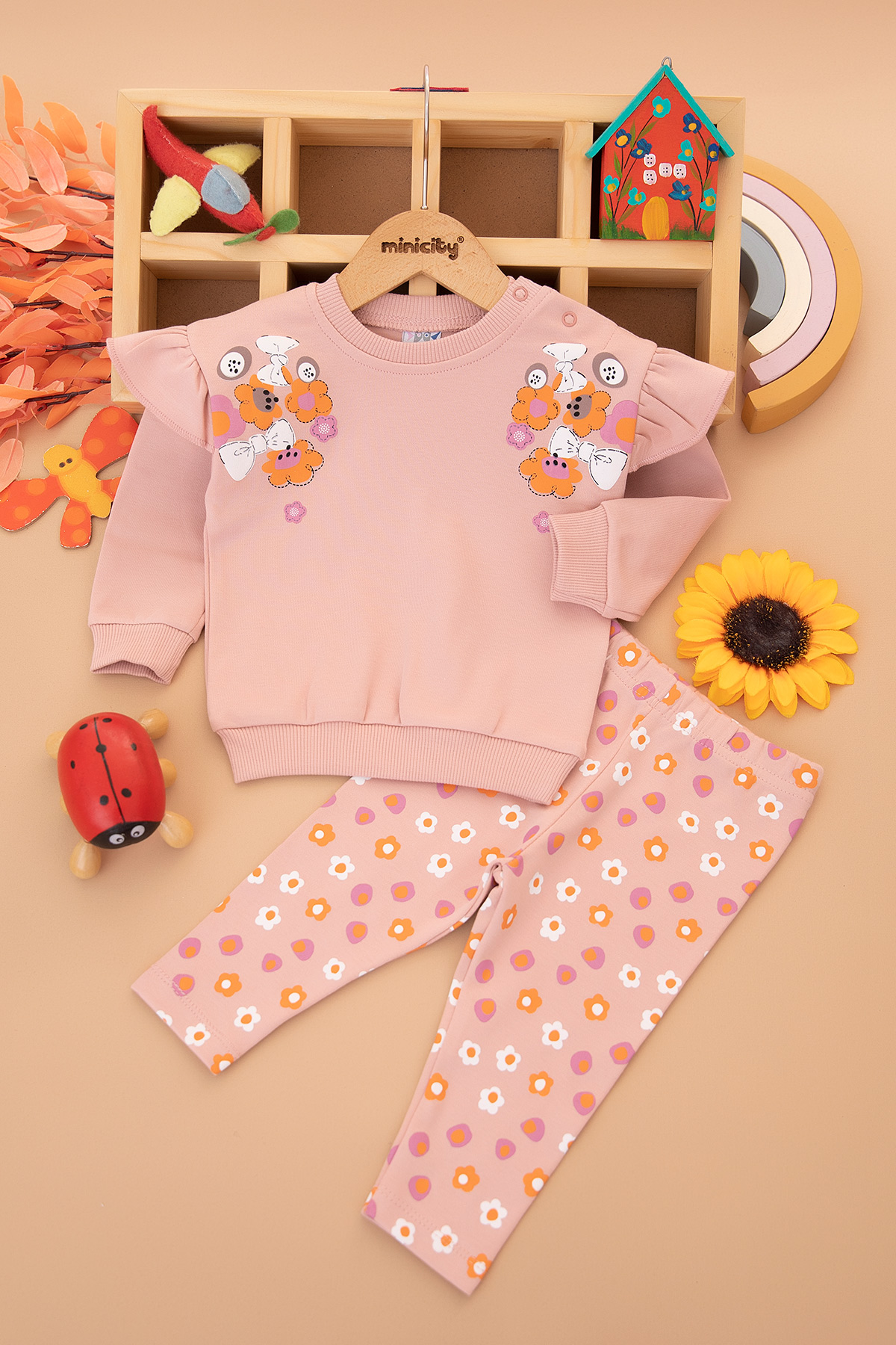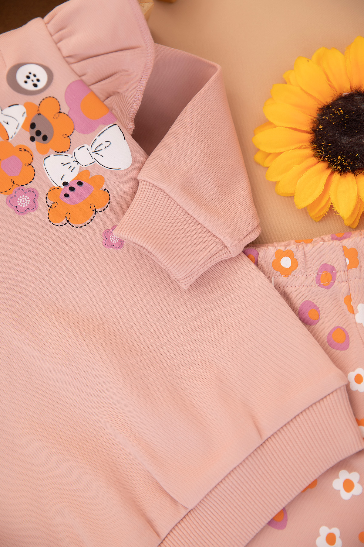 Kız Bebek Fiyonk Çiçek Baskılı Takım - 25714 (9-24 Ay)