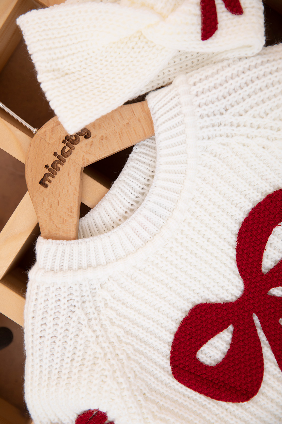Kız Bebek Fiyonk Nakışlı Triko Takım - 6450 (6-24 Ay)