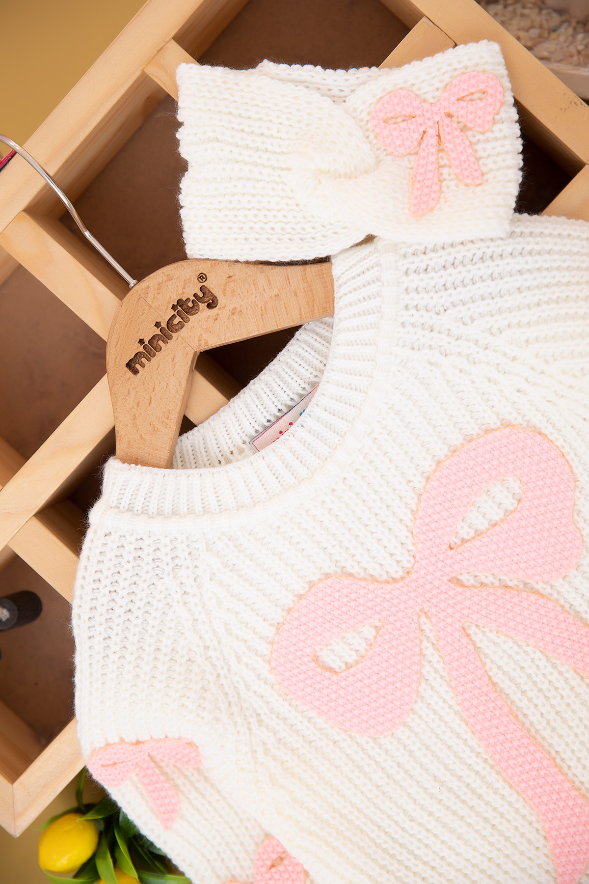 Kız Bebek Fiyonk Nakışlı Triko Takım - 6450 (6-24 Ay)