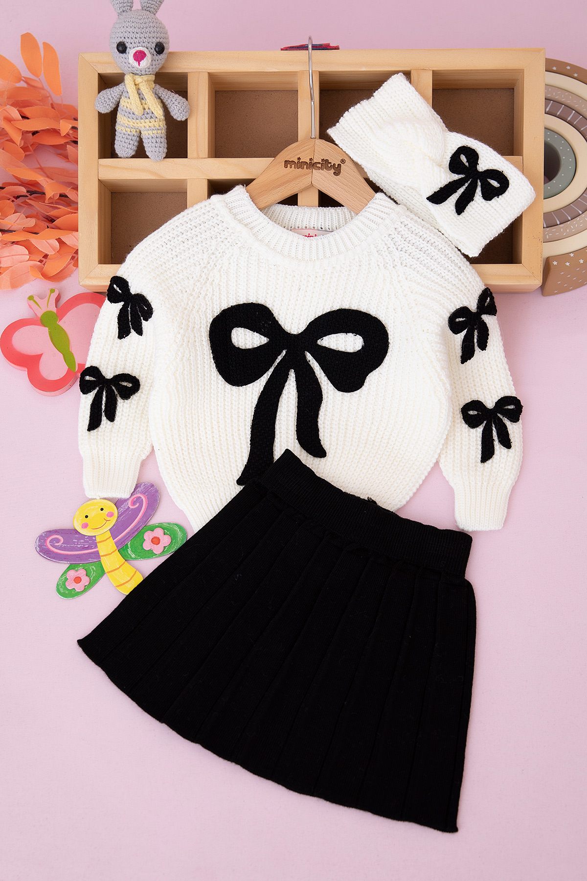 Kız Bebek Fiyonk Nakışlı Triko Takım - 6450 (6-24 Ay)