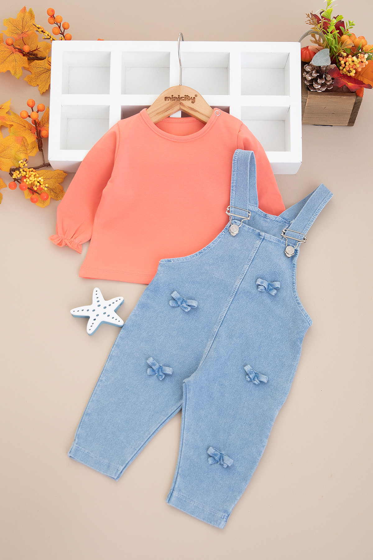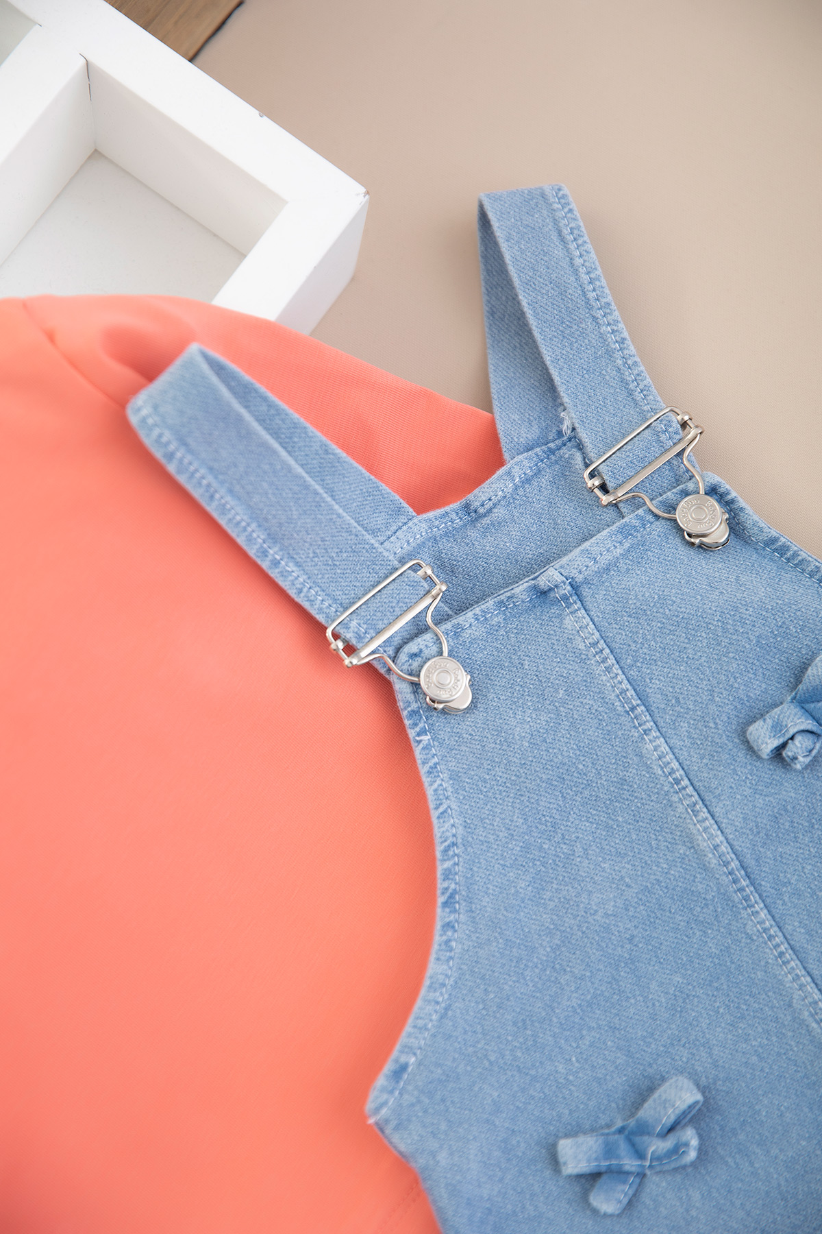 Kız Bebek Fiyonklu Badili Kot Salopet - 0345 (9-24 Ay)