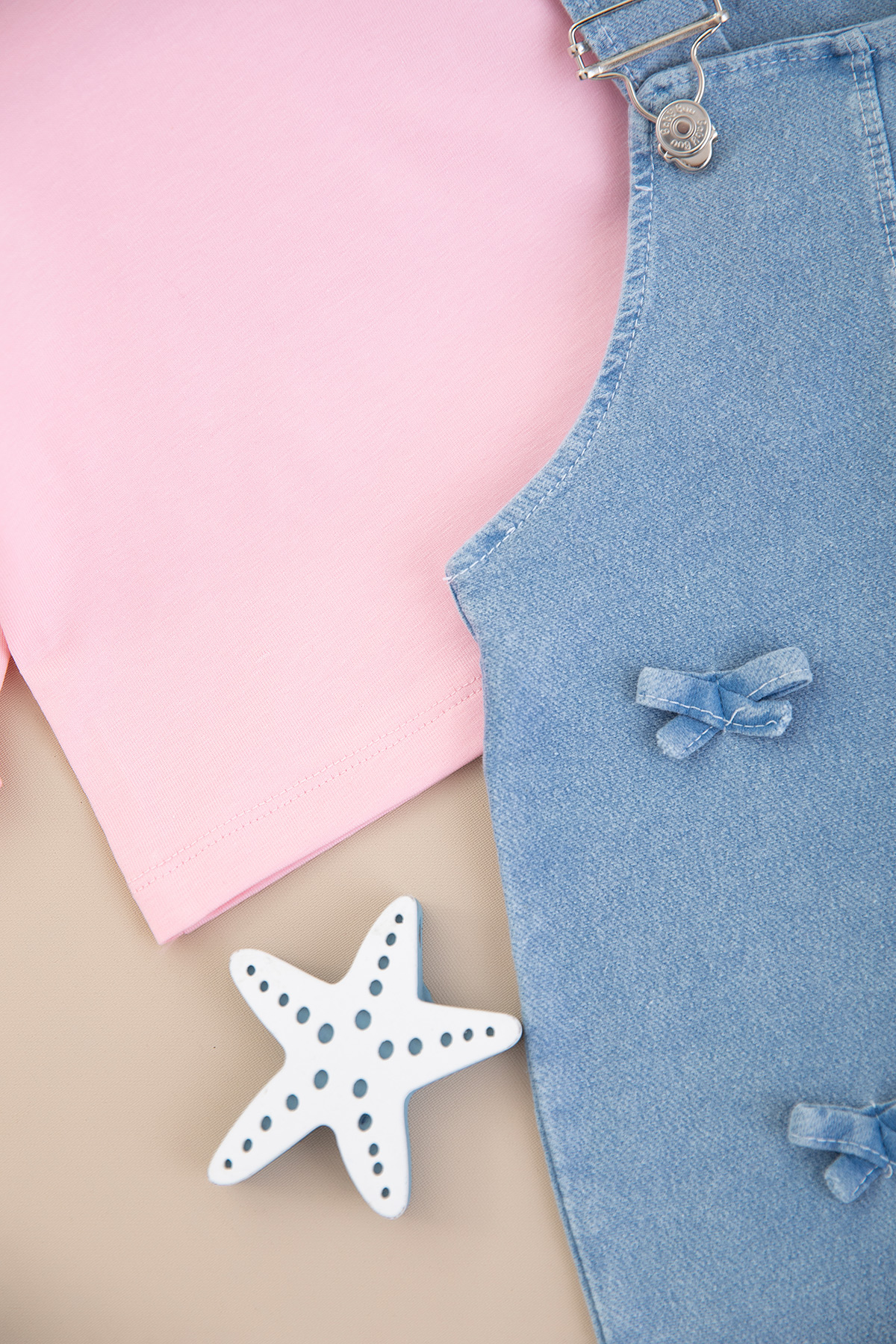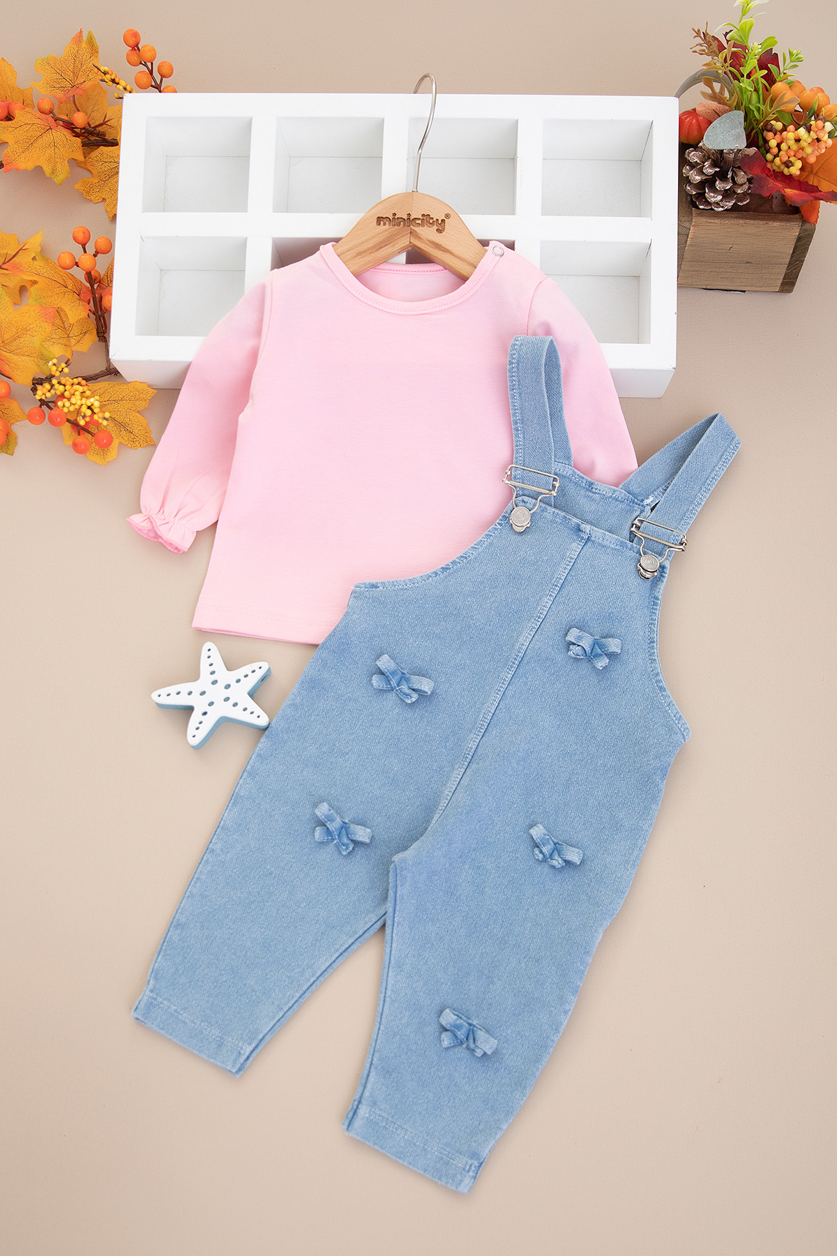 Kız Bebek Fiyonklu Badili Kot Salopet - 0345 (9-24 Ay)