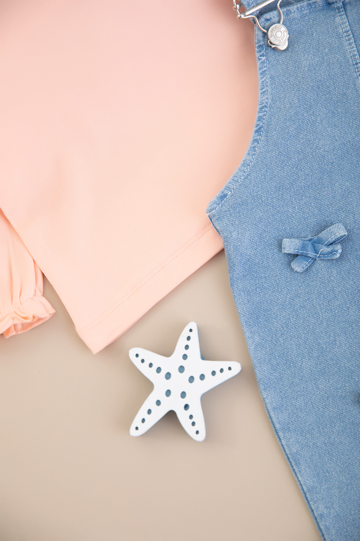 Kız Bebek Fiyonklu Badili Kot Salopet - 0345 (9-24 Ay)