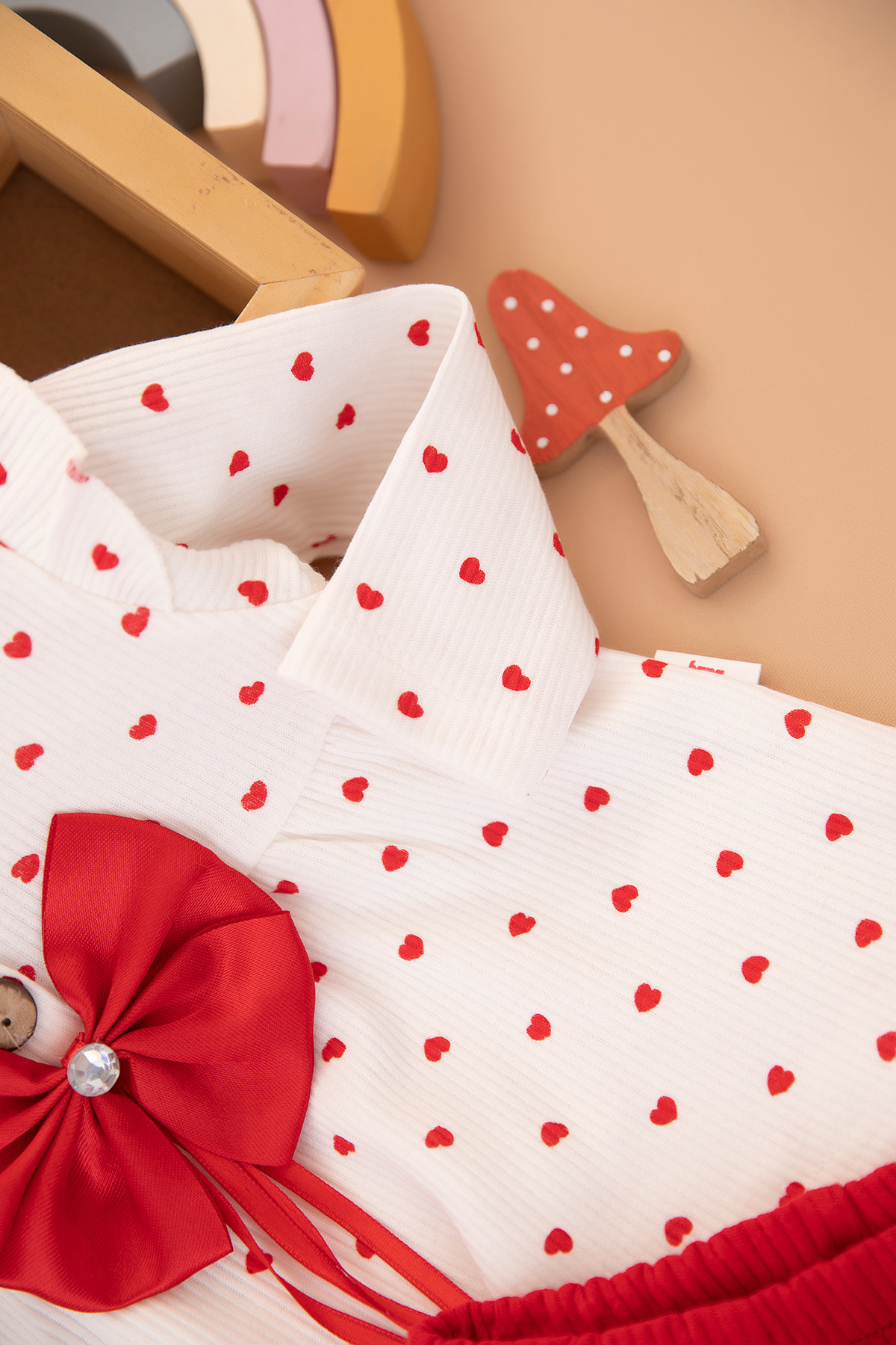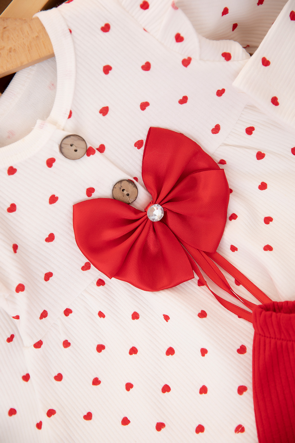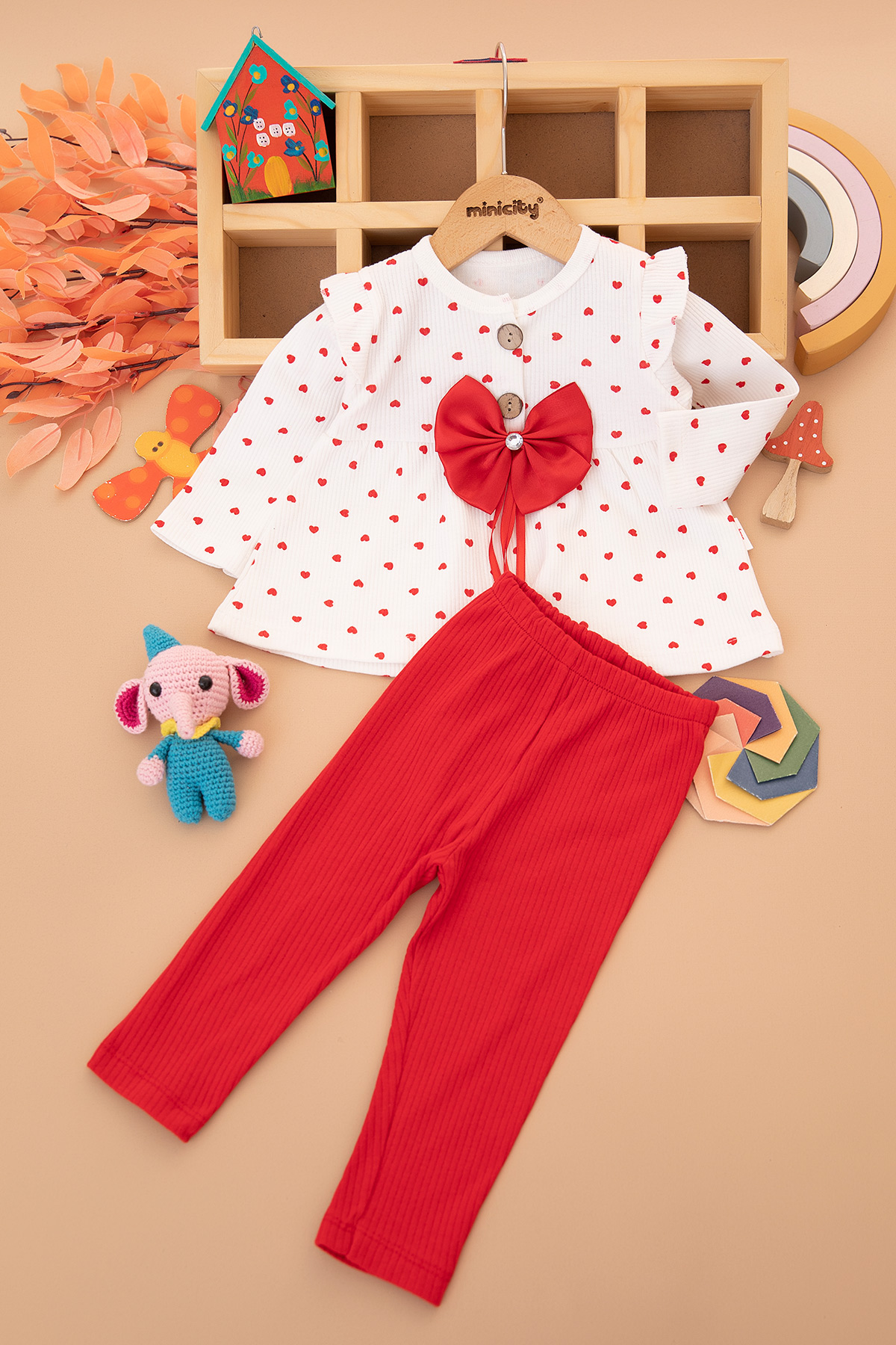 Kız Bebek Fiyonklu Baskılı Taytlı Takım (9-18 Ay)