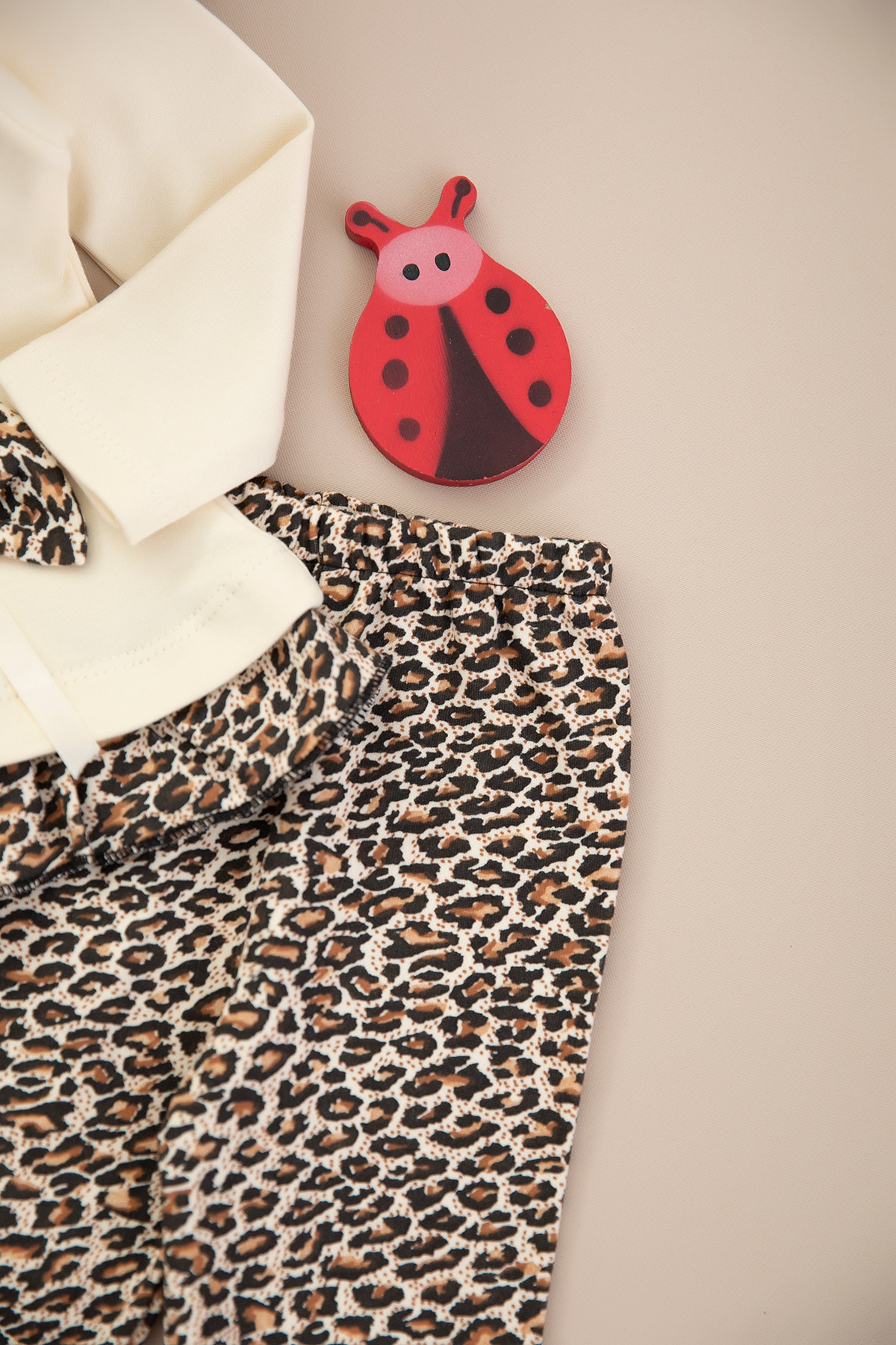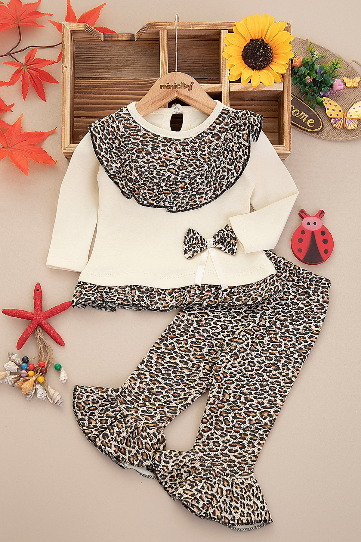Kız Bebek Fiyonklu Fırfırlı Leopar Takım (9-24 Ay)