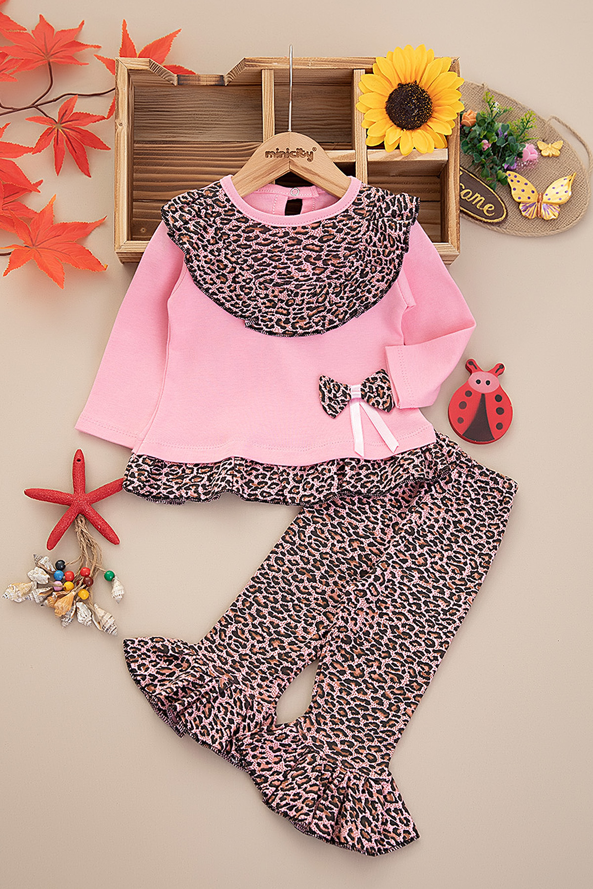 Kız Bebek Fiyonklu Fırfırlı Leopar Takım (9-24 Ay)