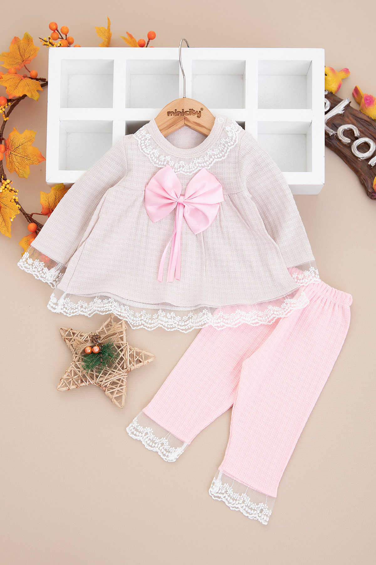 Kız Bebek Fiyonklu Fistolu Jakarlı Takım (3-9 Ay)