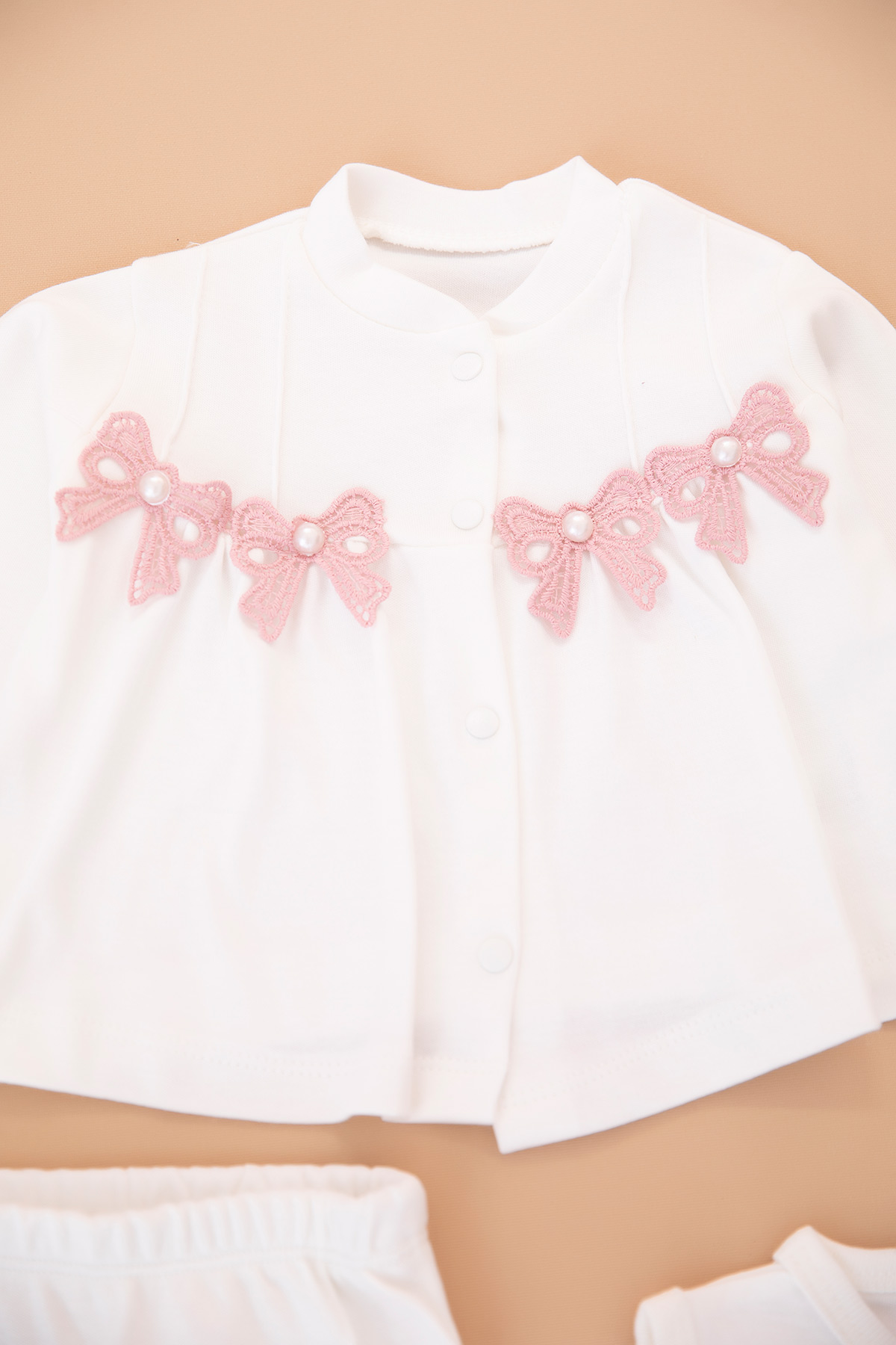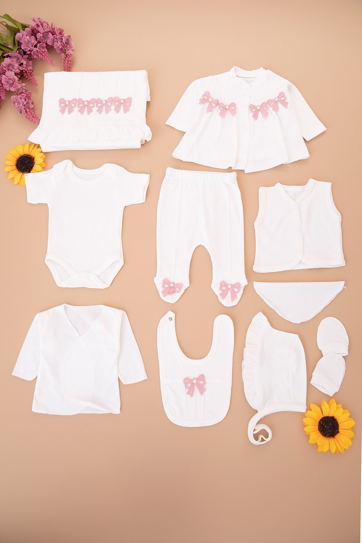Kız Bebek Fiyonklu İncili 10`Lu Zıbın Seti