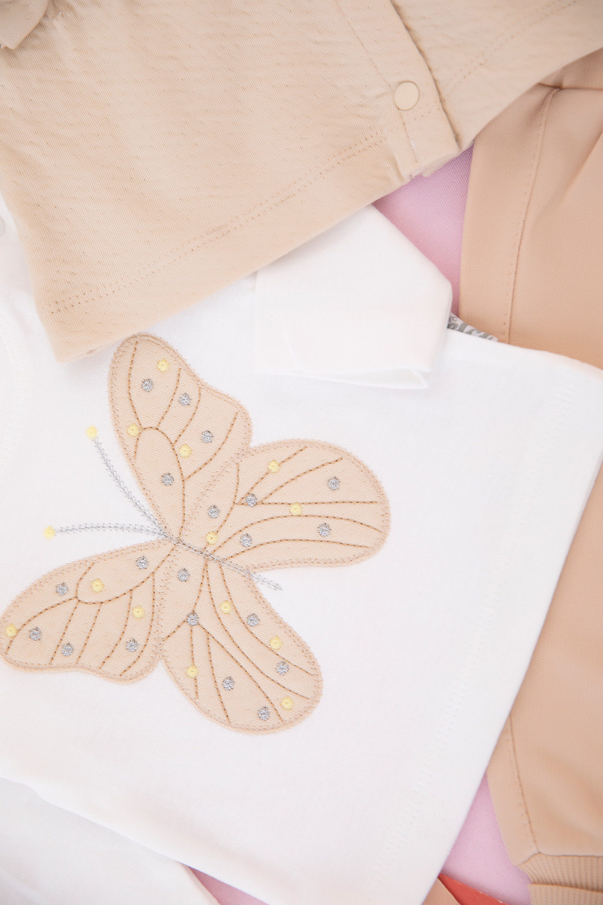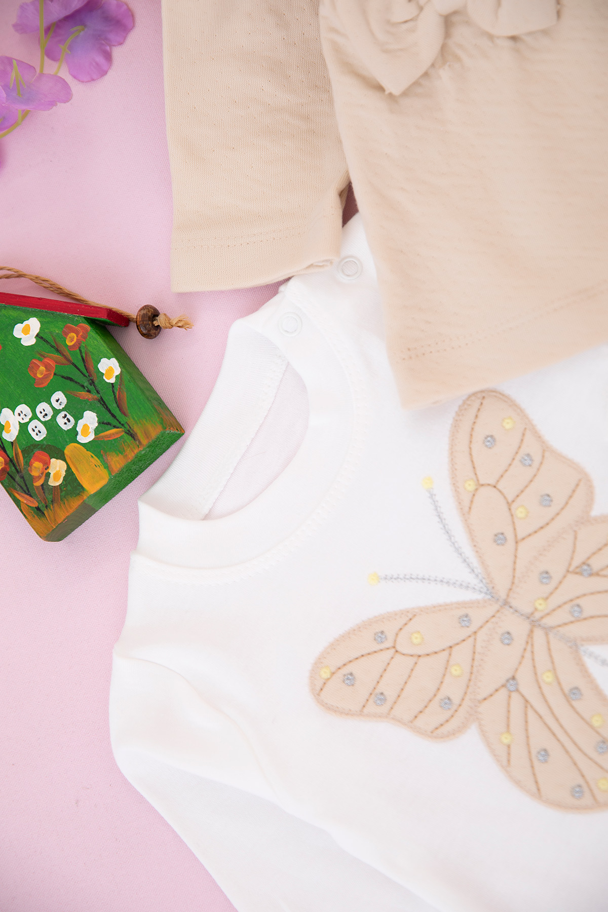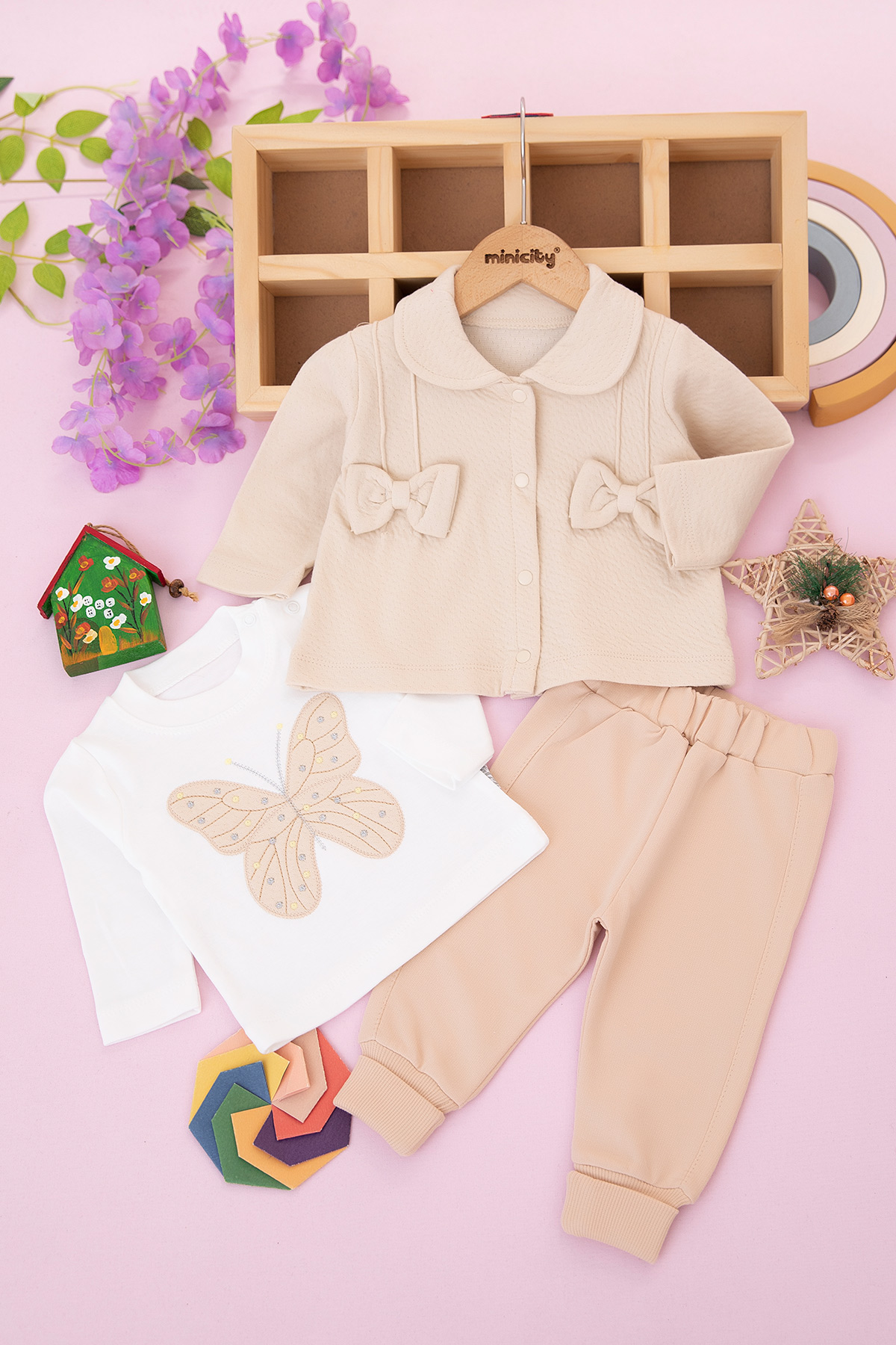 Kız Bebek Fiyonklu Kelebek Üçlü Takım - 7092 (3-12 Ay)