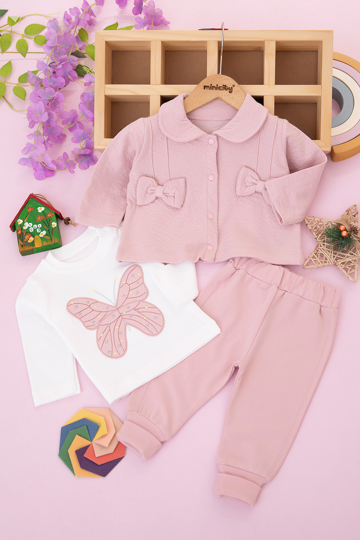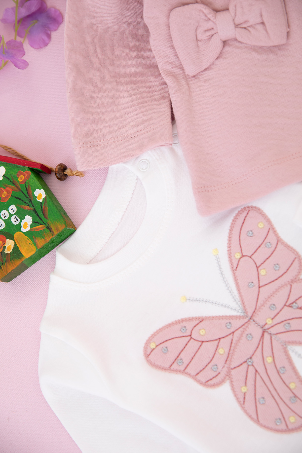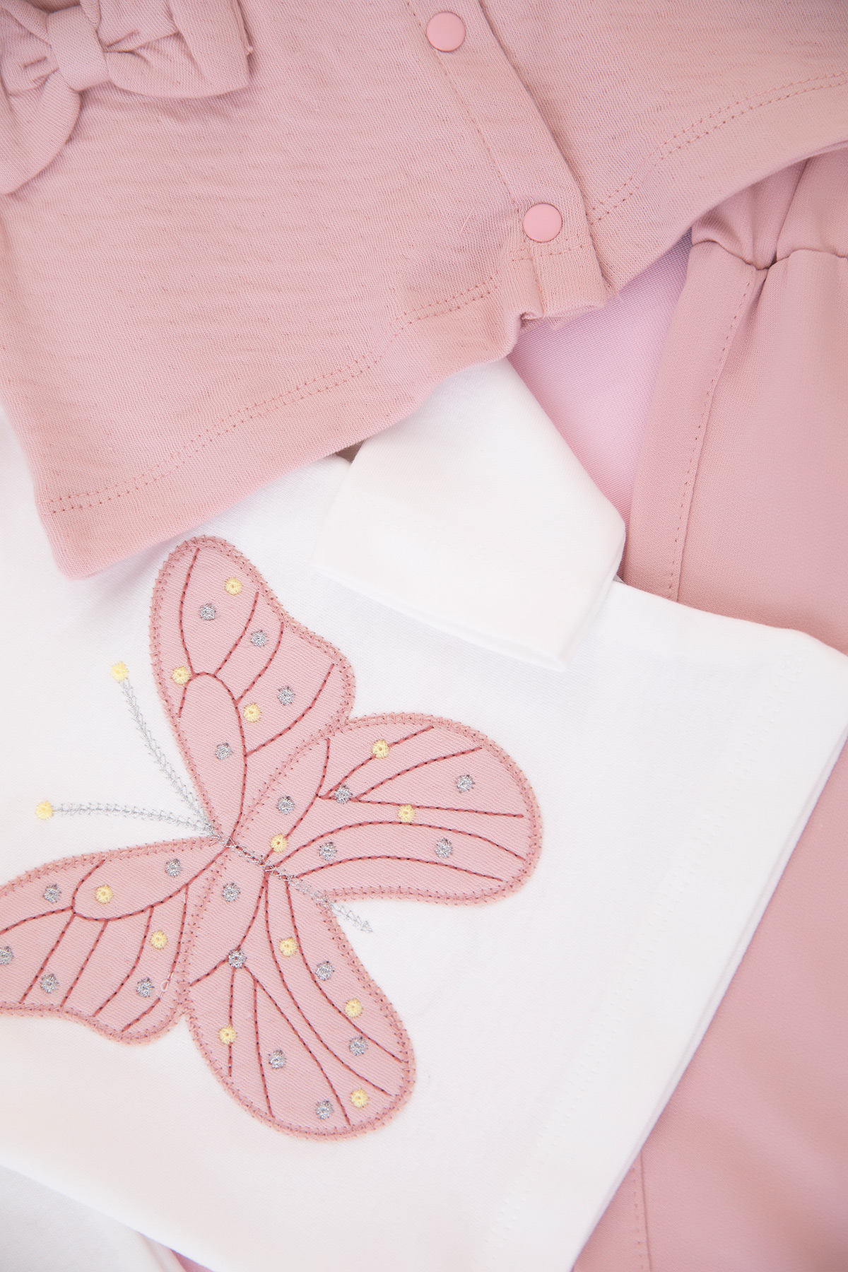 Kız Bebek Fiyonklu Kelebek Üçlü Takım - 7092 (3-12 Ay)