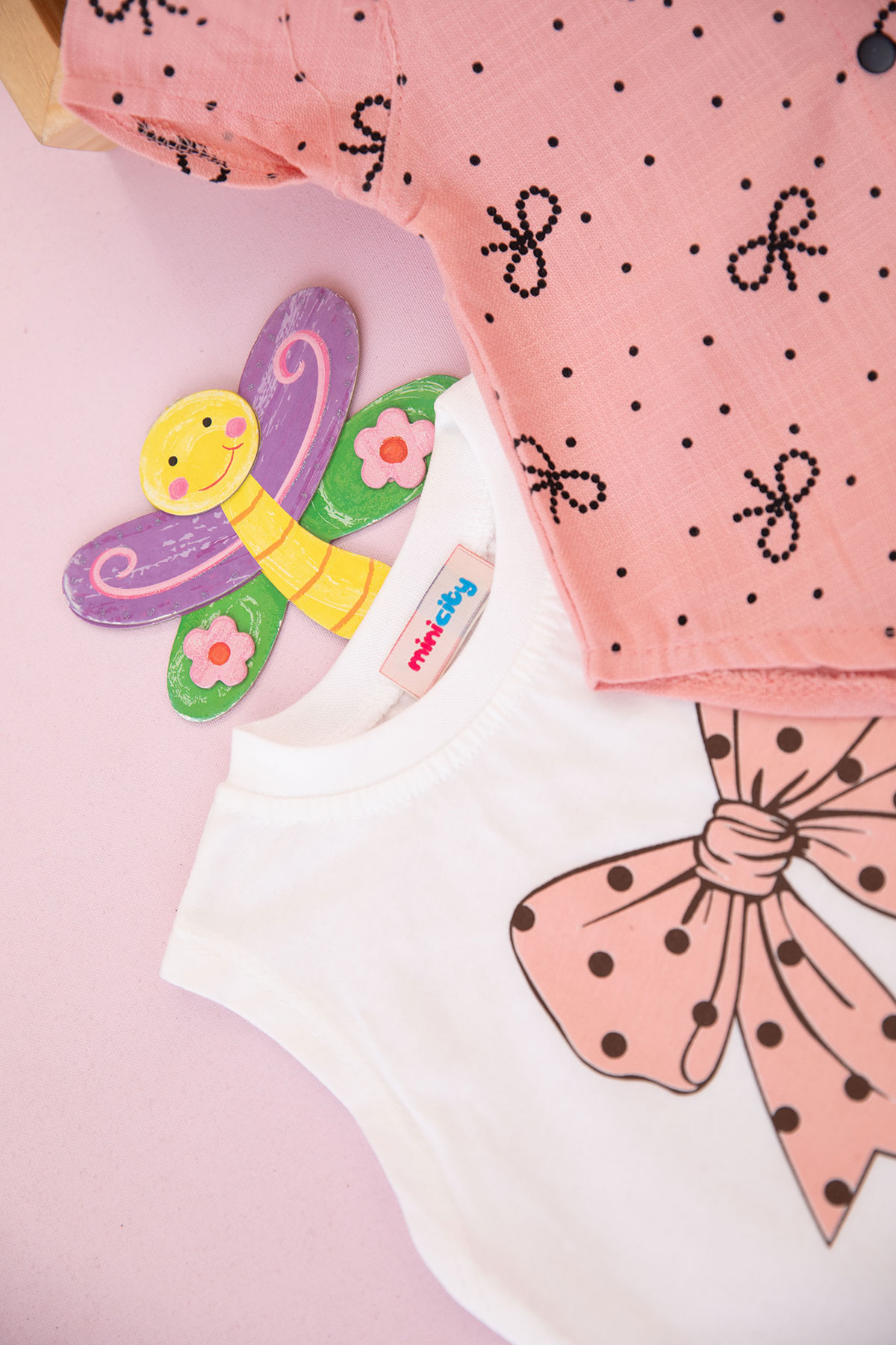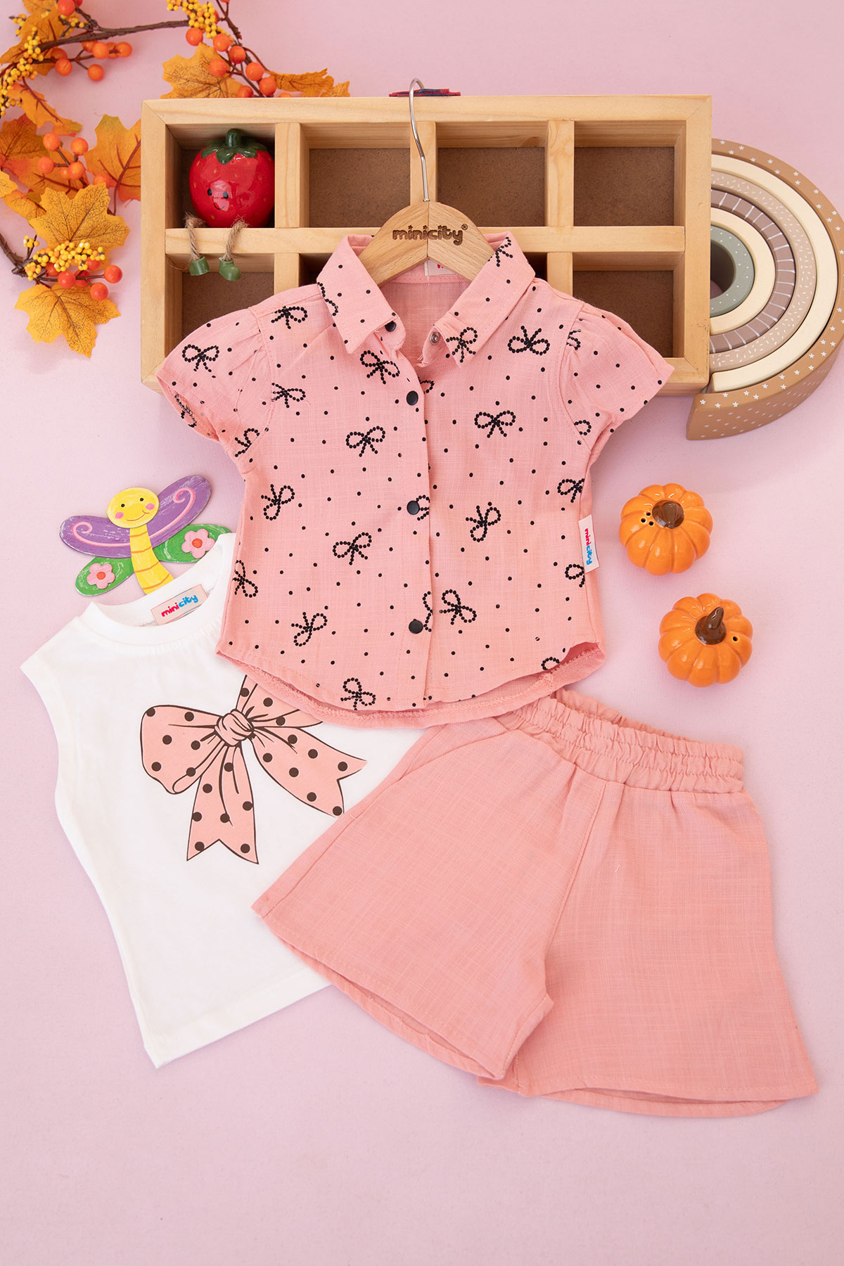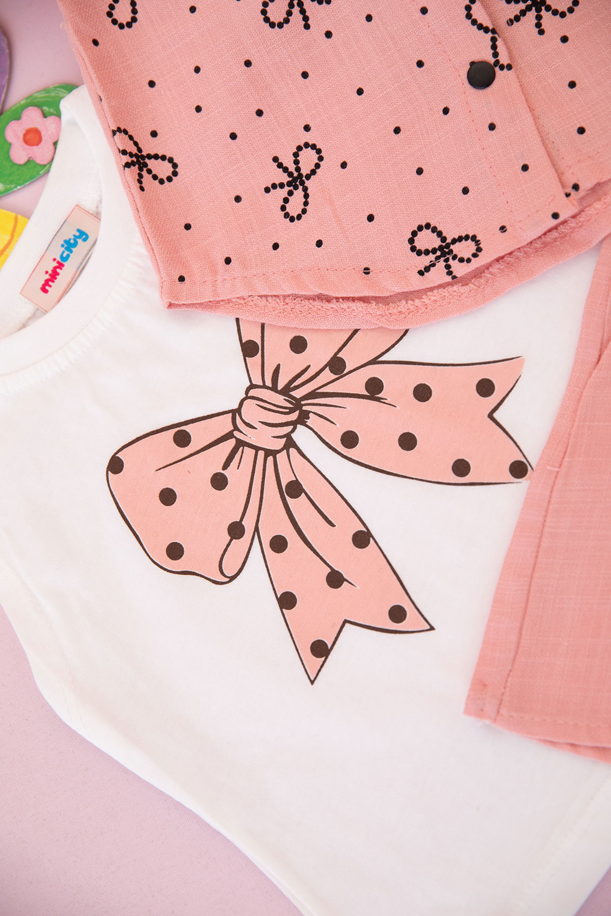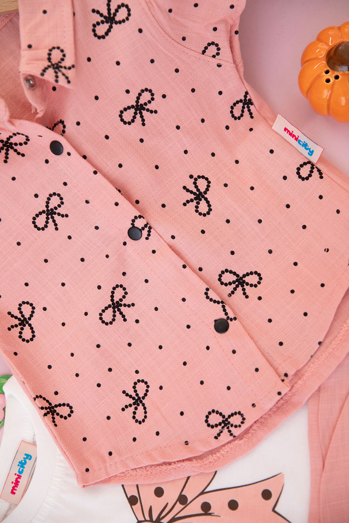 Kız Bebek Fiyonklu Nokta Baskılı Şortlu Takım - 90137 (6-24 Ay)